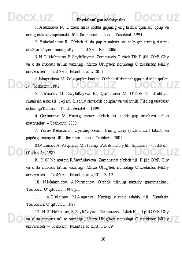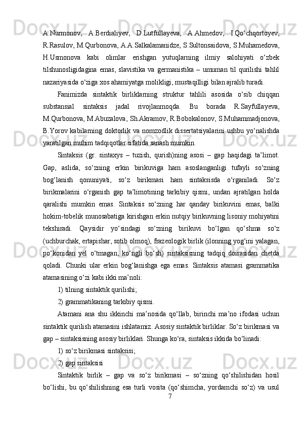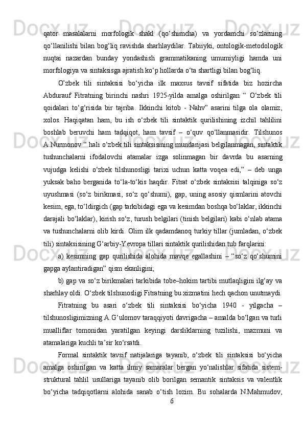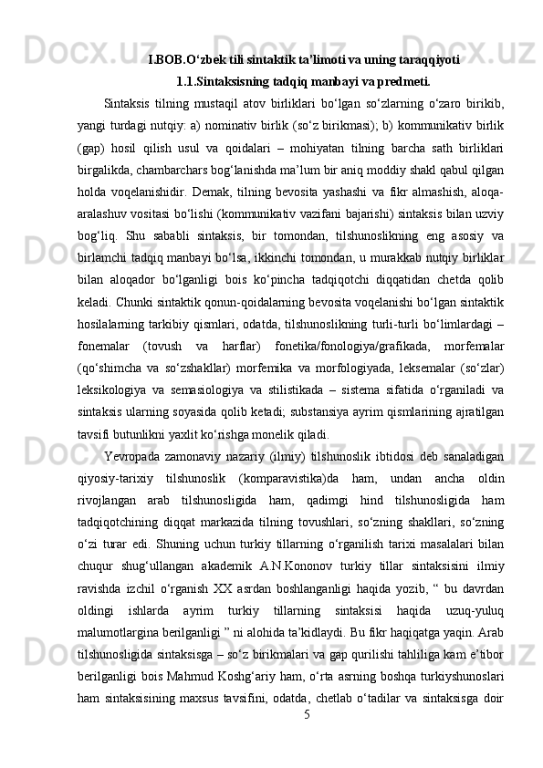 I.BOB. O‘zbek tili sintaktik ta’limoti……………………………………...6