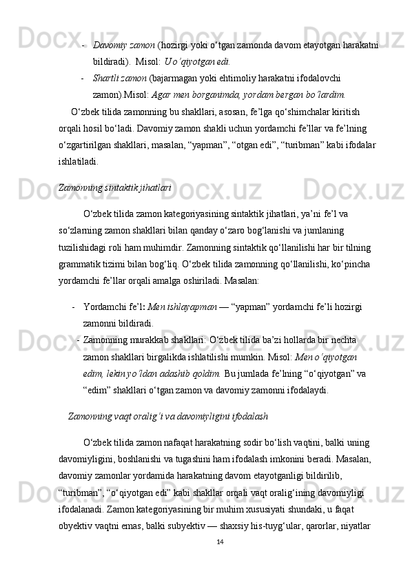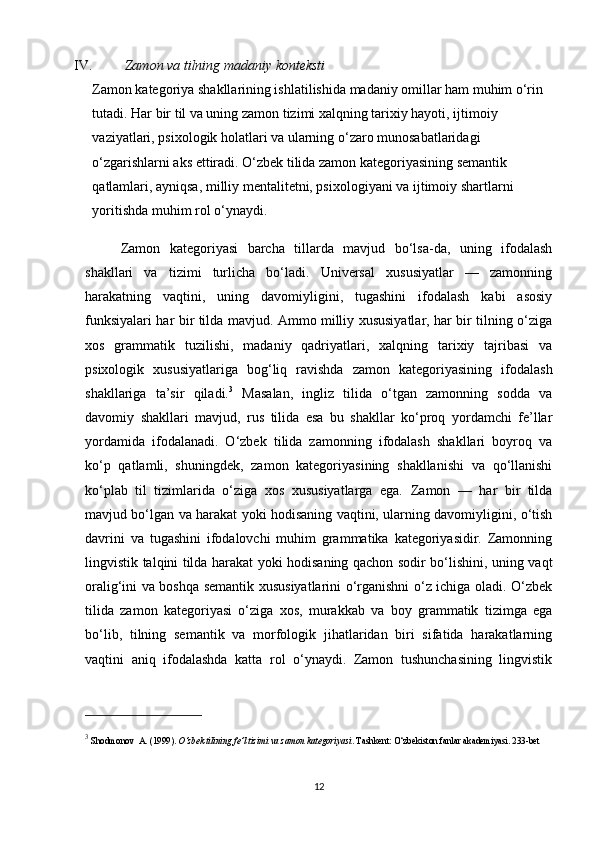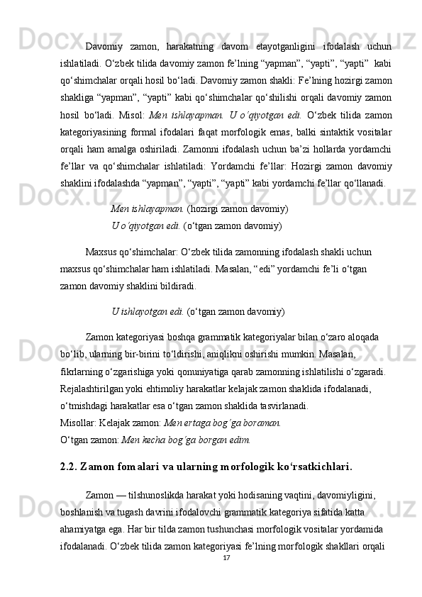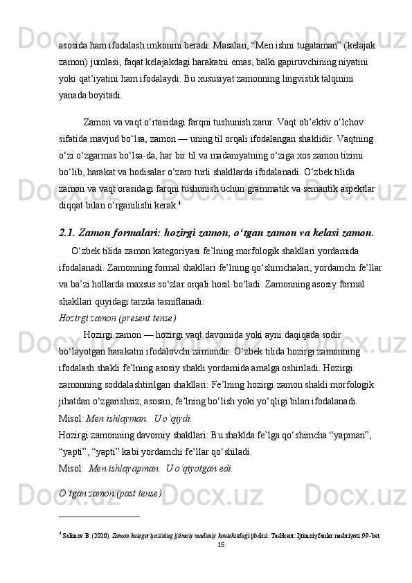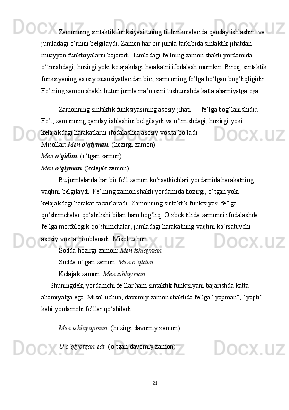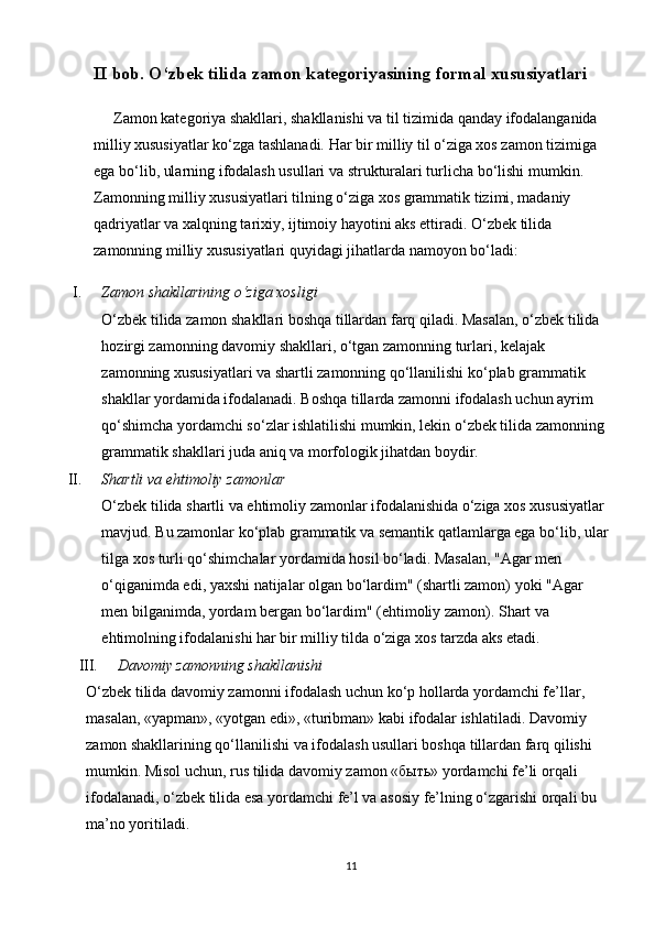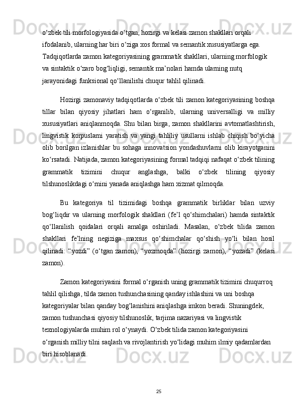 O'zbek tilshunosligida zamon kategoriyasining formal tadqiqi