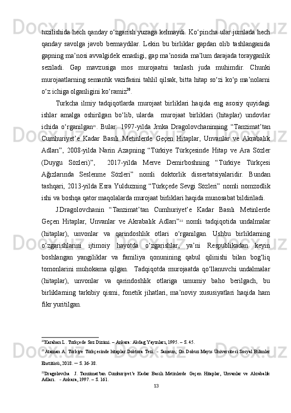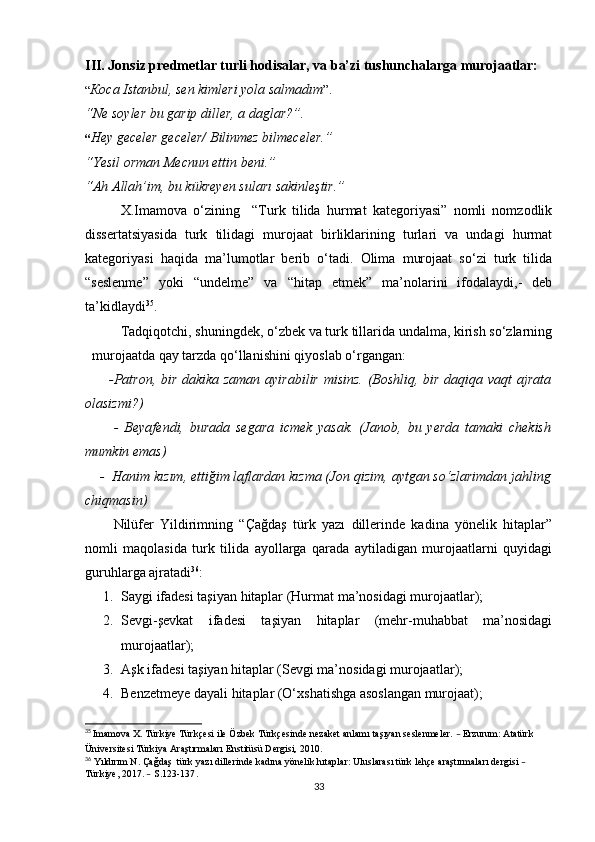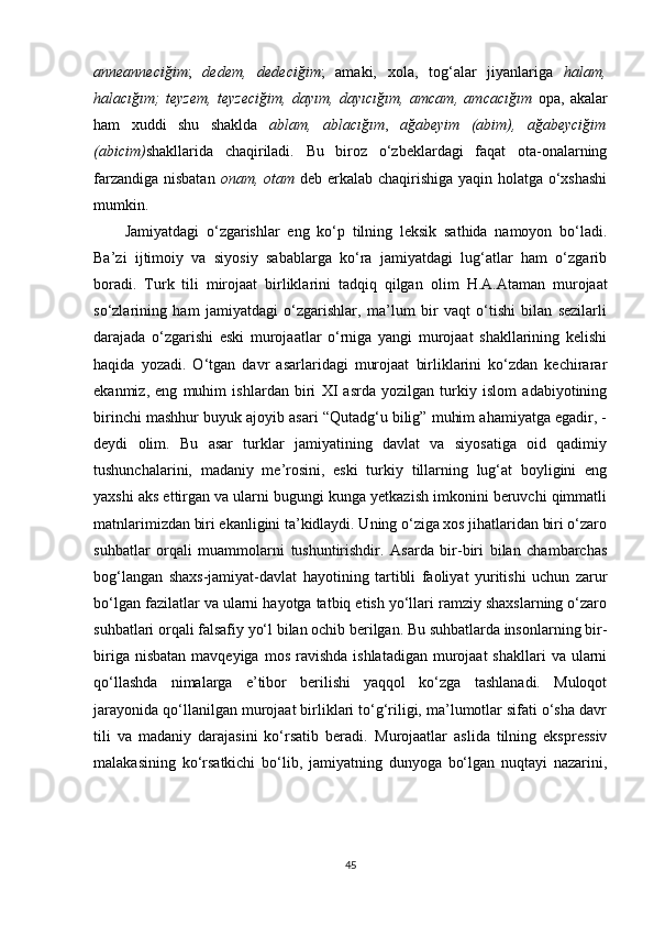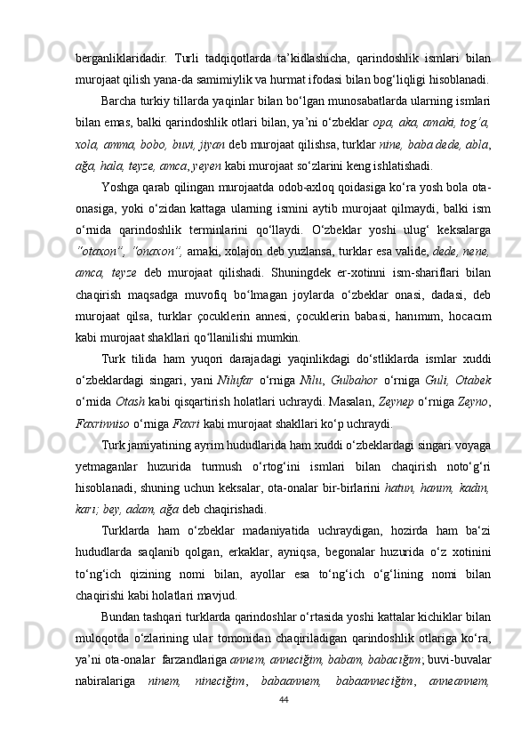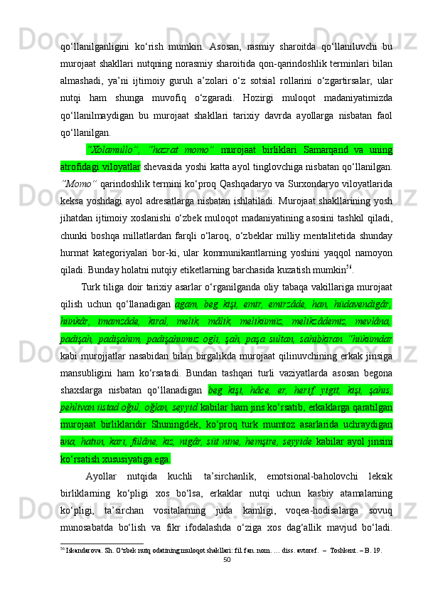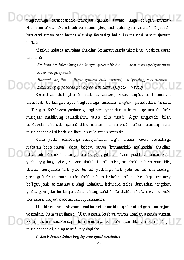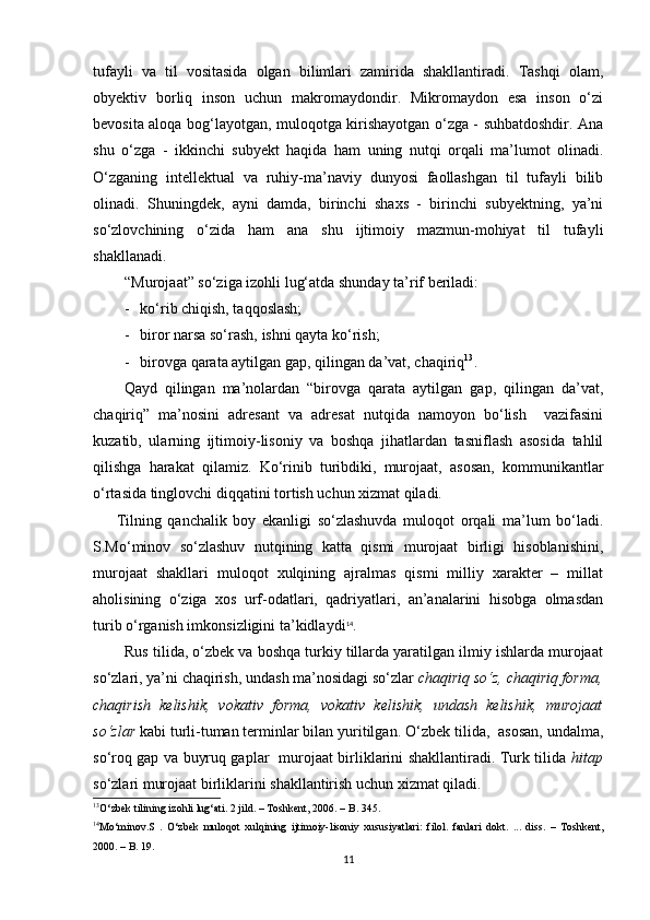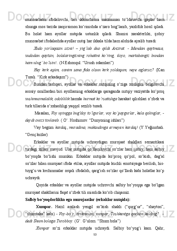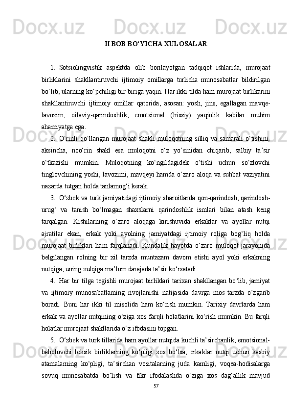 II BOB. O‘ZBEK VA TURK TILLARIDA MUROJAAT BIRLIKLARINING NUTQIY XOSLANISHI