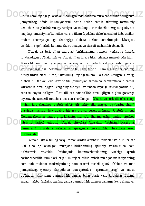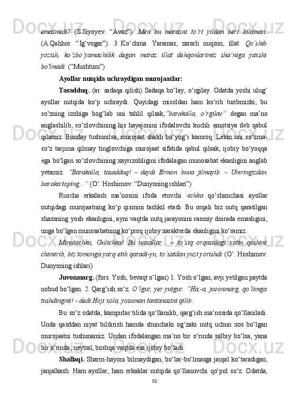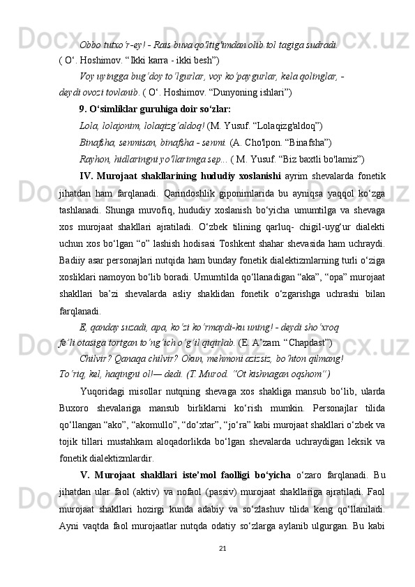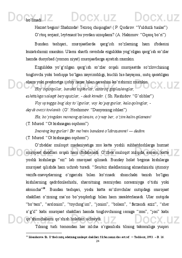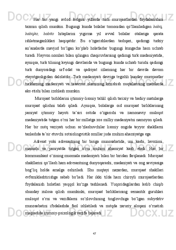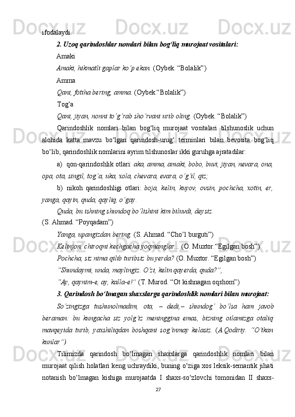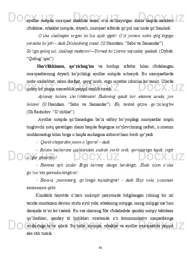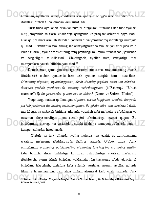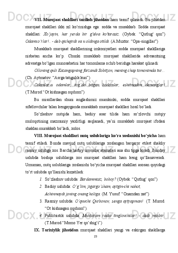 II BOB. O‘ZBEK VA TURK TILLARIDA MUROJAAT BIRLIKLARINING NUTQIY XOSLANISHI
