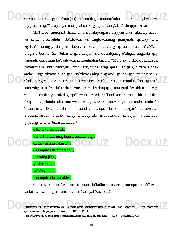 I BOB. TILSHUNOSLIKDA MUROJAAT BIRLIKLARI TUSHUNCHASI: TADQIQI VA TAVSIFI