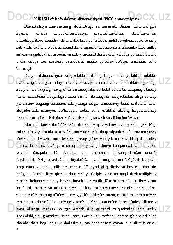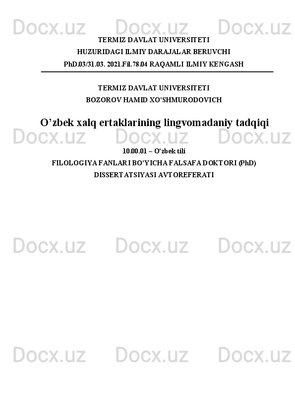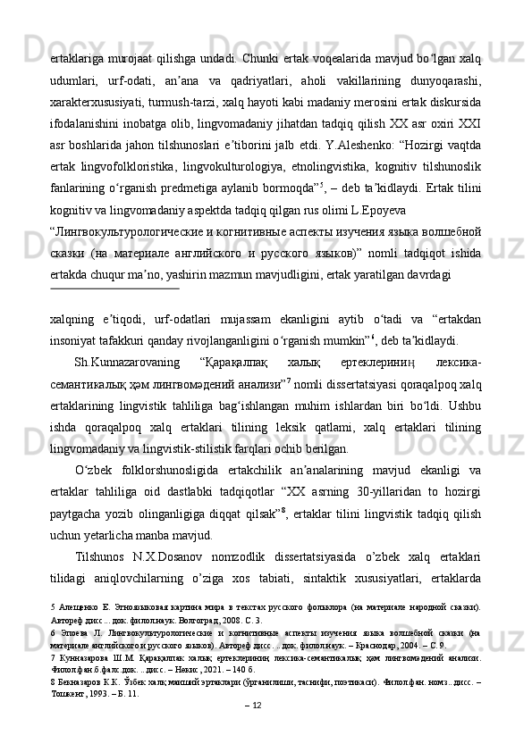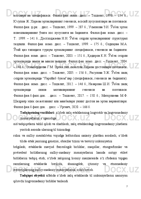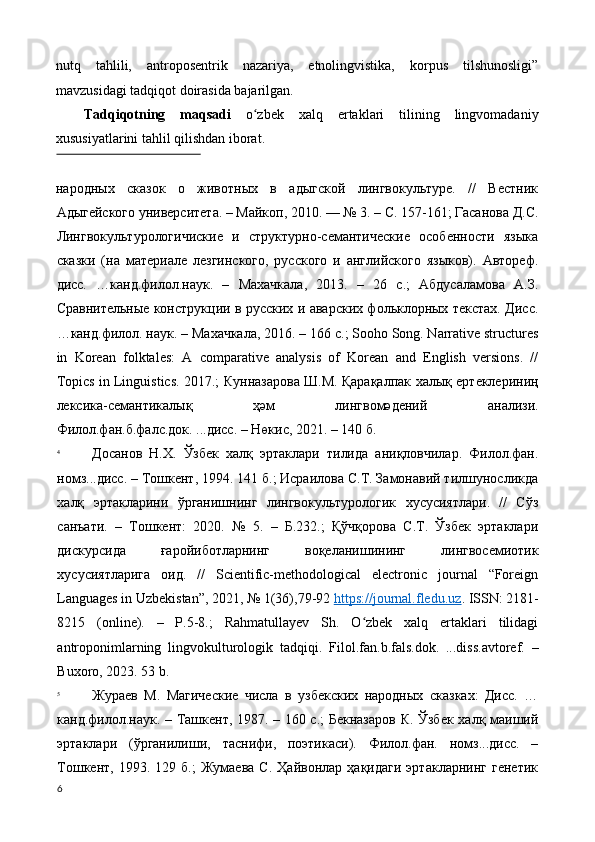 O’zbek xalq ertaklarining lingvomadaniy tadqiqi