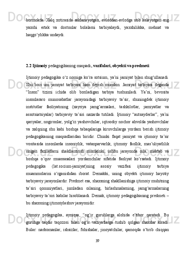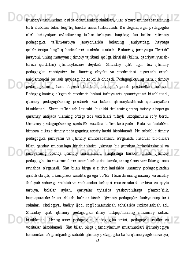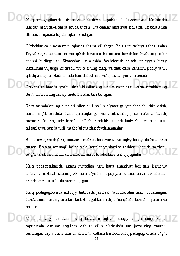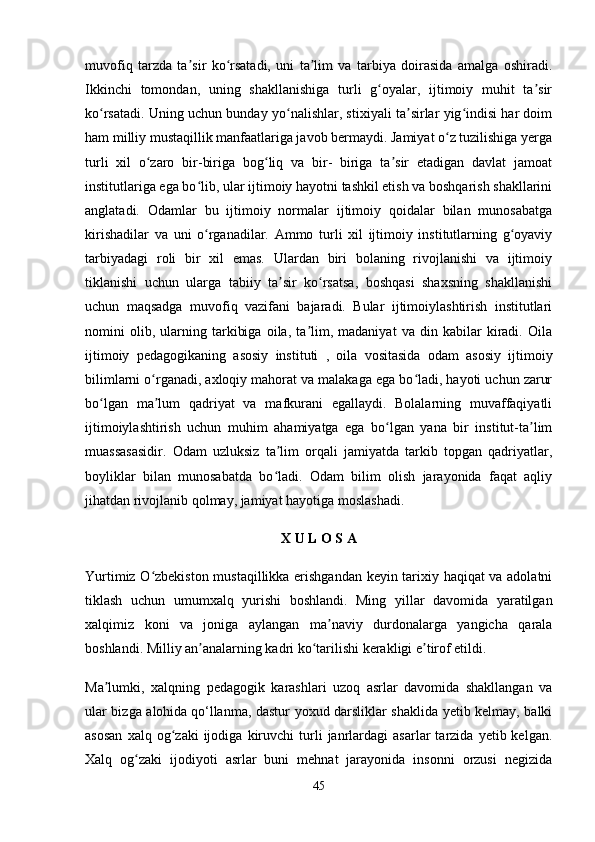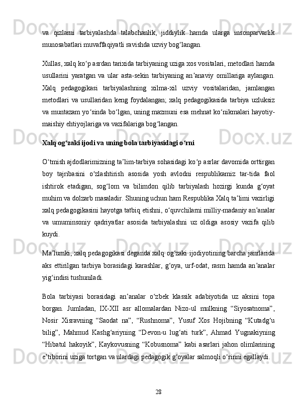 O‘zbek xalq pedagogikasi va islom ta’limotida ijtimoiy pedagogik g‘oyalar