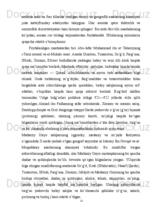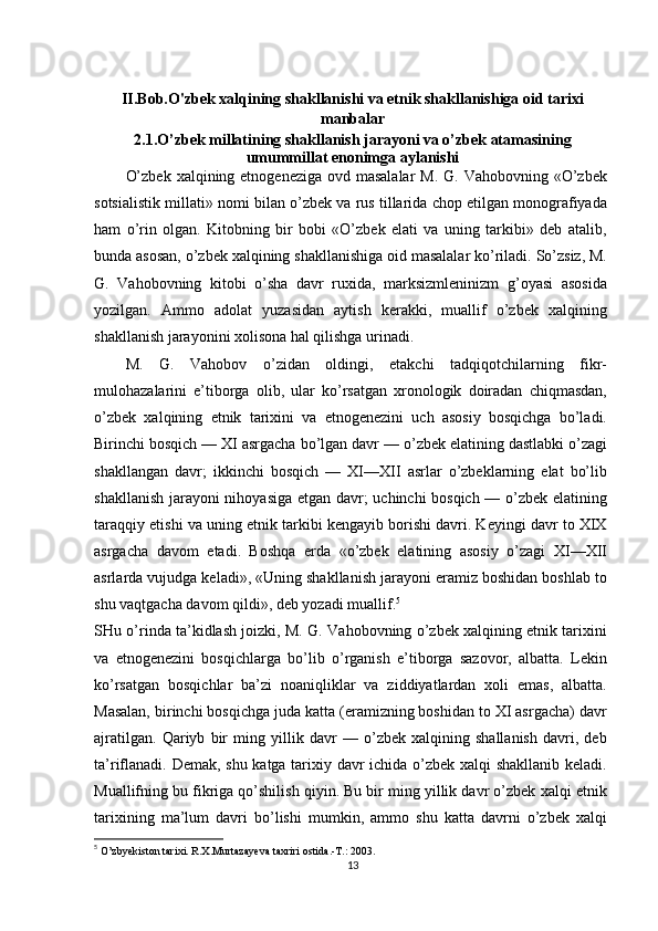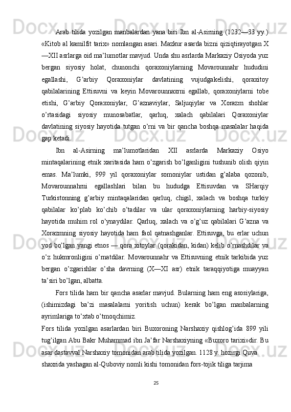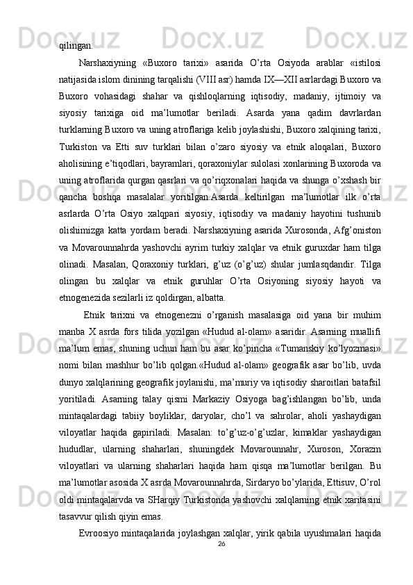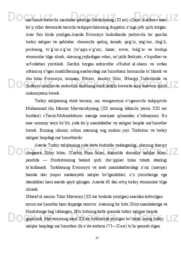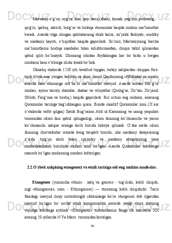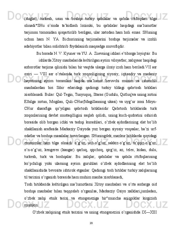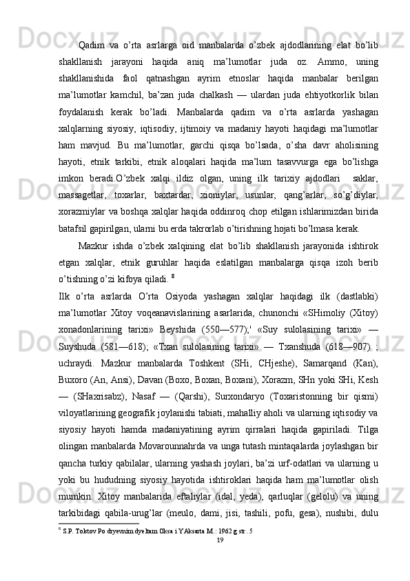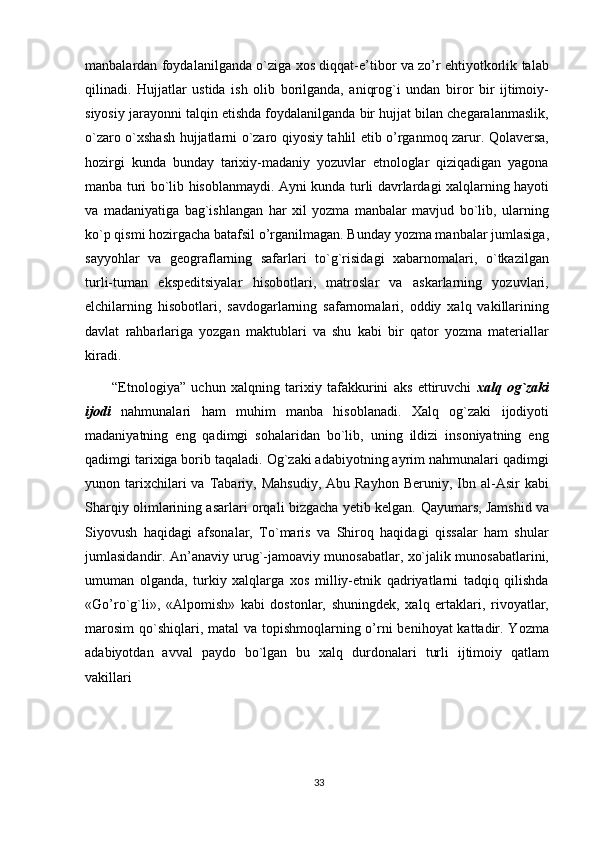 O'zbek xalqining shakllanishi va etnik shakllanishiga oid tarixi manbalar