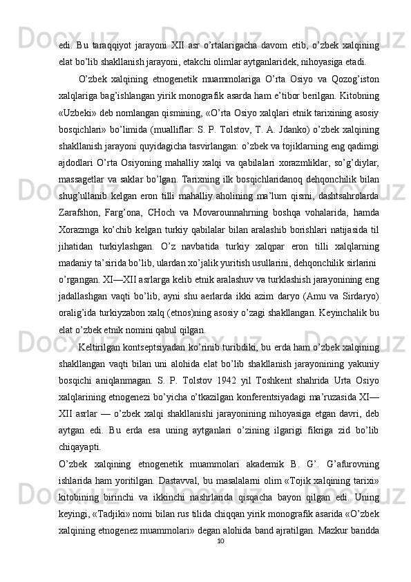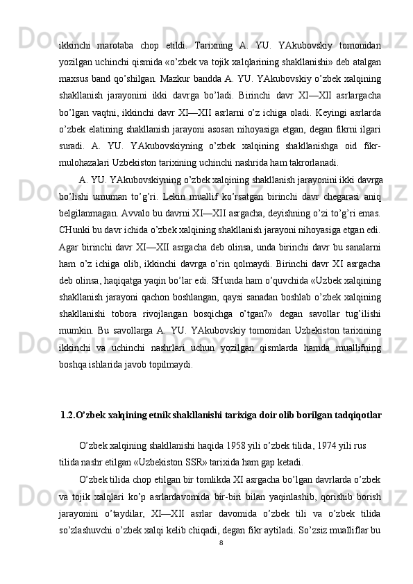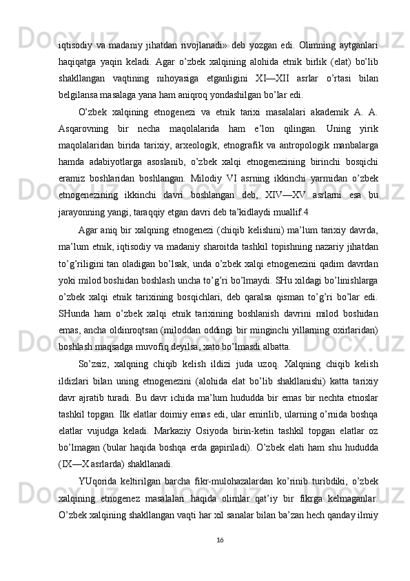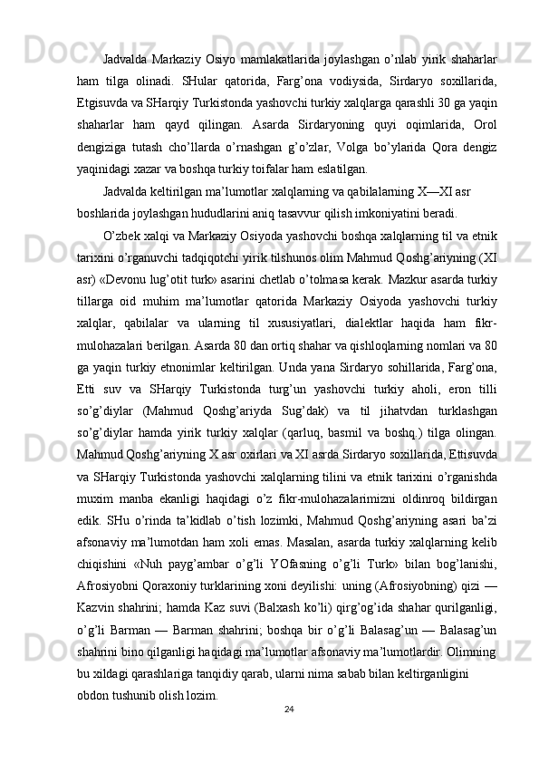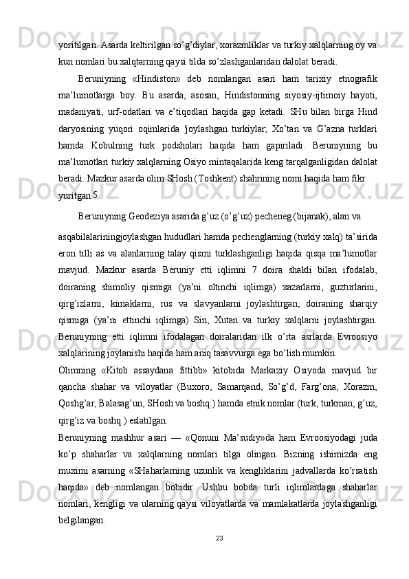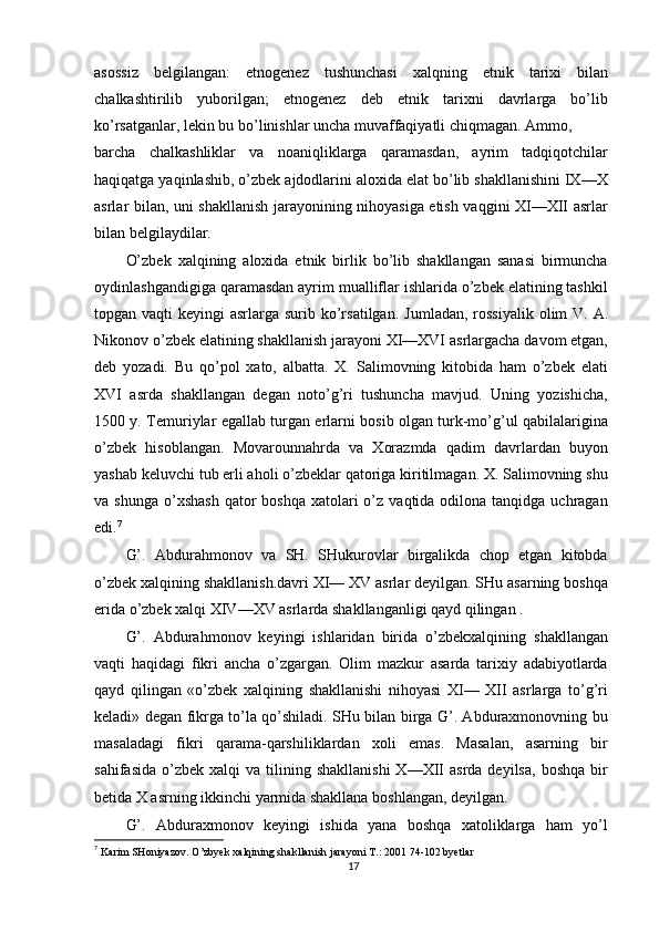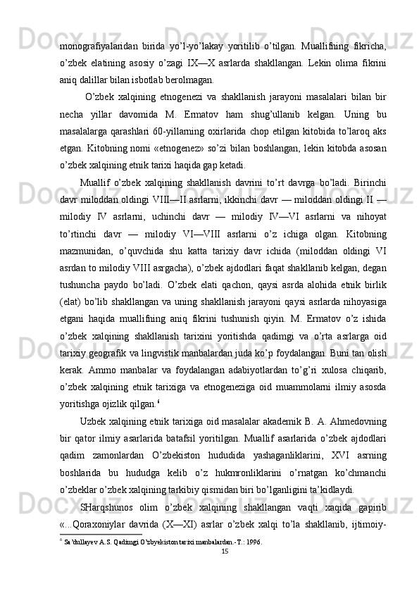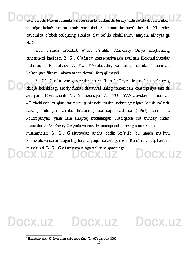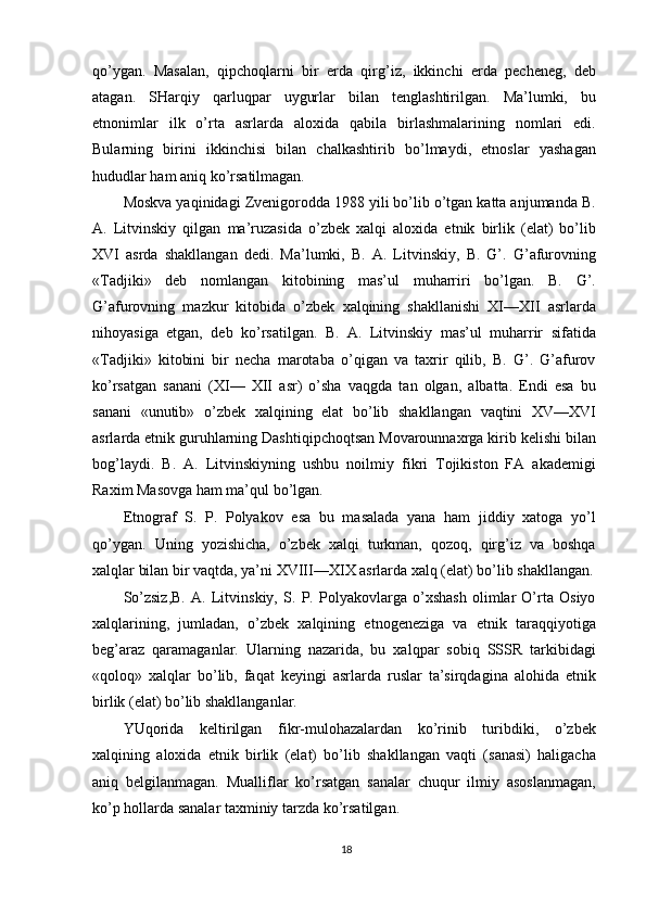 O'zbek xalqining shakllanishi va etnik shakllanishiga oid tarixi manbalar