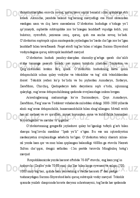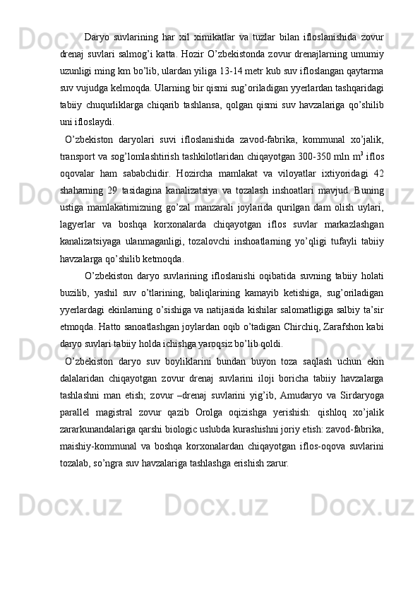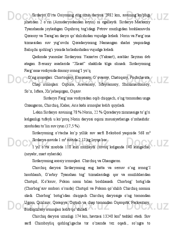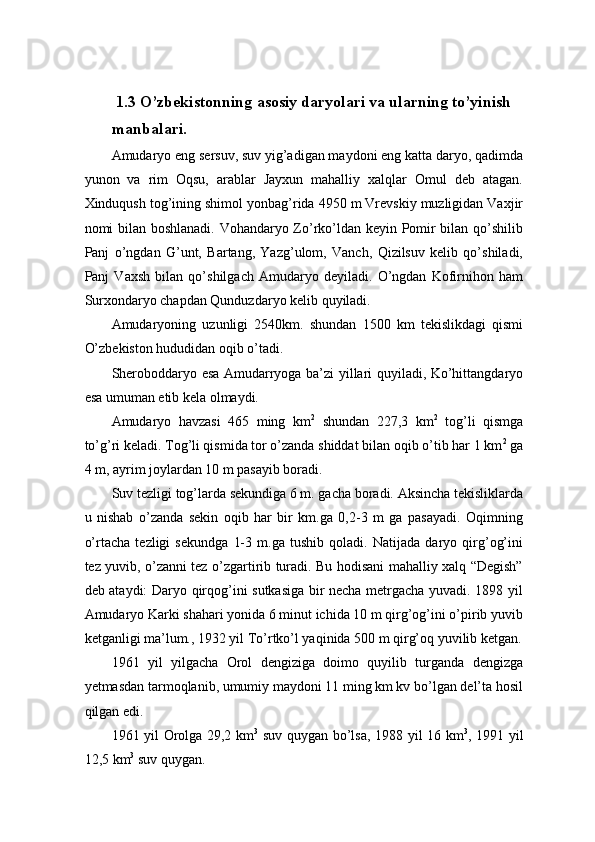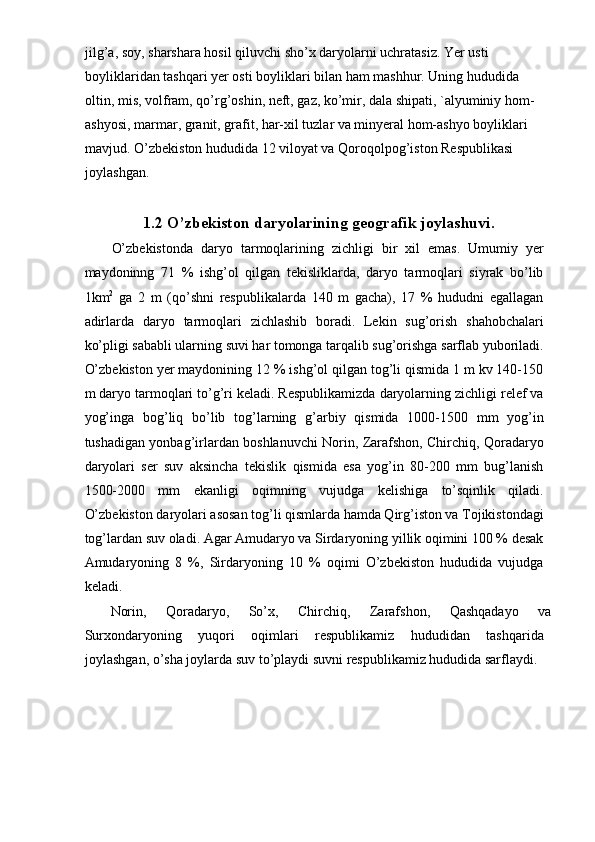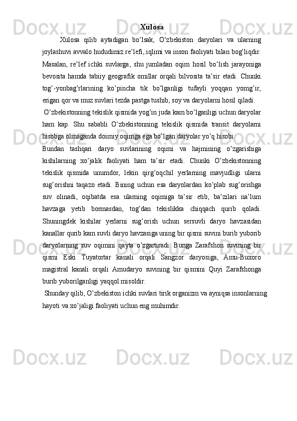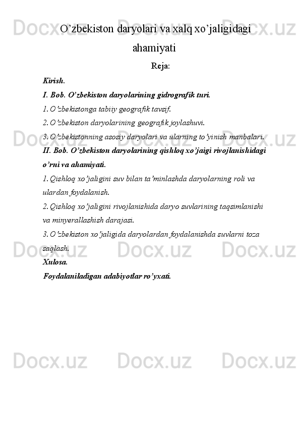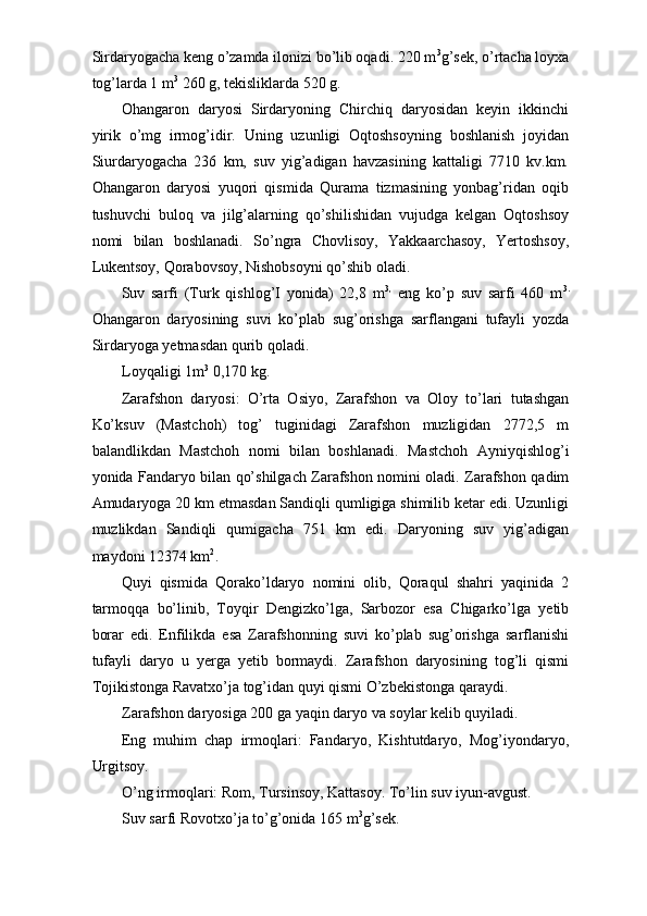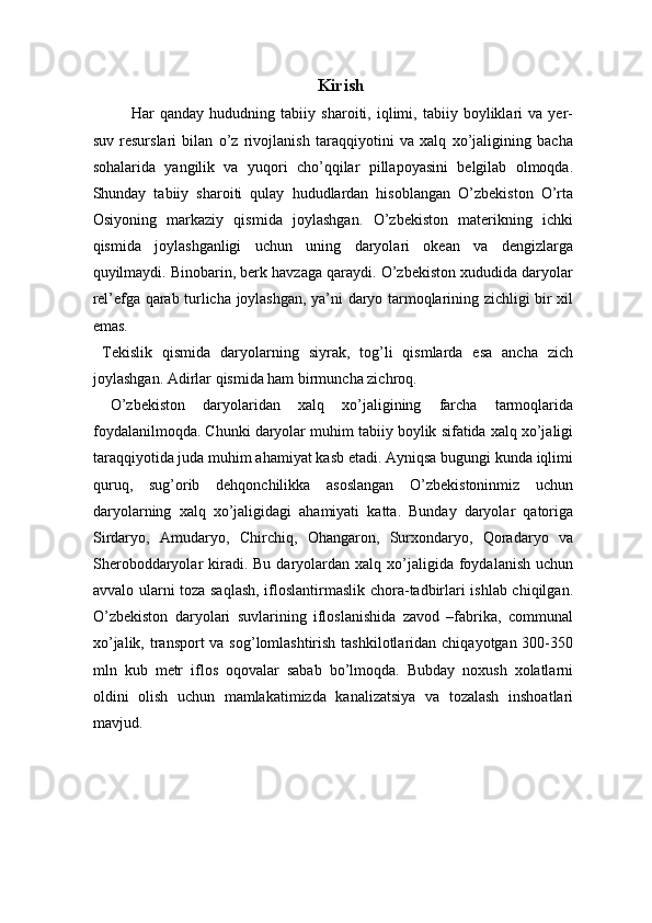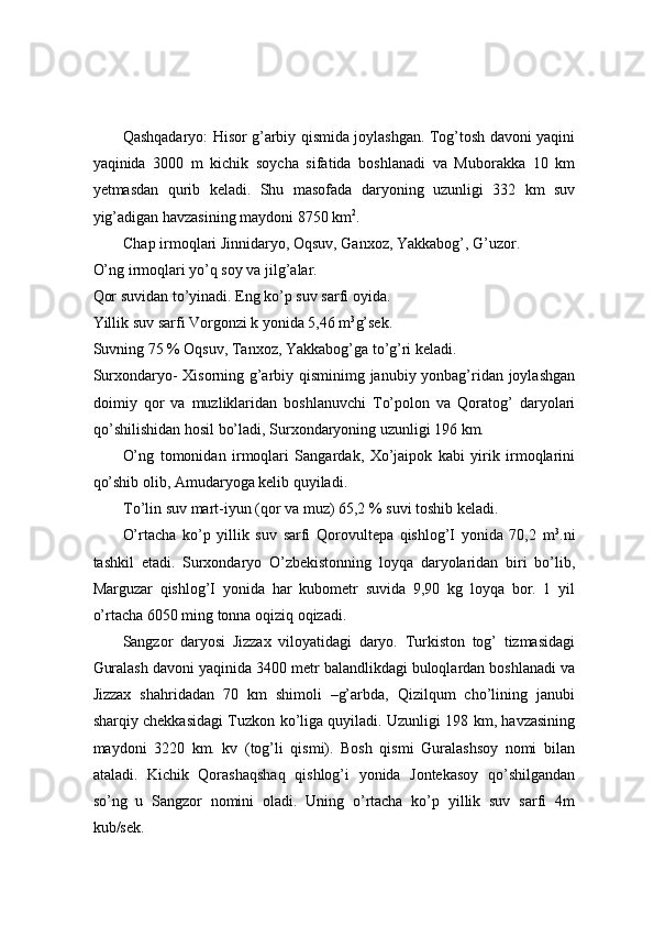 O’zbekiston daryolari va xalq xo’jaligidagi ahamiyati