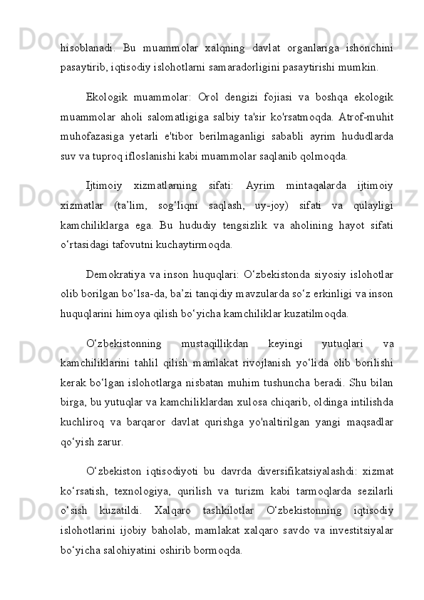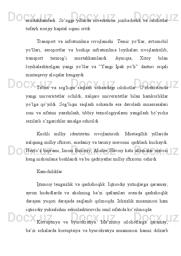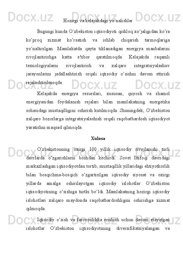 O‘zbekiston iqtisodiyotining oxirgi 100 yildagi umumiy rivojlanish tarixi haqida qisqacha ma’lumot