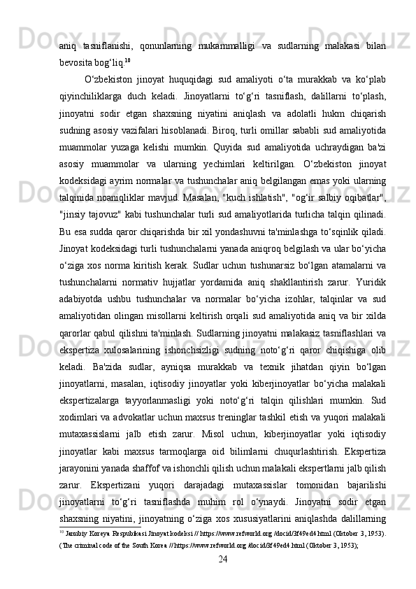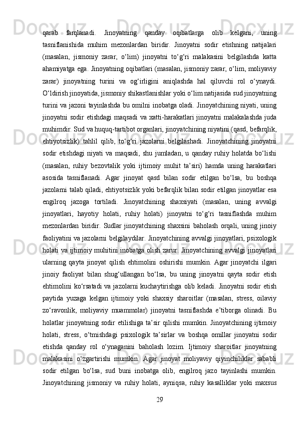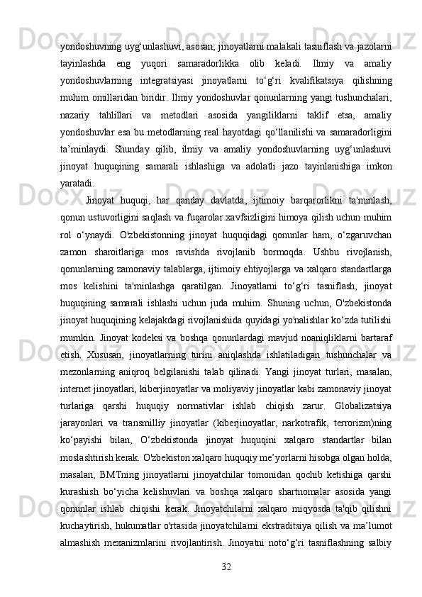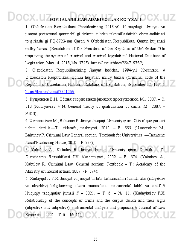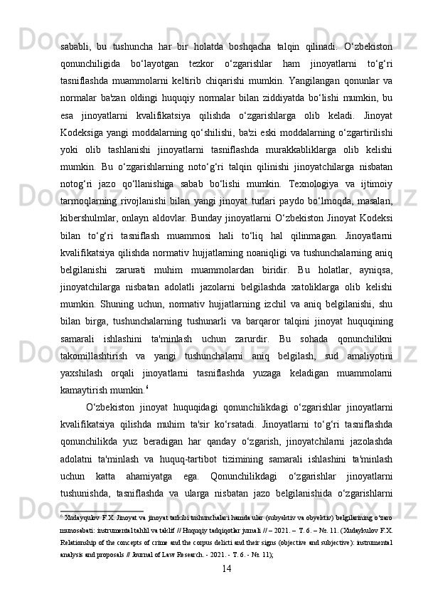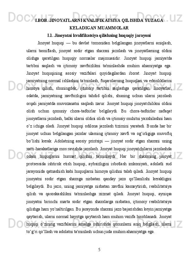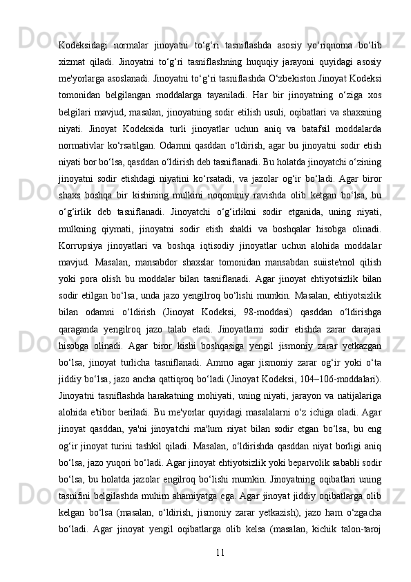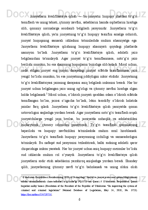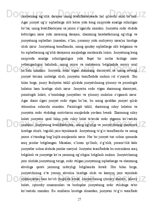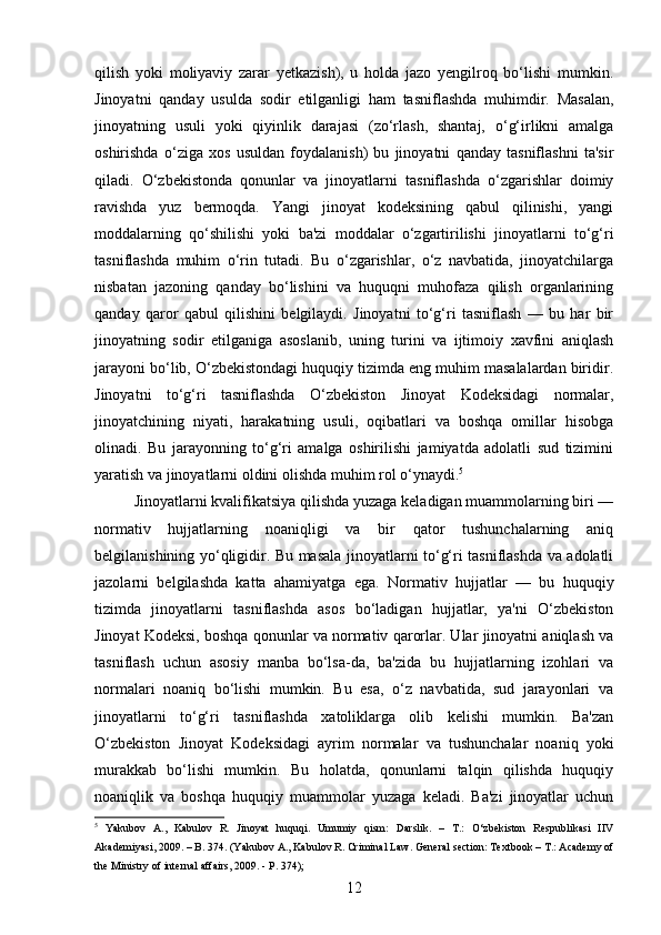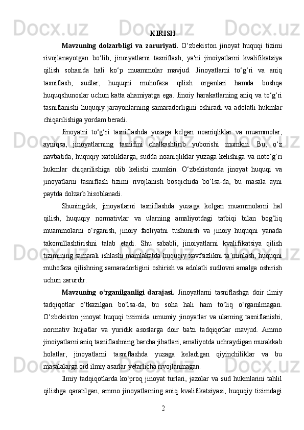 OʻZBEKISTON JINOYAT HUQUQIDA JINOYATLARNI KVALIFIKATSIYA QILISH MUAMMOLARI