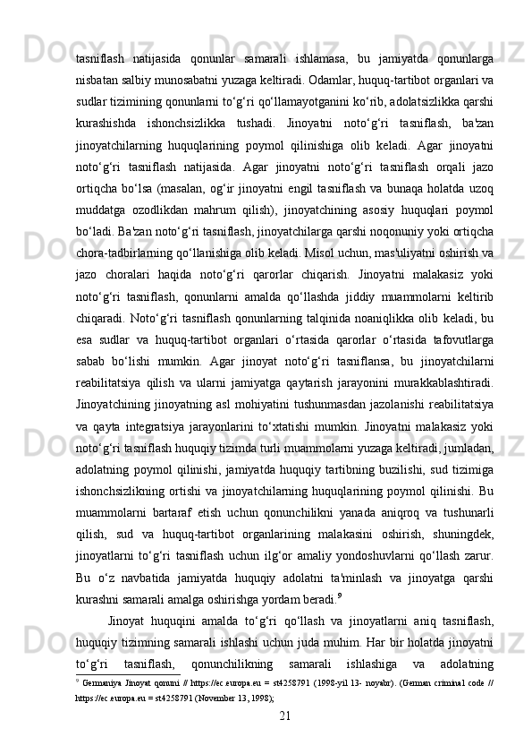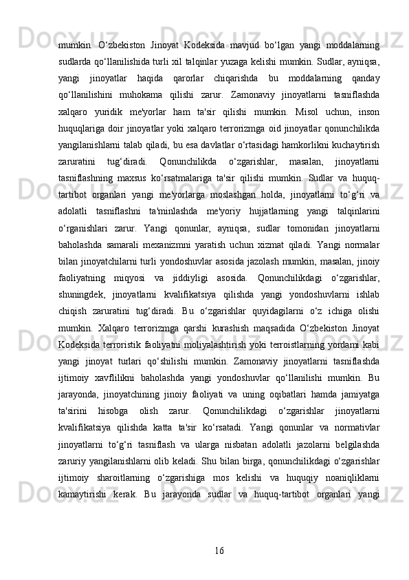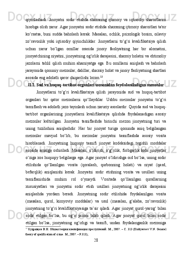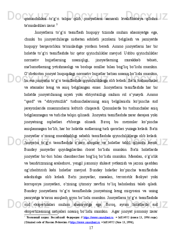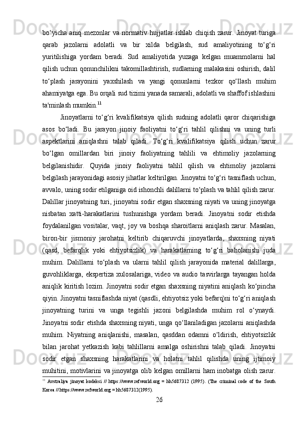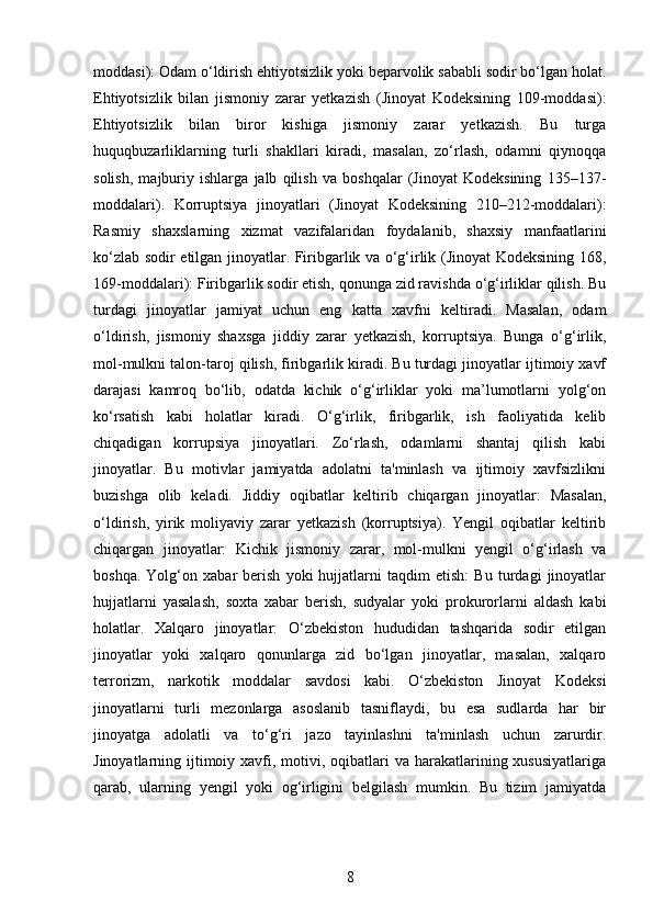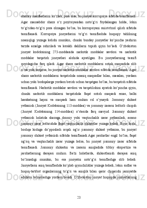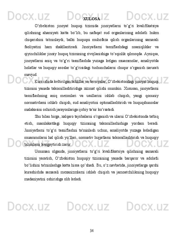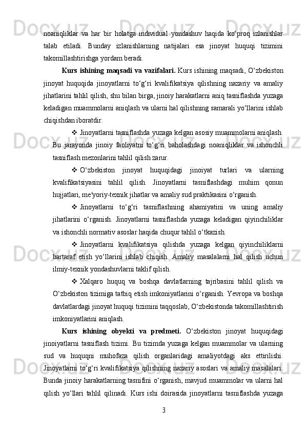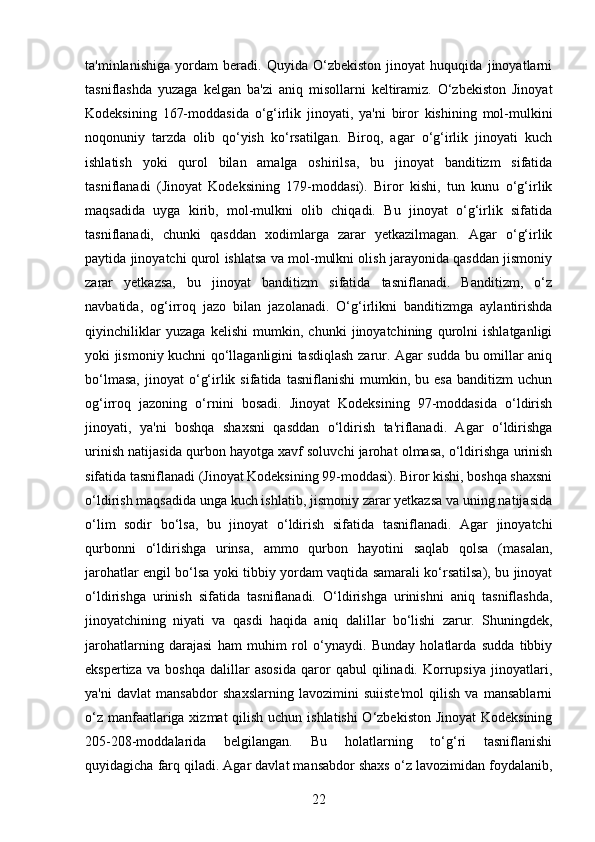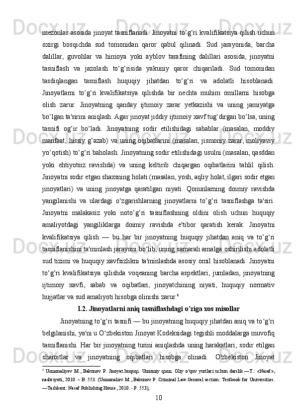 OʻZBEKISTON JINOYAT HUQUQIDA JINOYATLARNI KVALIFIKATSIYA QILISH MUAMMOLARI