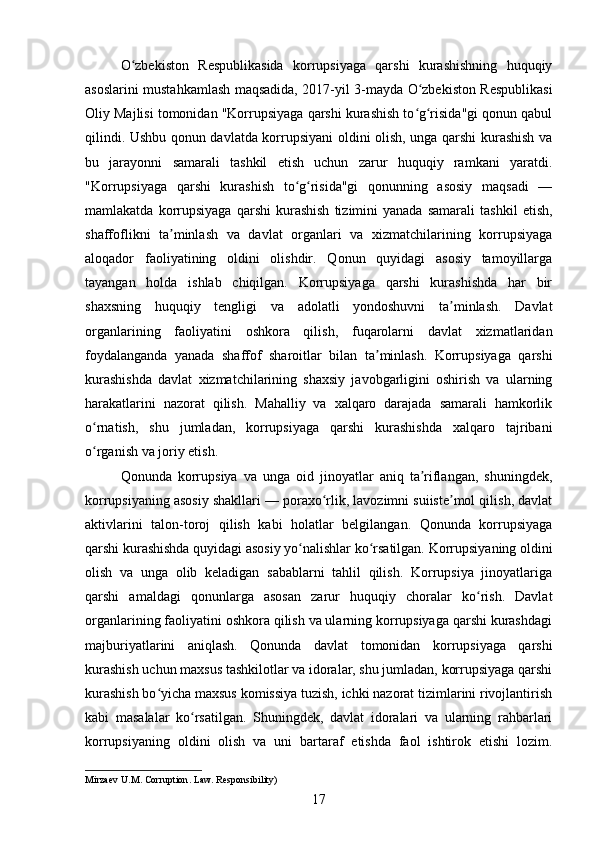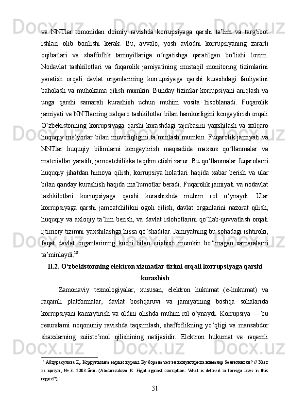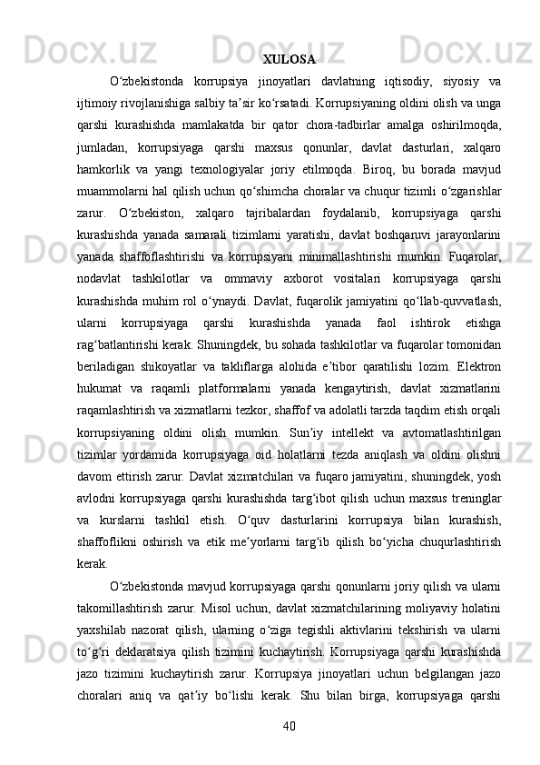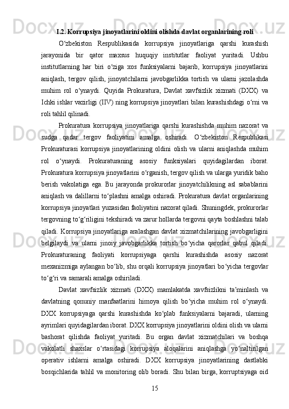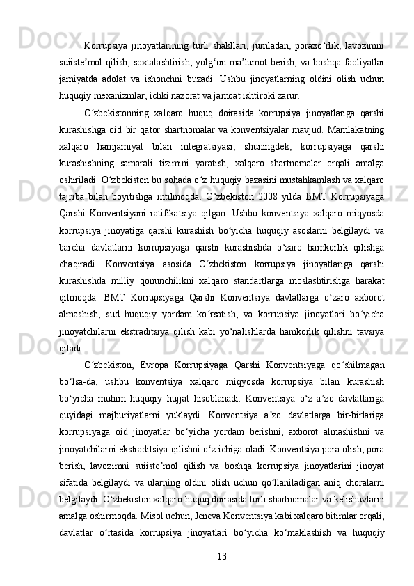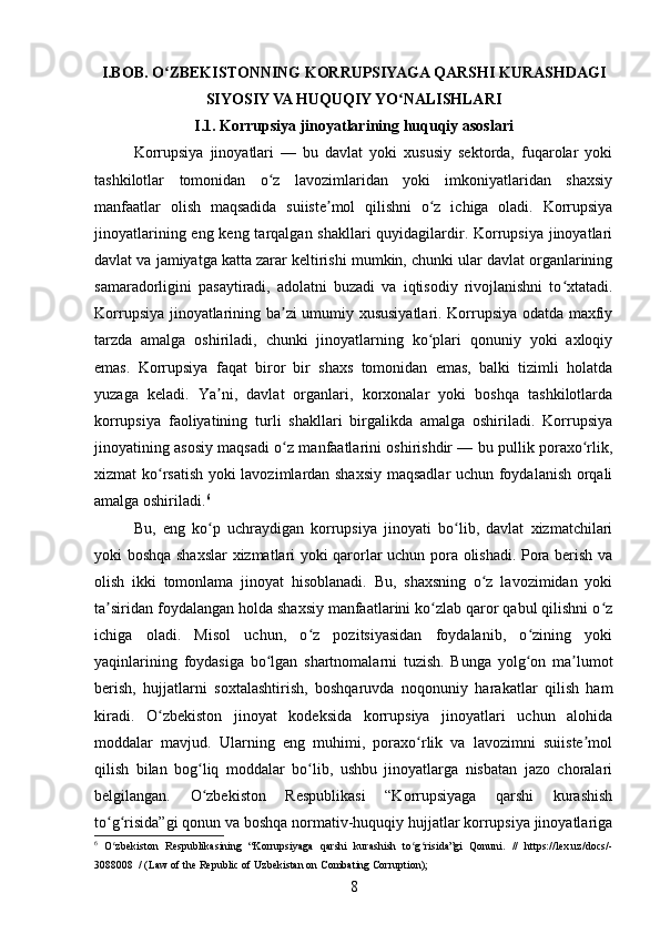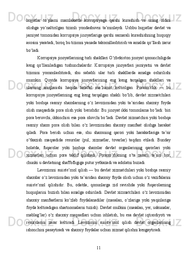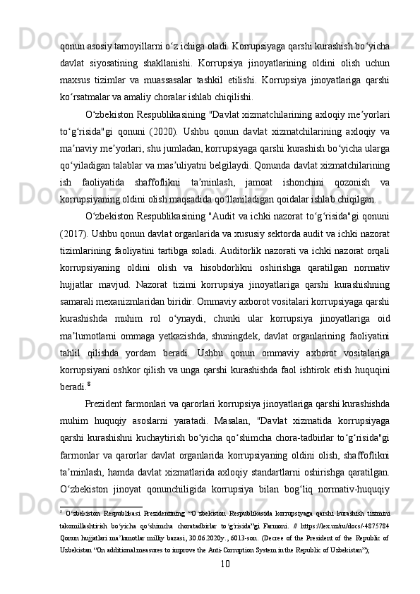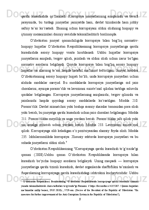 O‘zbekiston jinoyat qonunchiligida korrupsiya jinoyatlarining oldini olish