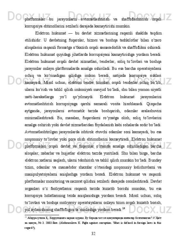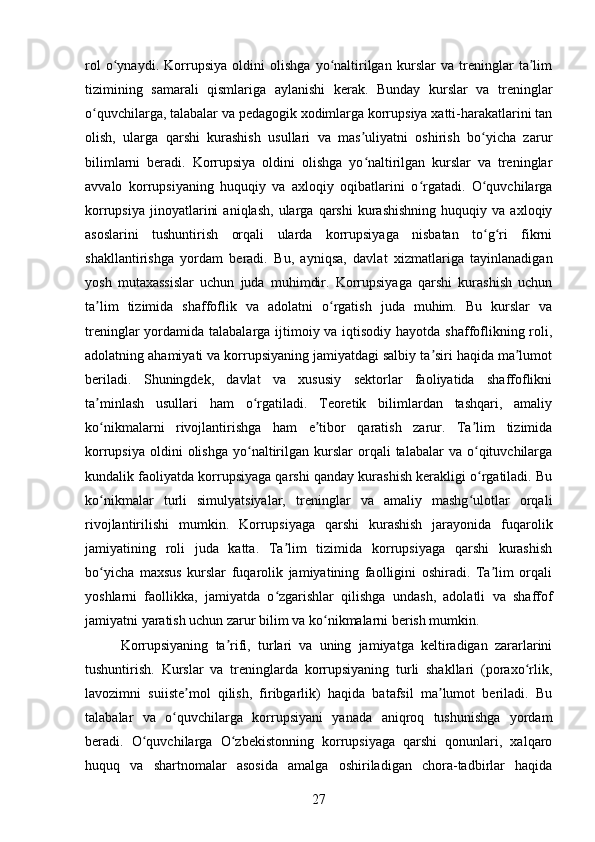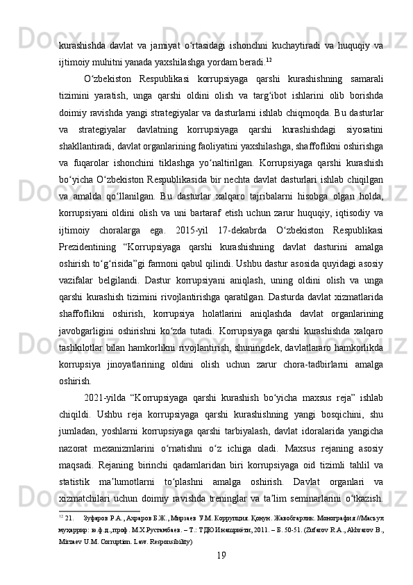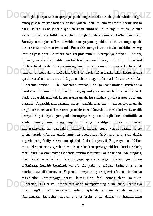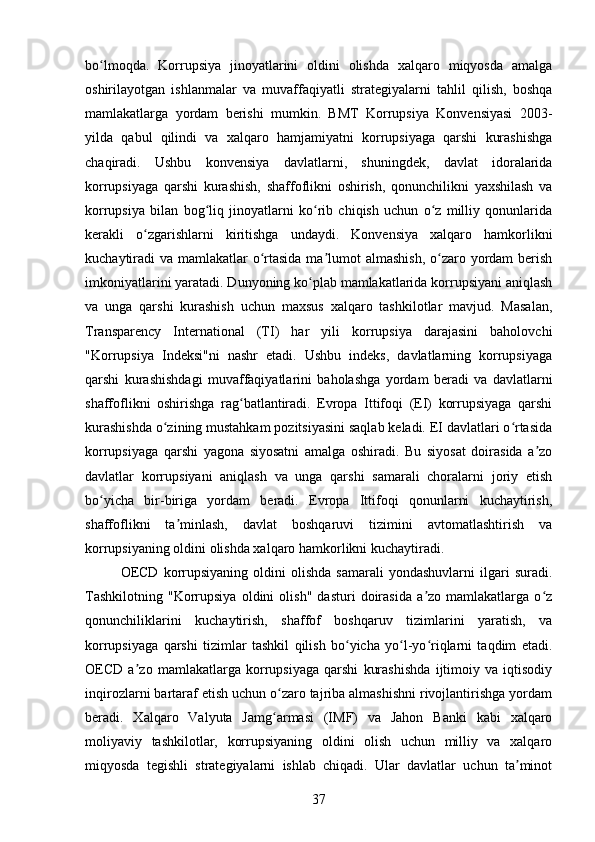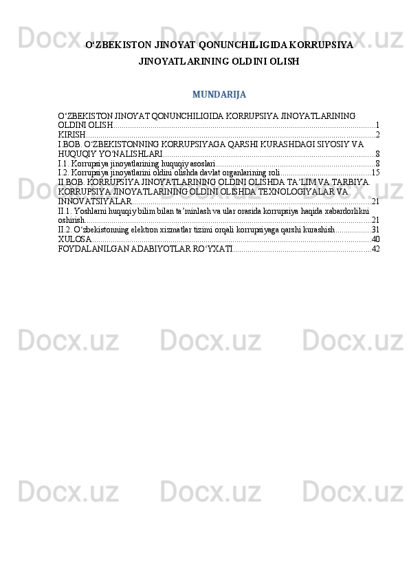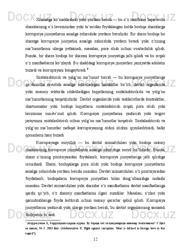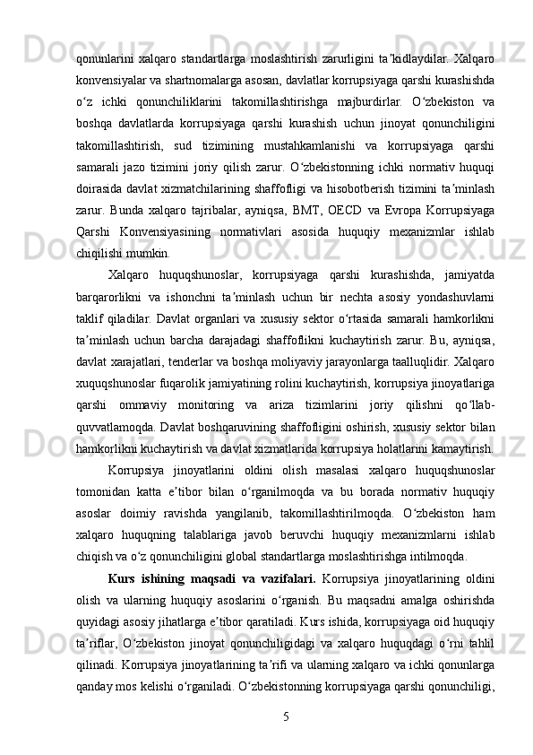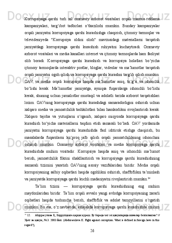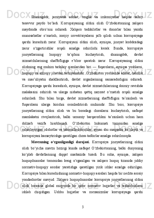 O‘zbekiston jinoyat qonunchiligida korrupsiya jinoyatlarining oldini olish