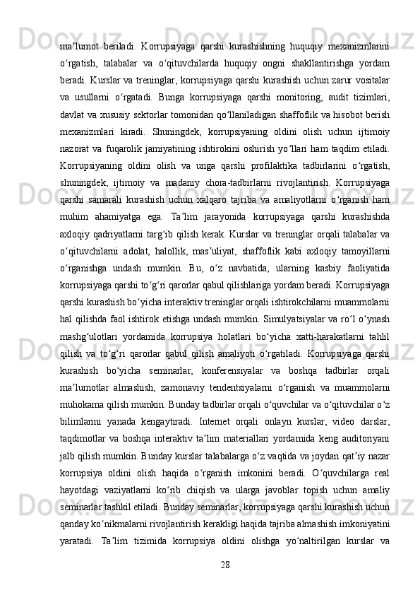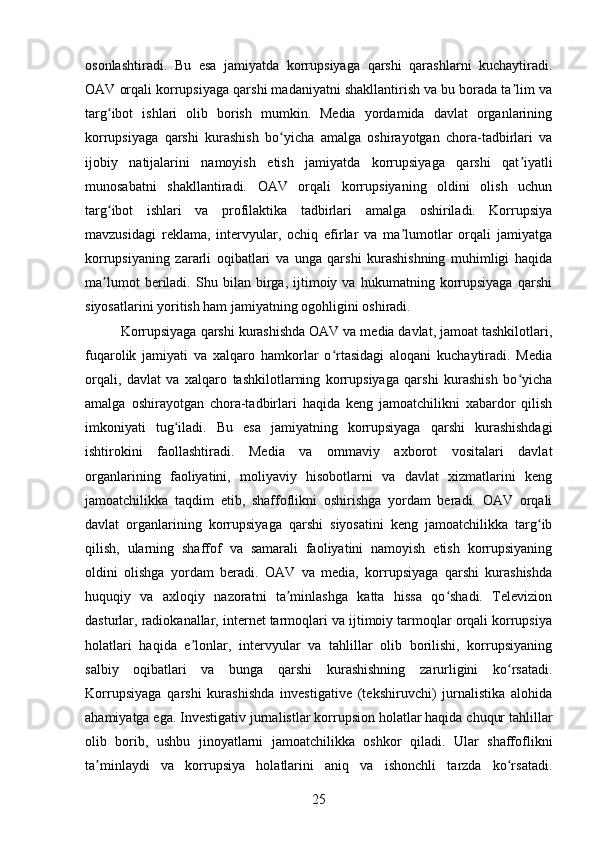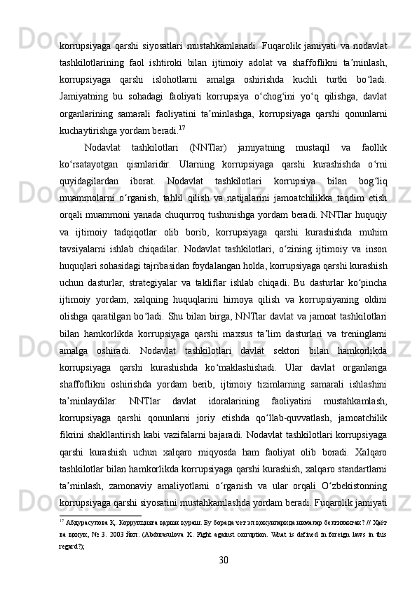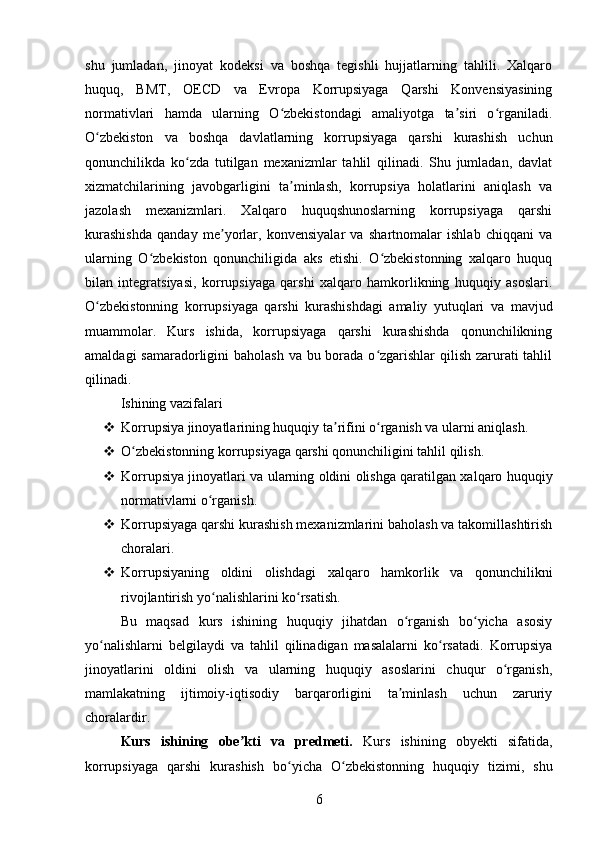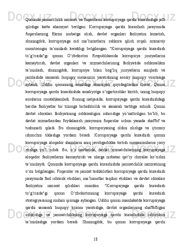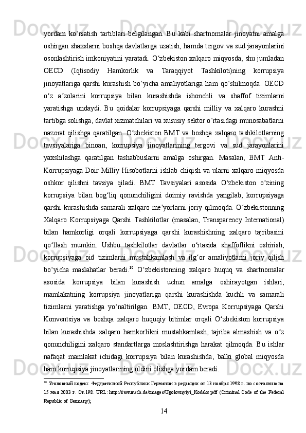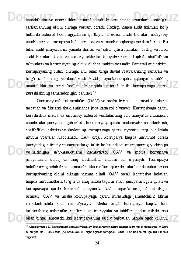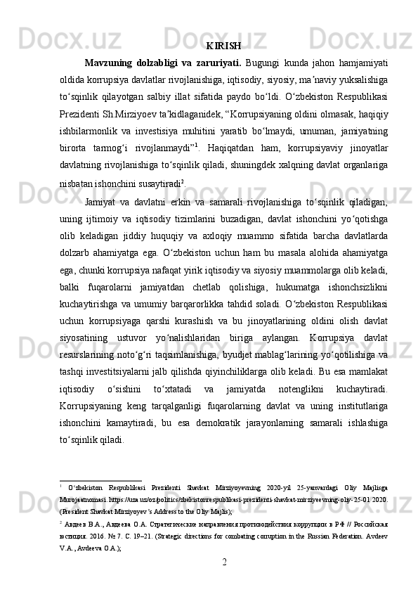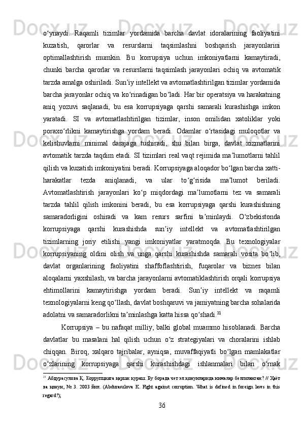 O‘zbekiston jinoyat qonunchiligida korrupsiya jinoyatlarining oldini olish