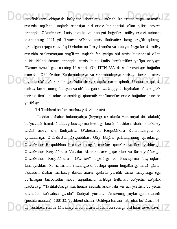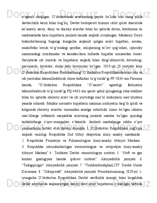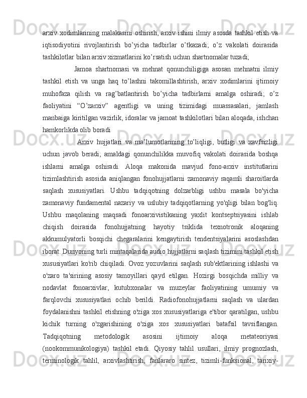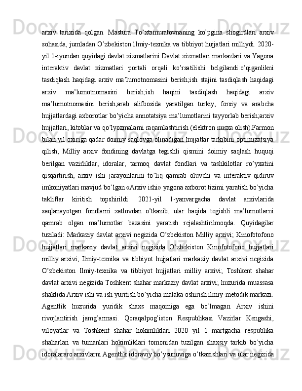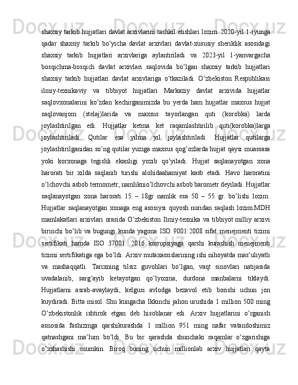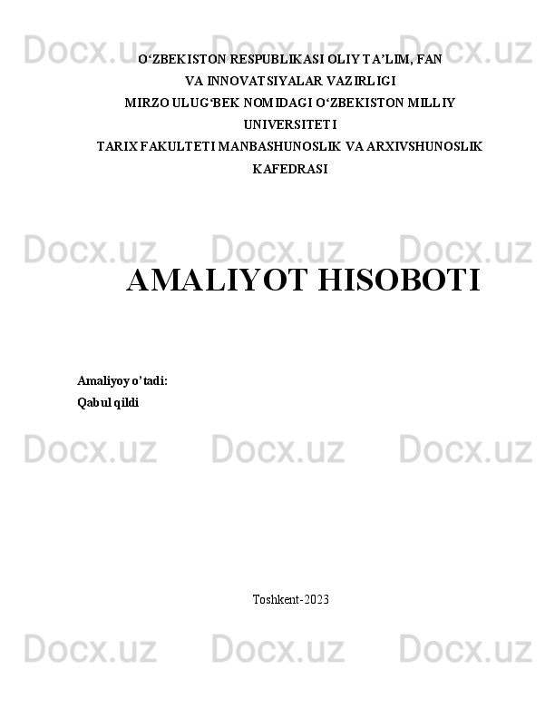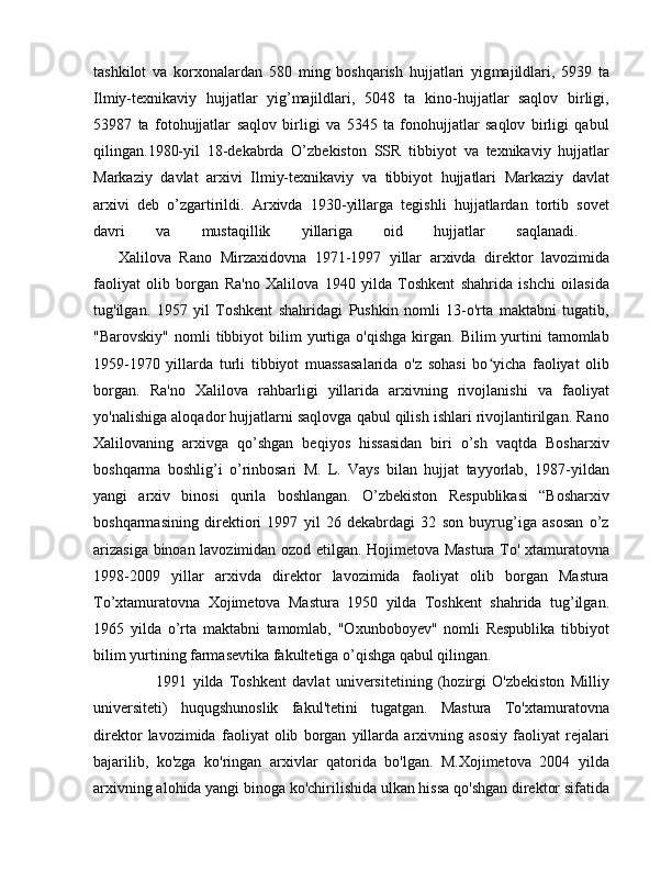 Oʻzbekiston kinofotofono hujjatlari Milliy arxivi amaliyot HISOBOTI