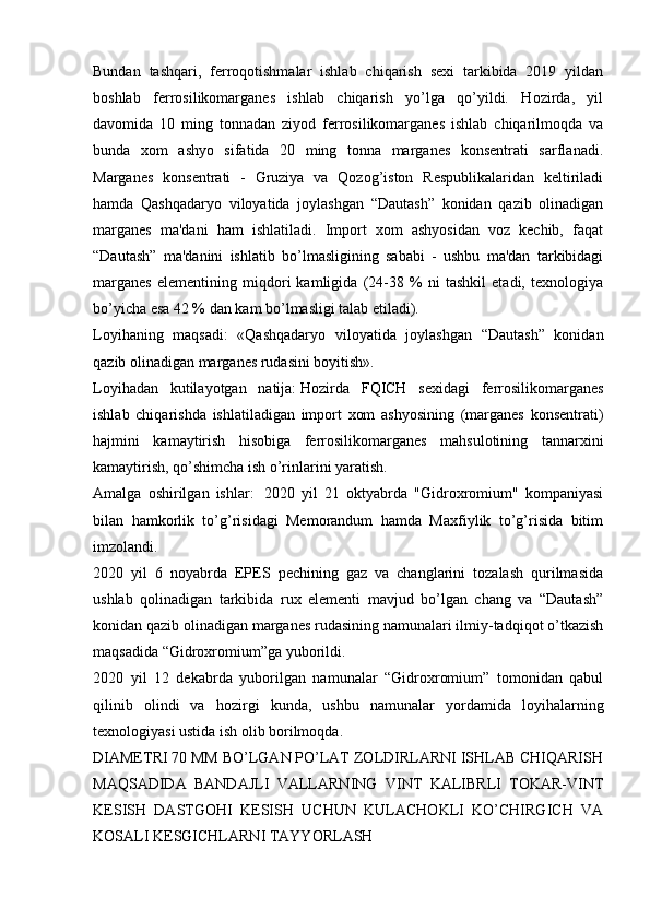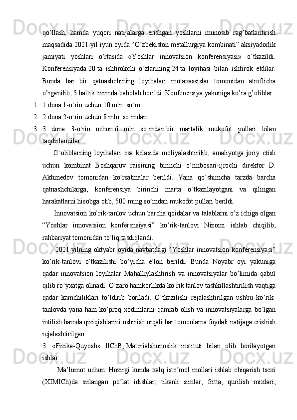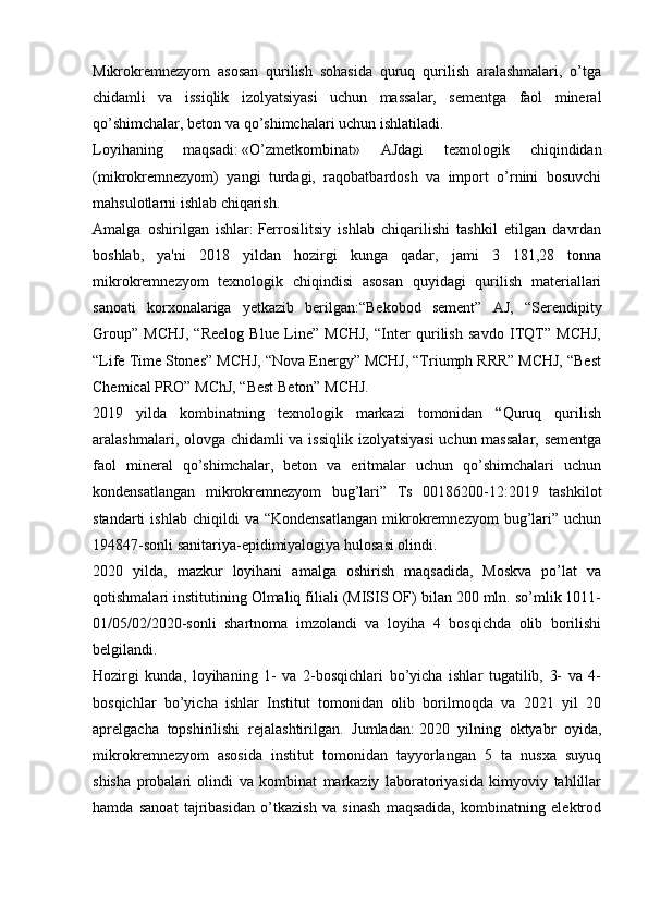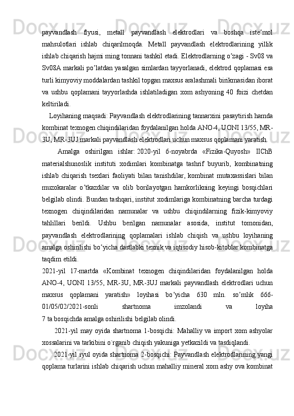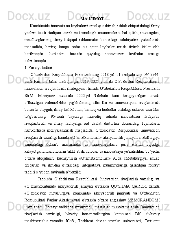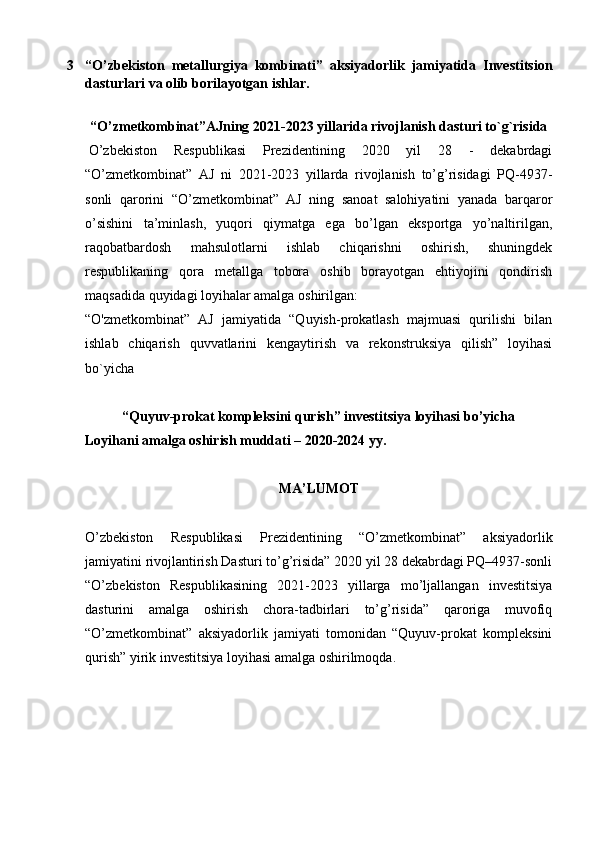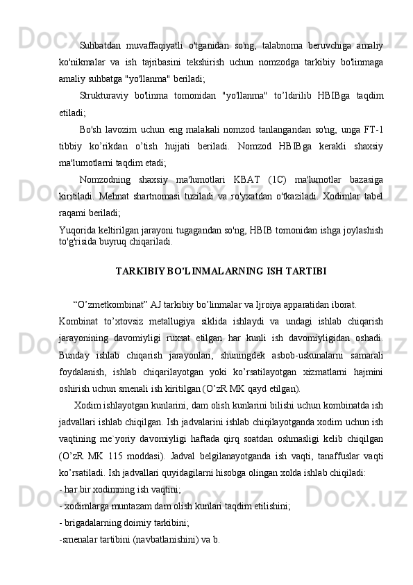 “O’zbekiston metallurgiya kombinati” aksiyadorlik jamiyatida amaliyot hisoboti