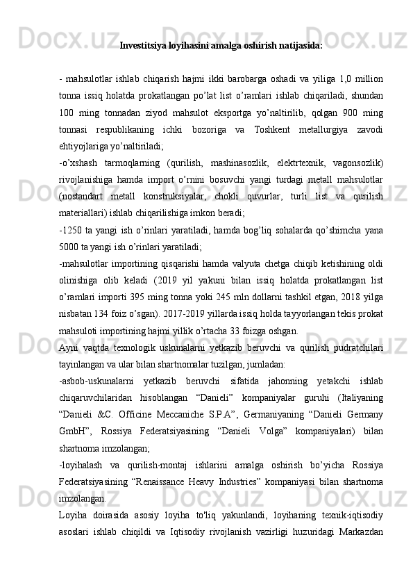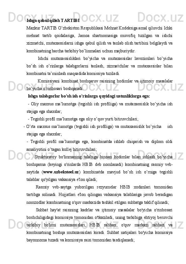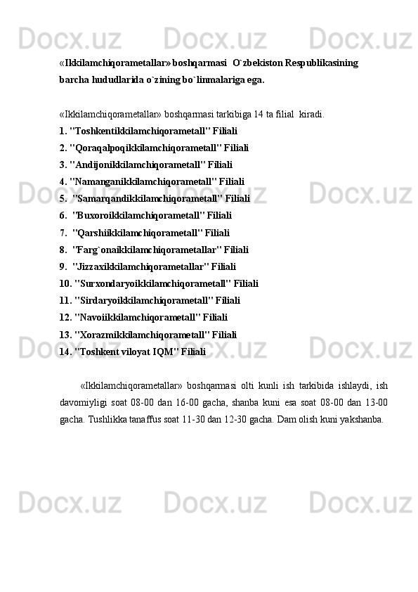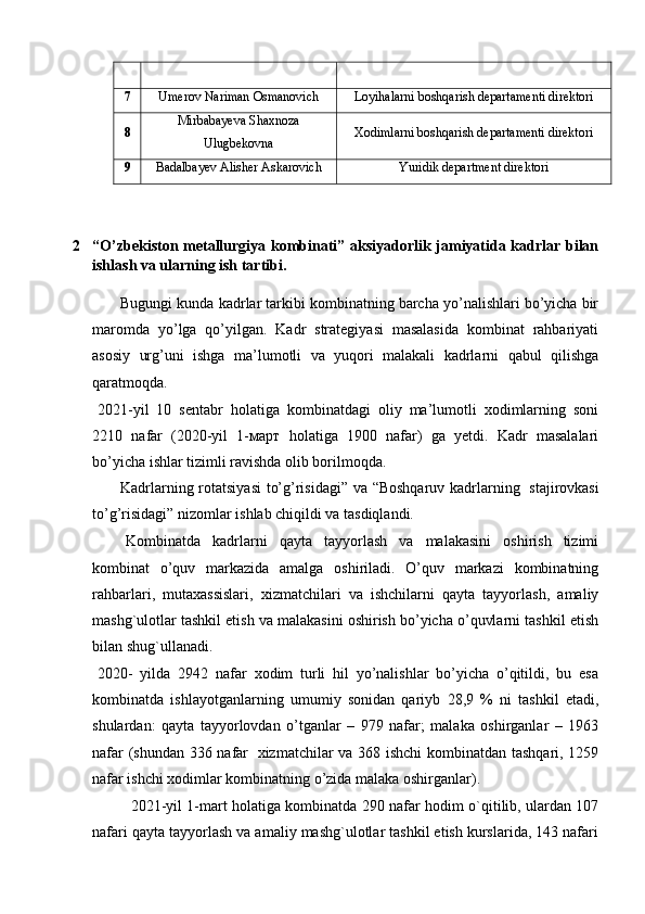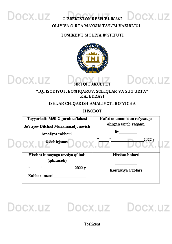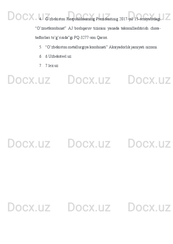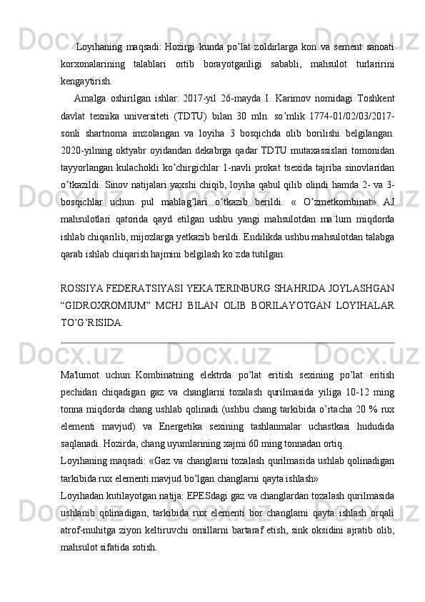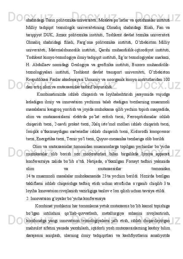 “O’zbekiston metallurgiya kombinati” aksiyadorlik jamiyatida amaliyot hisoboti