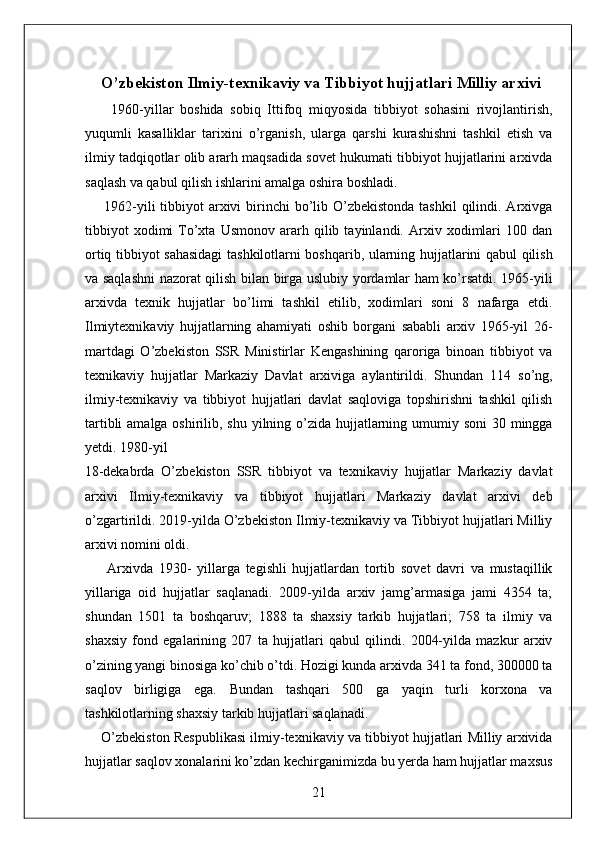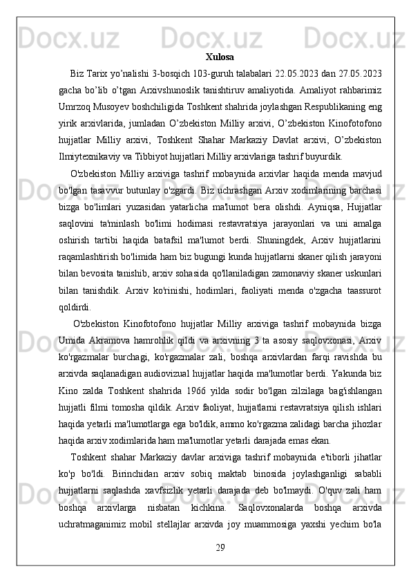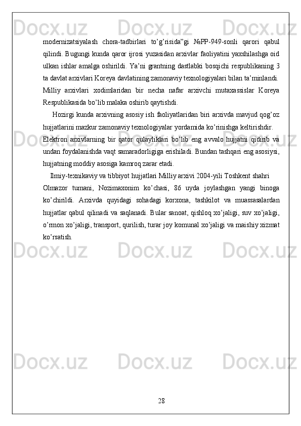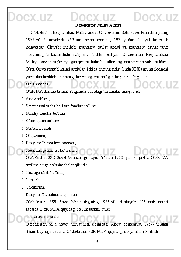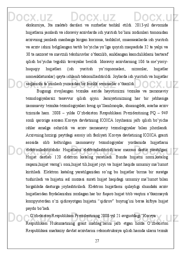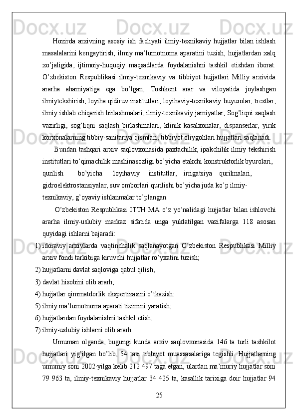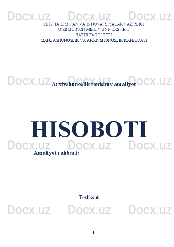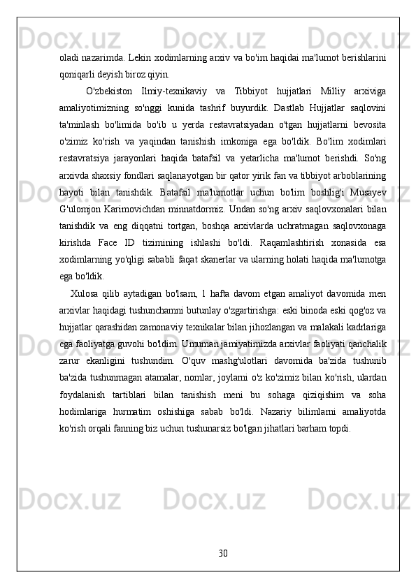 O'zbekiston Milliy arxivi hisobot amaliyot