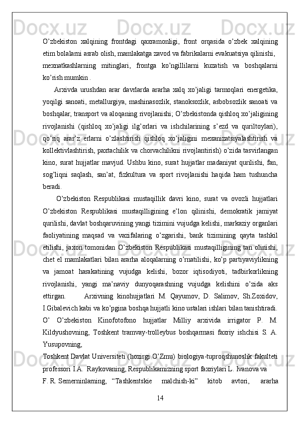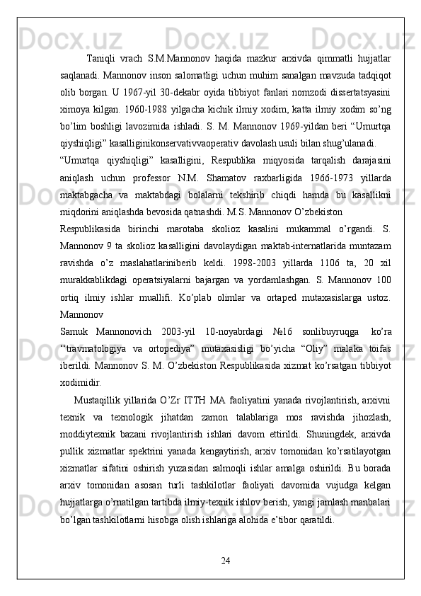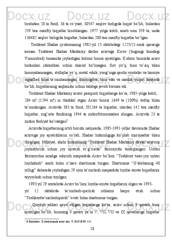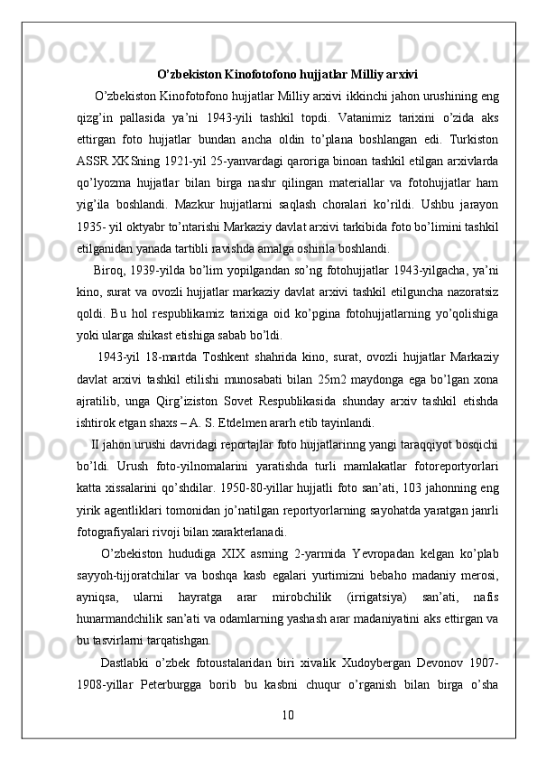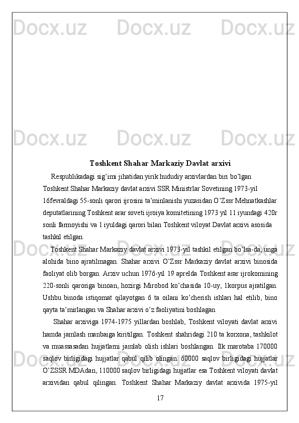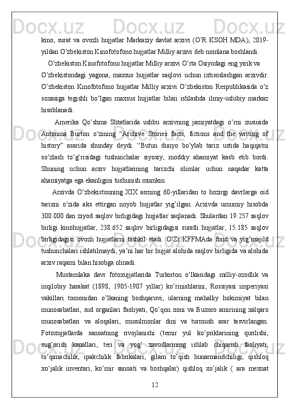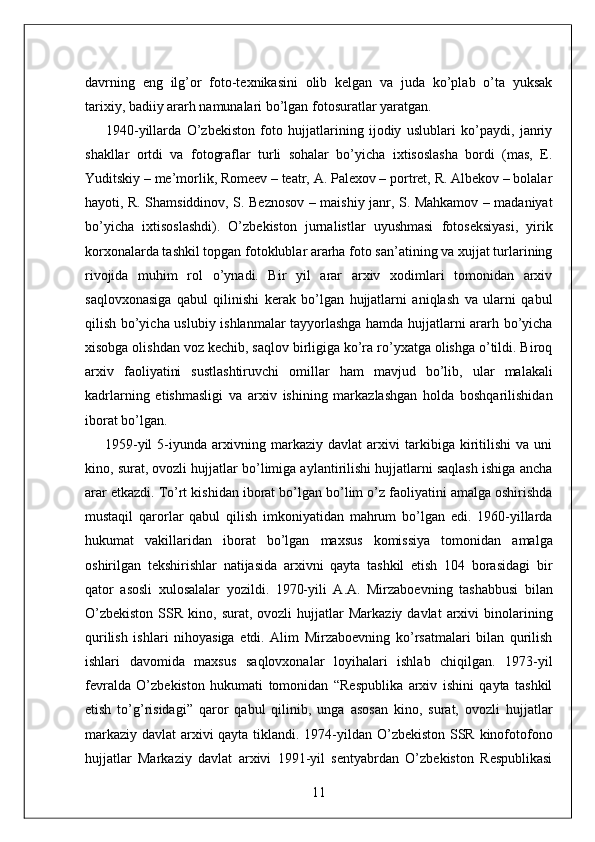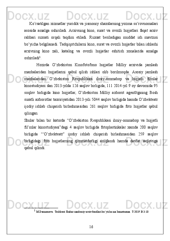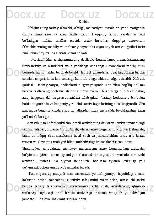 O'zbekiston Milliy arxivi hisobot amaliyot