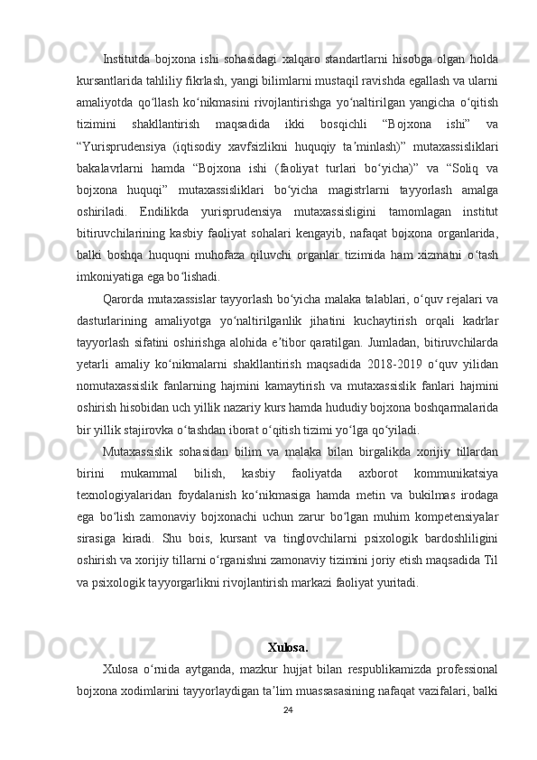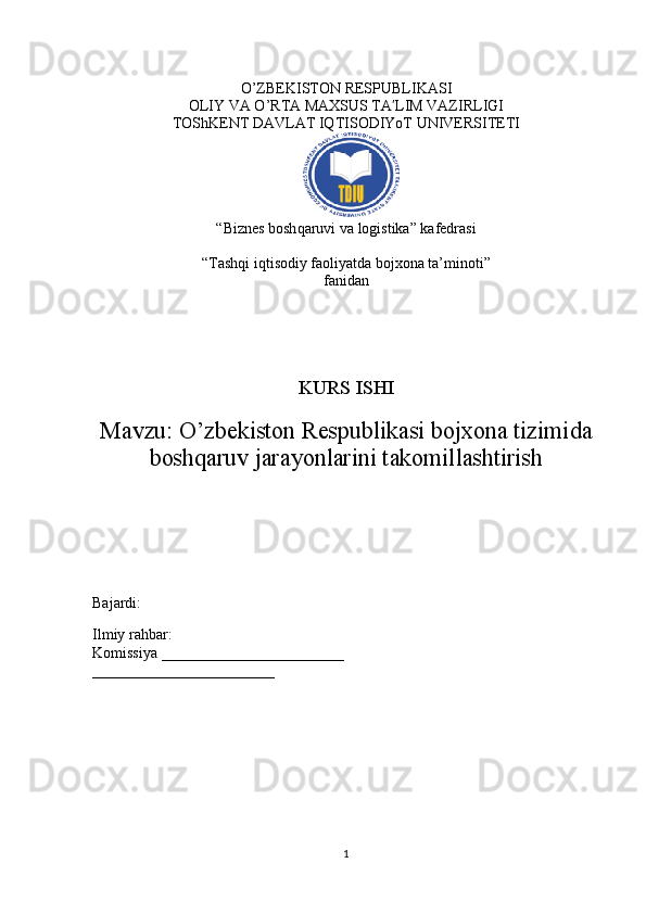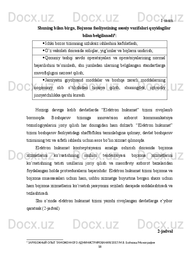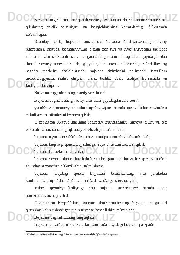 O’zbekiston Respublikasi bojxona tizimida boshqaruv jarayonlarini takomillashtirish