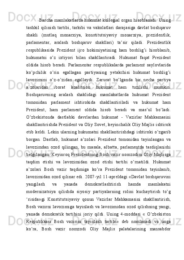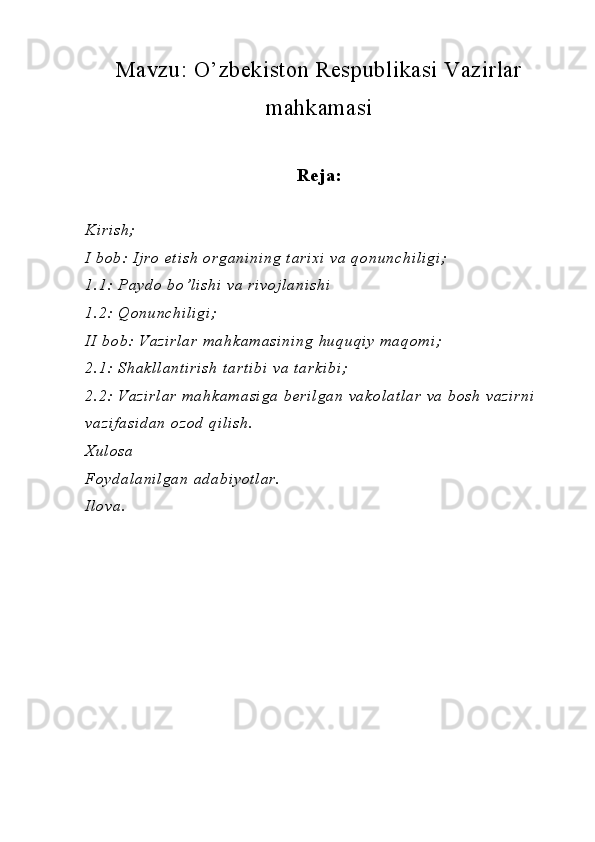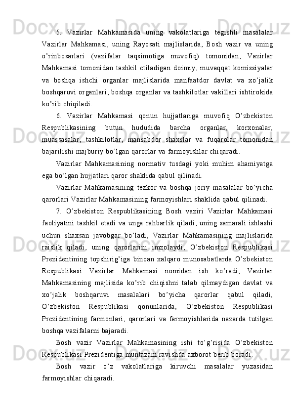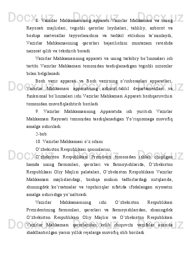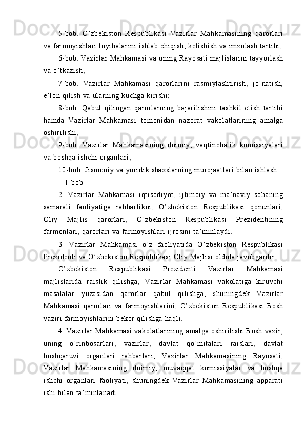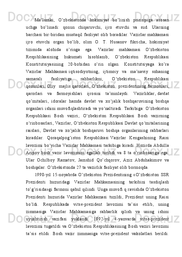 O’zbekiston Respublikasi Vazirlar mahkamasi