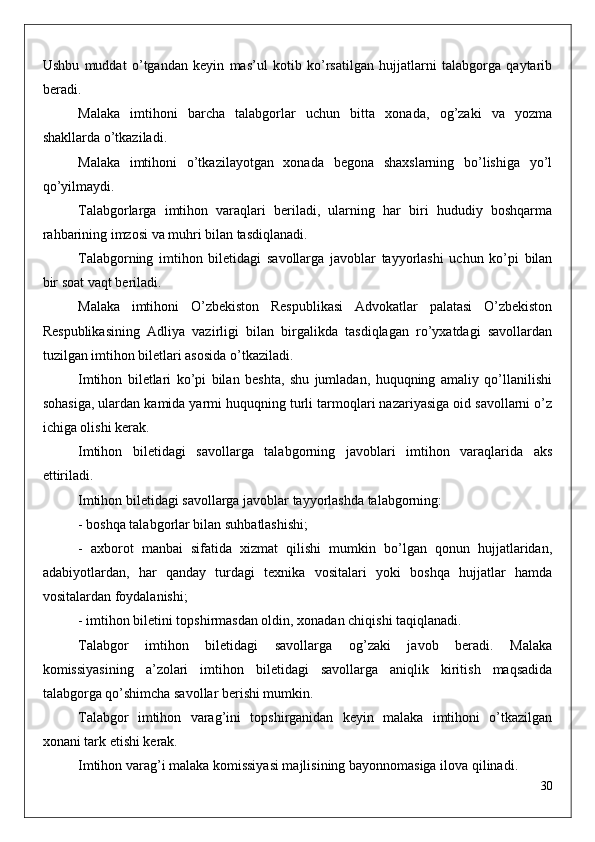 Talabgor   tomonidan   malaka   komissiyasiga   boshqa   hujjatlar   ham   taqdim   etilishi