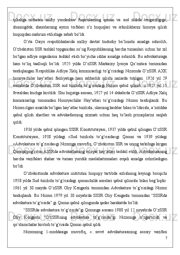 3 qilishga   nisbatan   sinfiy   yondashuv   fuqarolarning   qonun   va   sud   oldida   tengsizligiga,