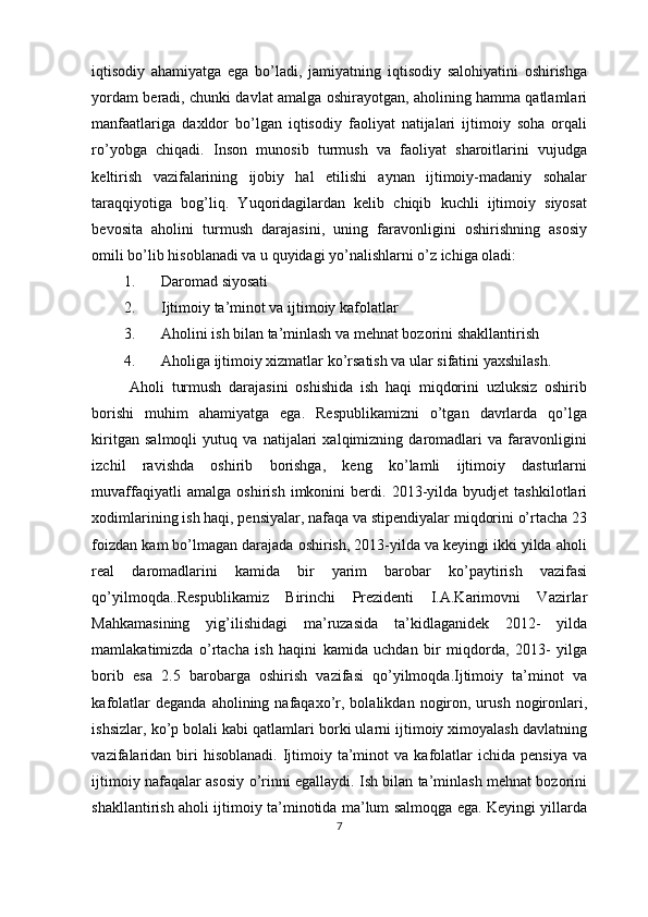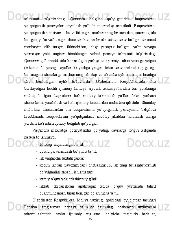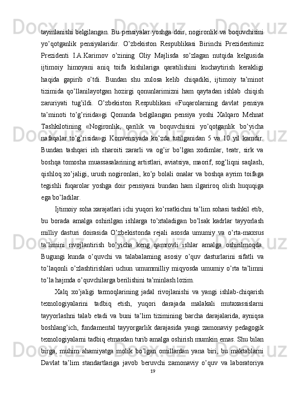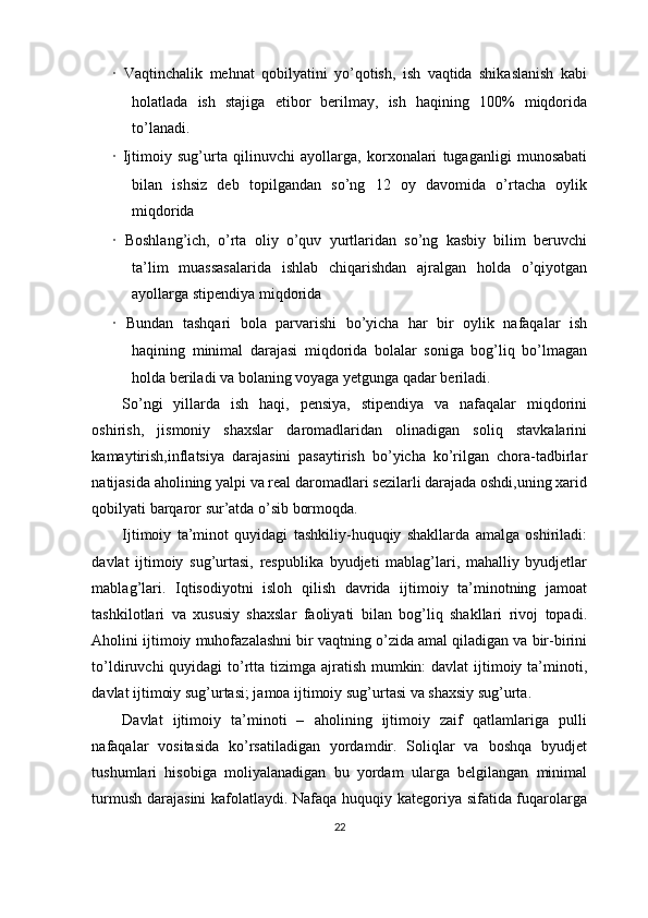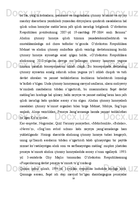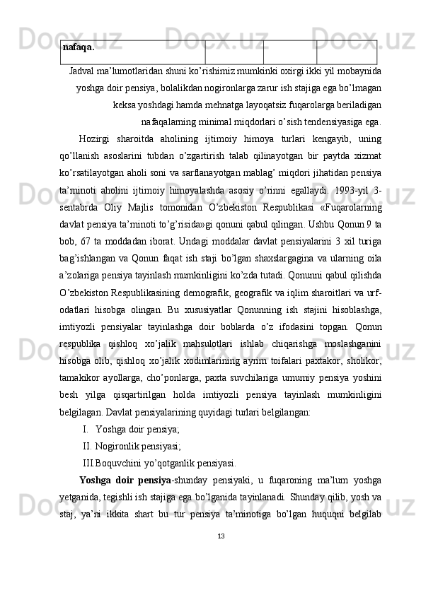 O’zbekiston Respublikasida ijtimoiy ta’minot xarajatlarining tarkibi, tuzilishi, ularni moliyalshtirishda byudjetning o’rni va ahamiyati