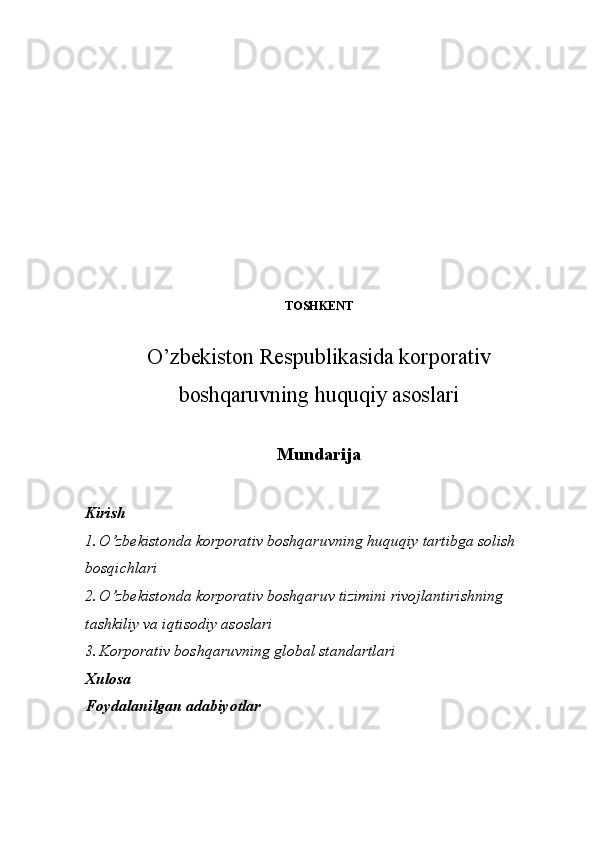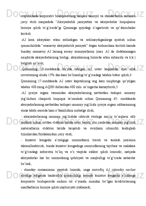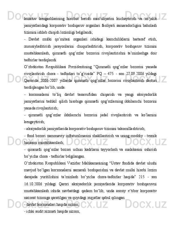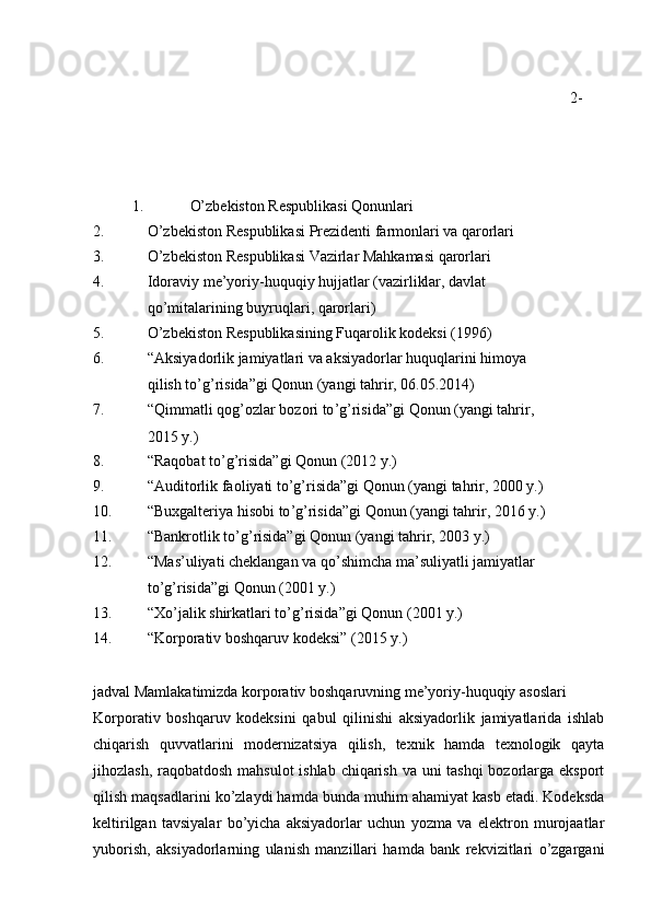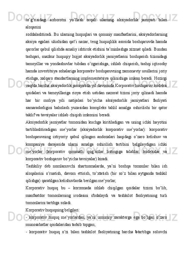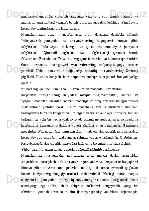 O’zbekiston Respublikasida korporativ boshqaruvning huquqiy asoslari