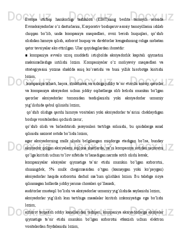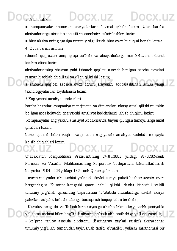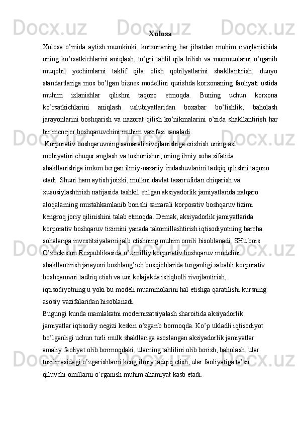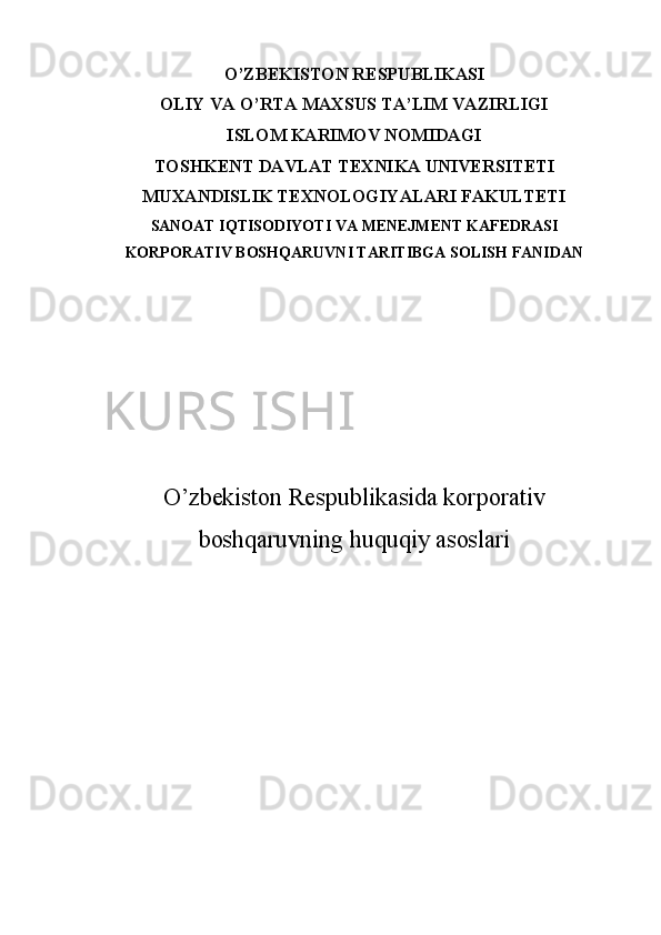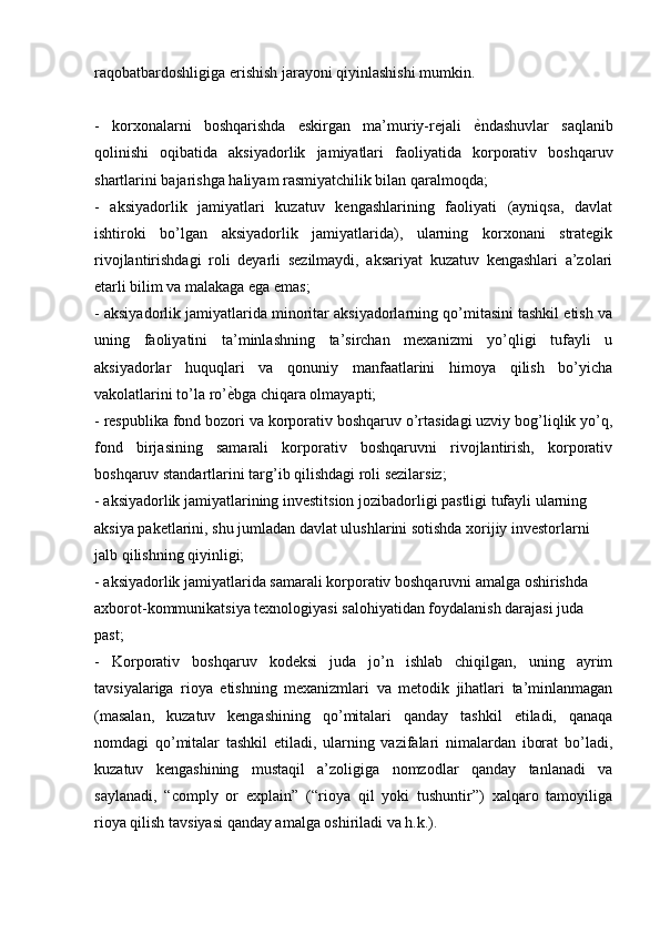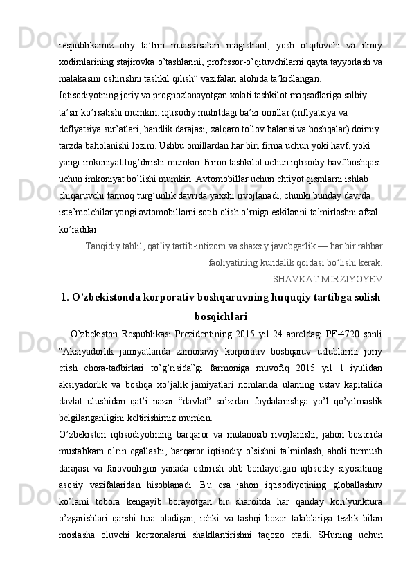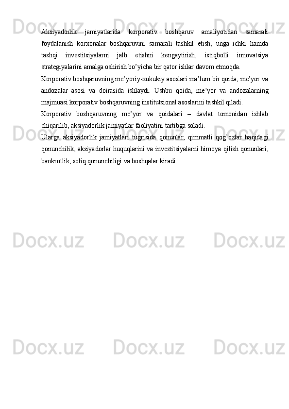 O’zbekiston Respublikasida korporativ boshqaruvning huquqiy asoslari