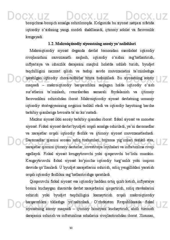 O‘zbekiston Respublikasida makroiqtisodiy barqarorlikni ta’minlash
