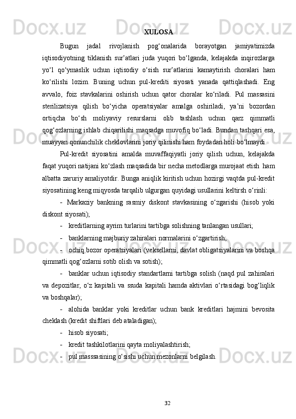 II BOB. O‘ZBEKISTON RESPUBLIKASIDA PUL-KREDIT SIYOSATI