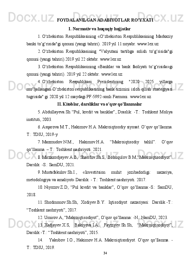 Maxmudov . N.M.,   Hakimov . H.A.  “ Makroiqtisodiy   tahlil”.   O‘quv   qo‘llanma. – T.: Toshkent nashriyoti.