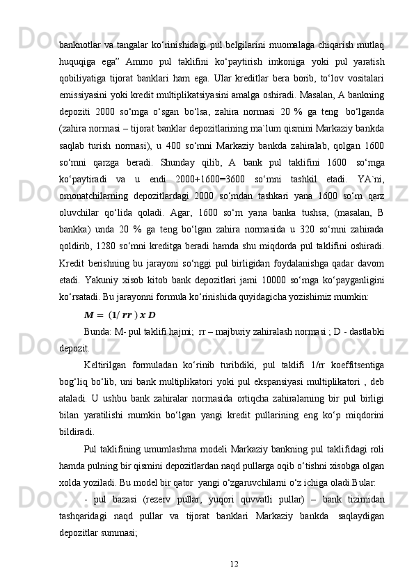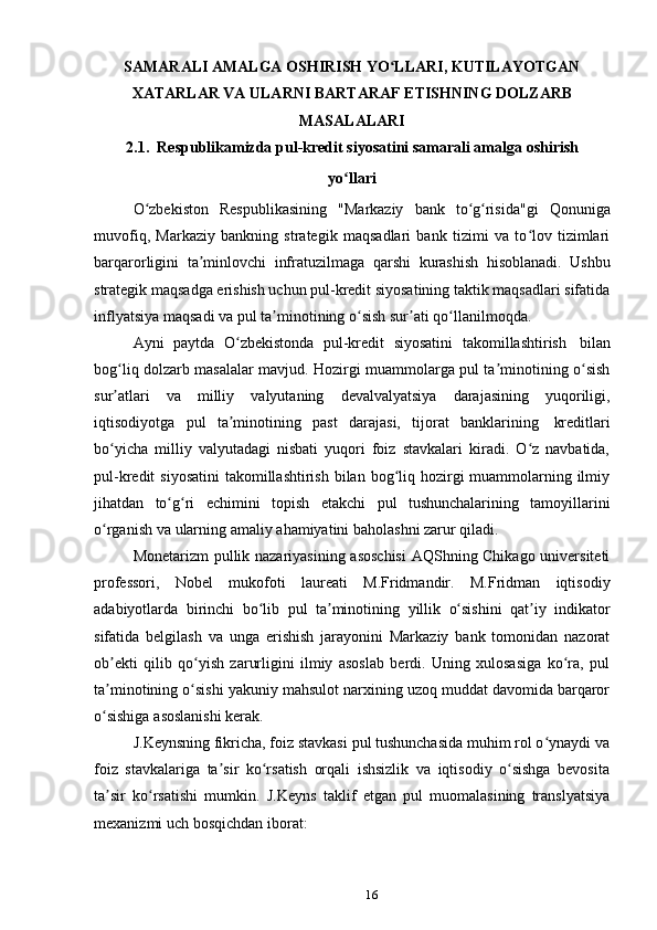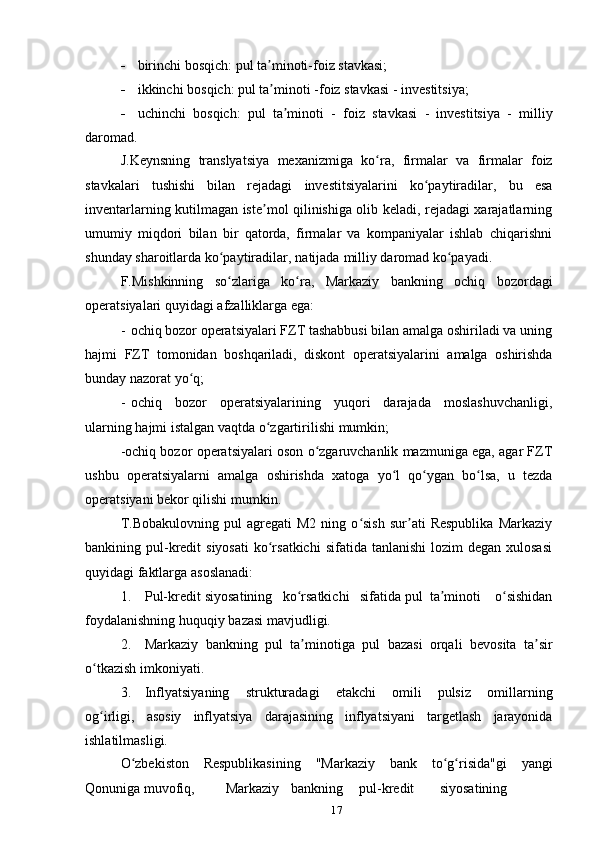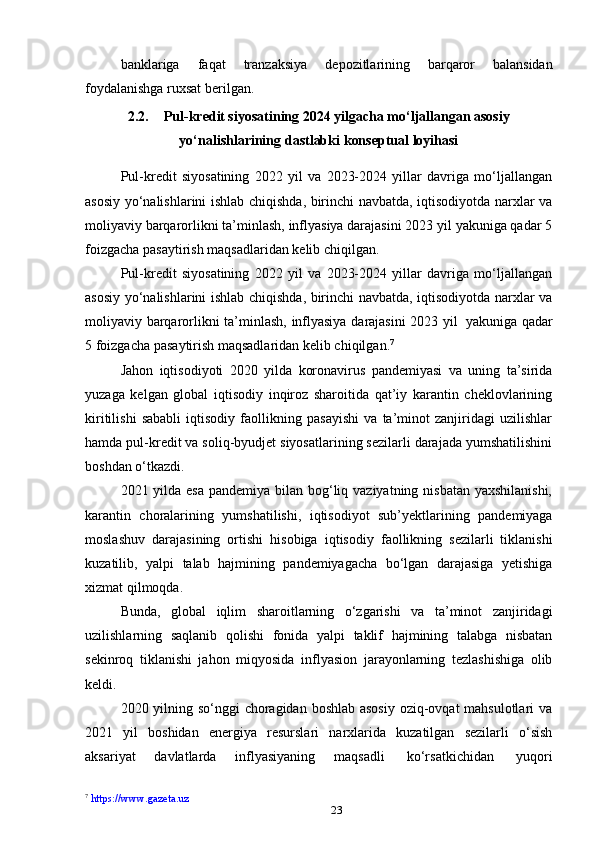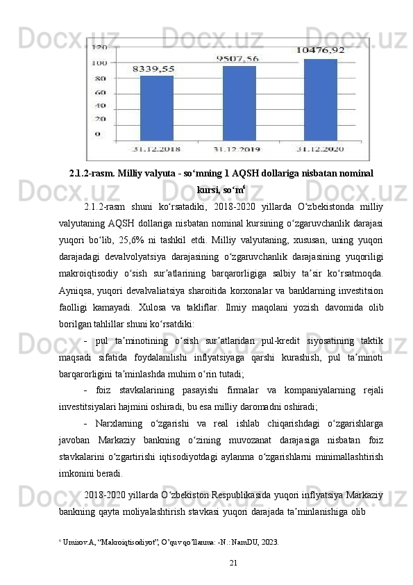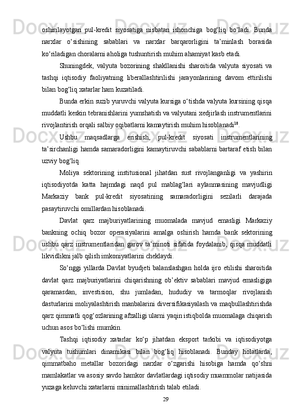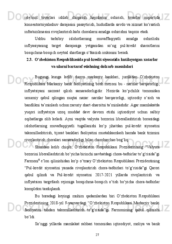 O‘zbekiston respublikasida pul-kredit siyosati samarali amalga oshirish yoʻllari, kutilayotgan xatarlar va ularni bartaraf etish