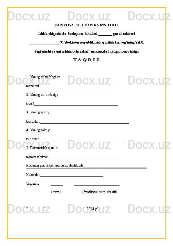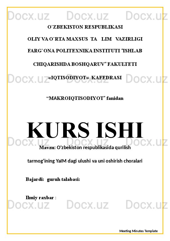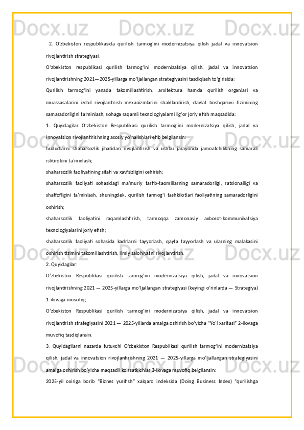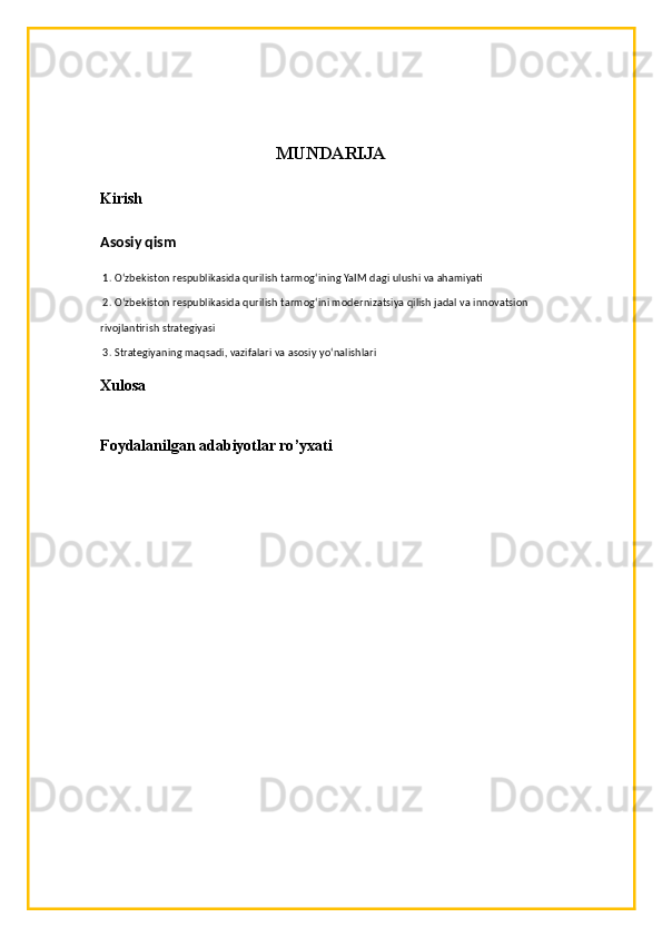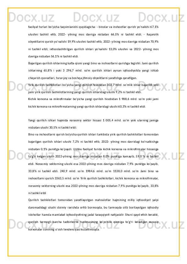 O‘zbekiston Respublikasida qurilish tarmog‘ining YaIM dagi ulushi va uni oshirish choralari