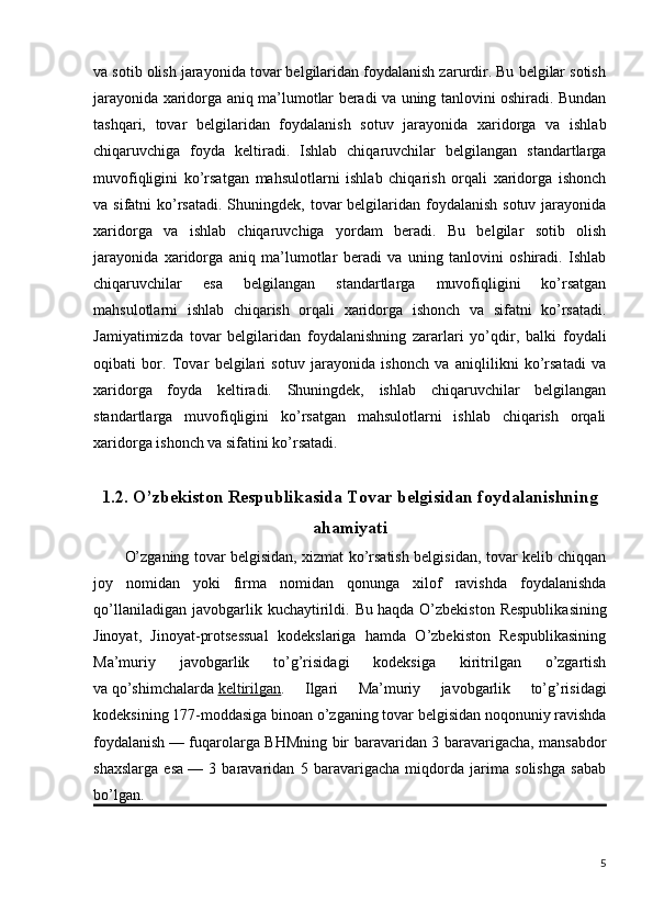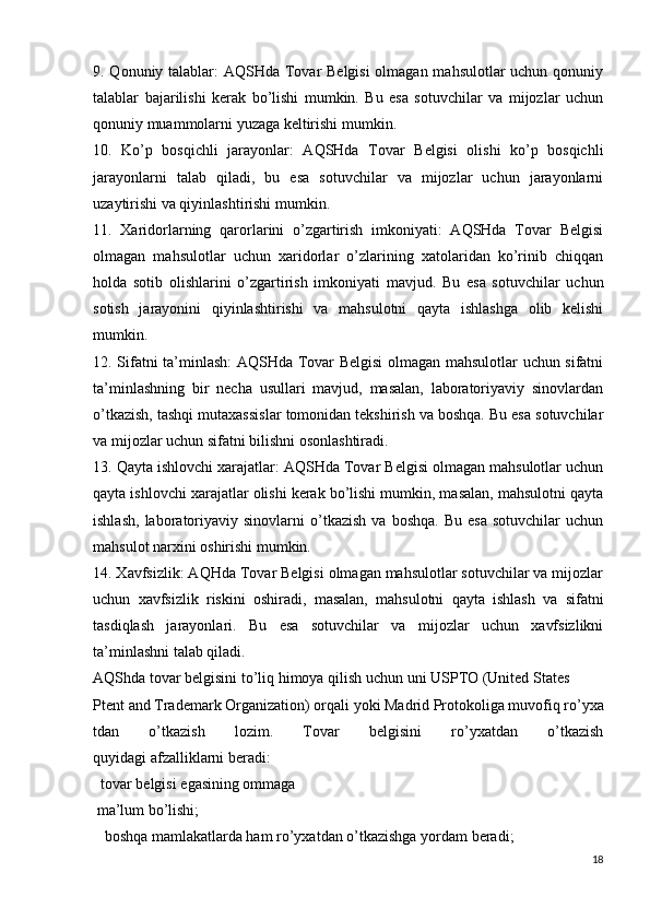 O’zbekiston Respublikasida tovar belgisidan foydalanmaslik oqibatlari va AQSH tajribasi
