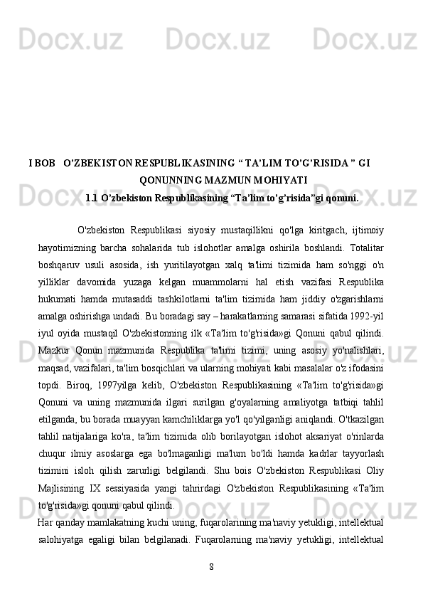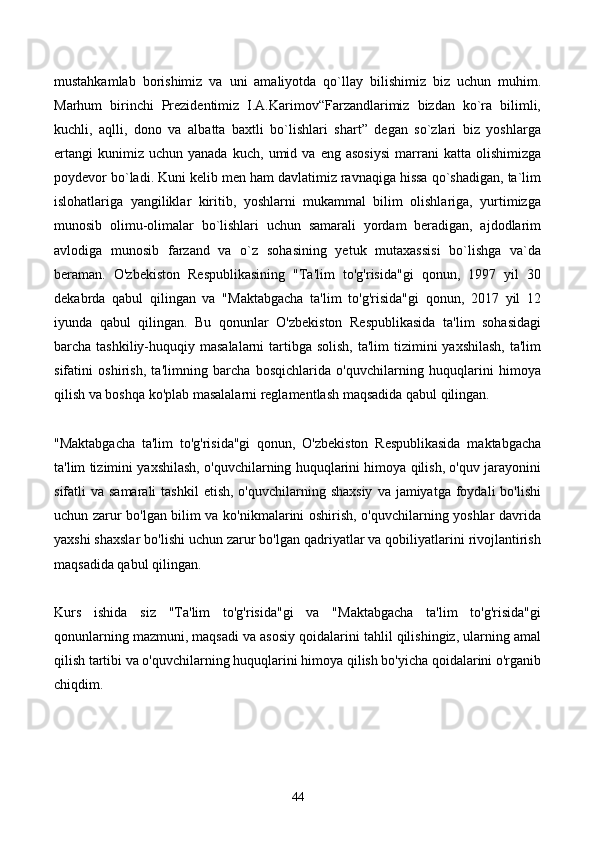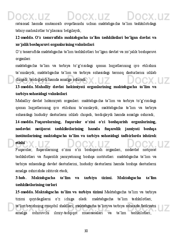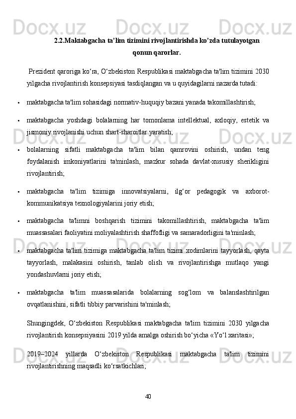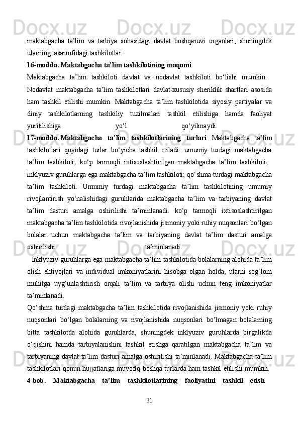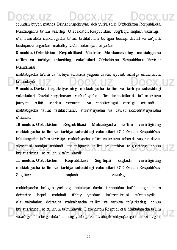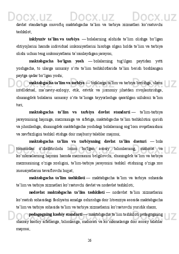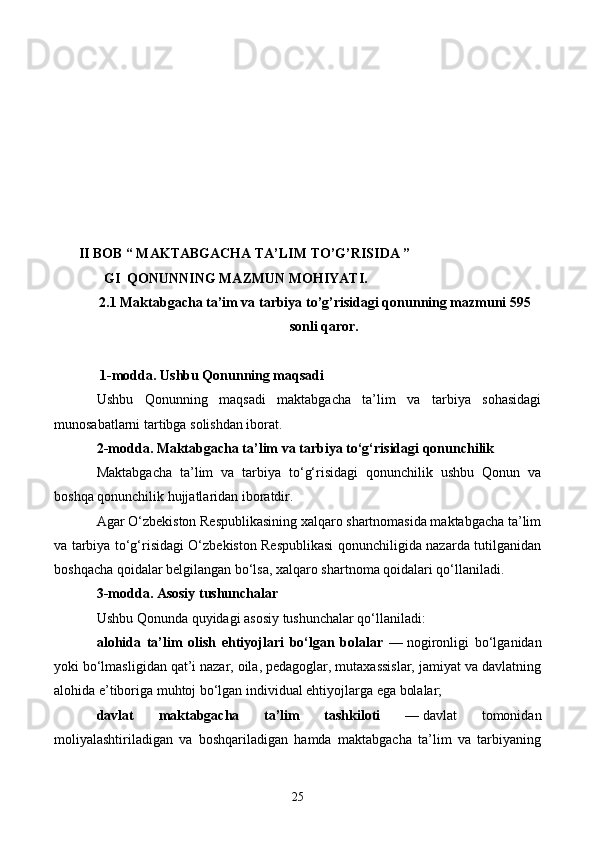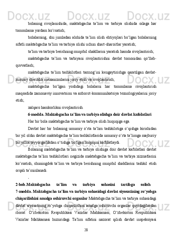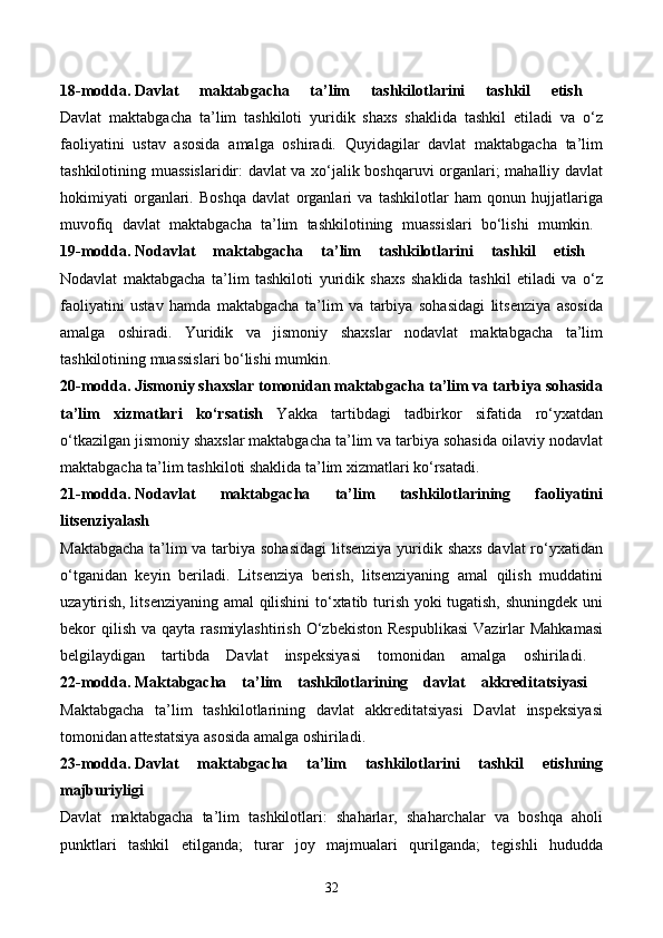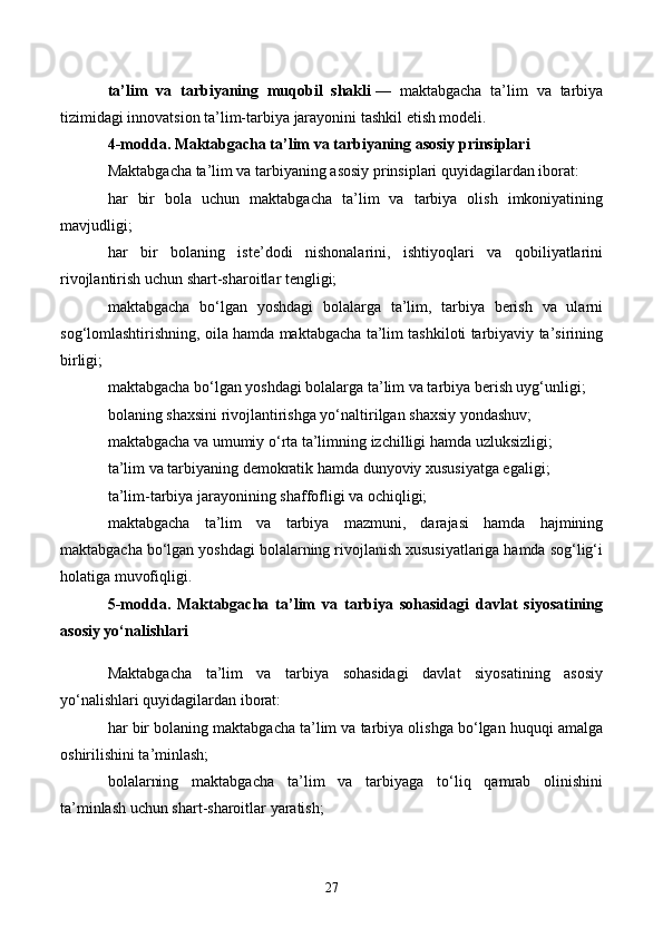 O‘zbekiston Respublikasining “Maktabgacha ta’lim va tarbiya to’g’risidagi qonuni