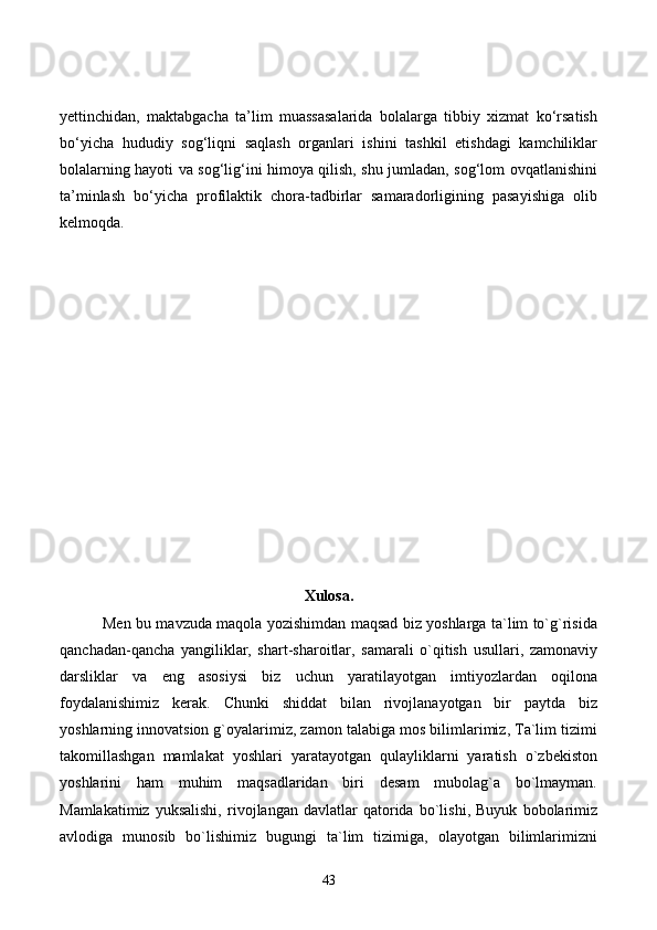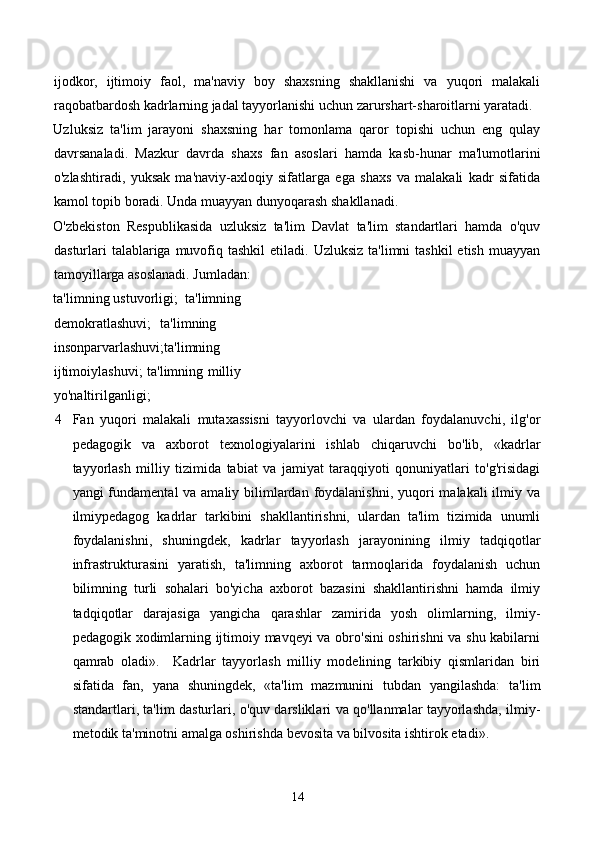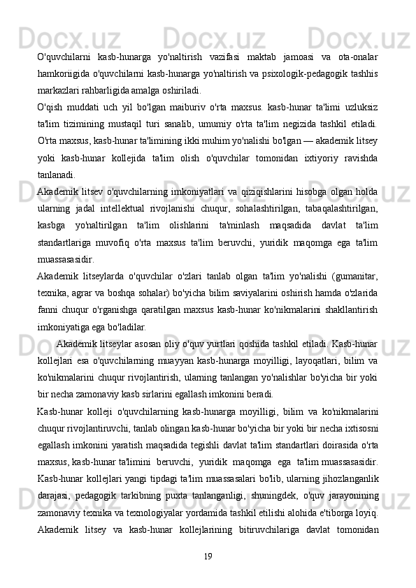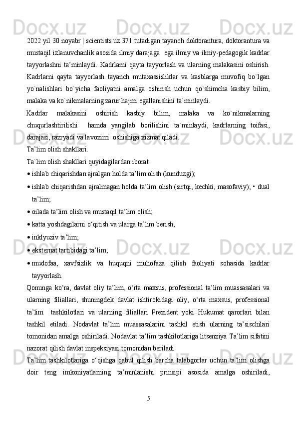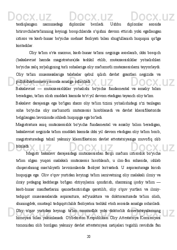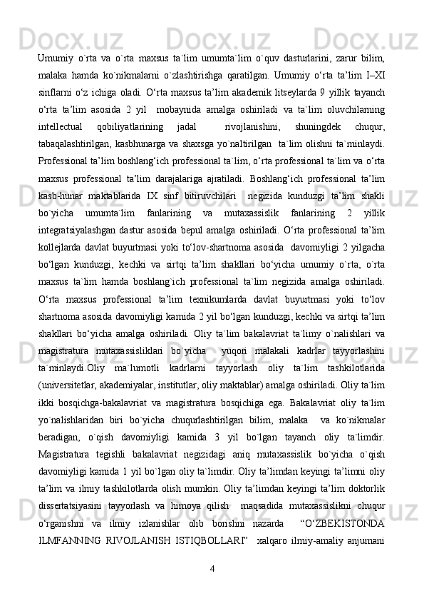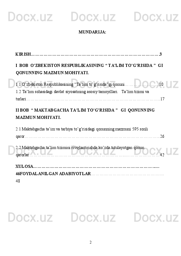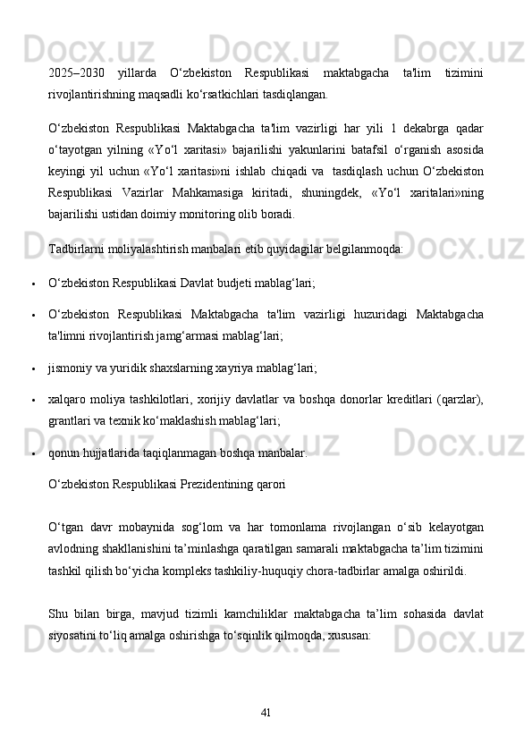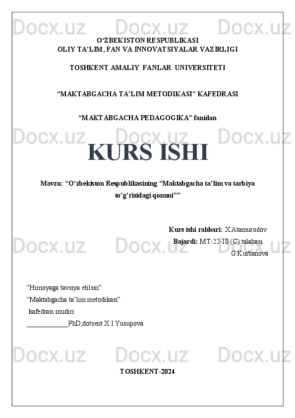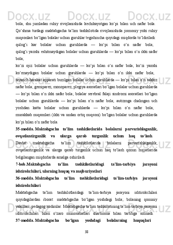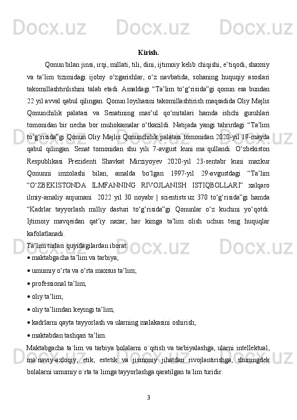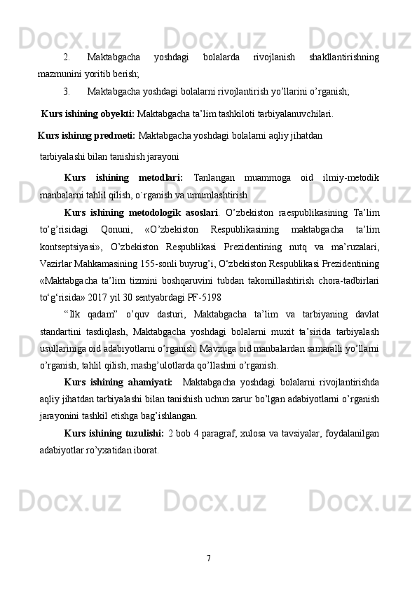 O‘zbekiston Respublikasining “Maktabgacha ta’lim va tarbiya to’g’risidagi qonuni