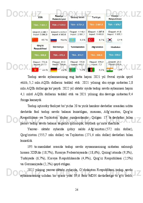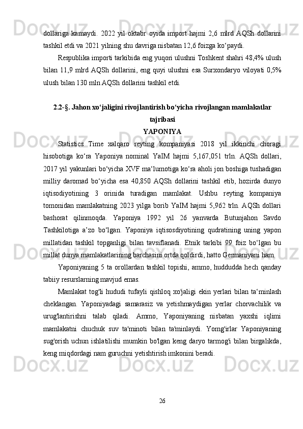 | 2.2-§. Tashqi savdoni rivojlantirish bo‘yicha rivojlangan mamlakatlar tajribasi……………………………………………………………………….. | 25 |