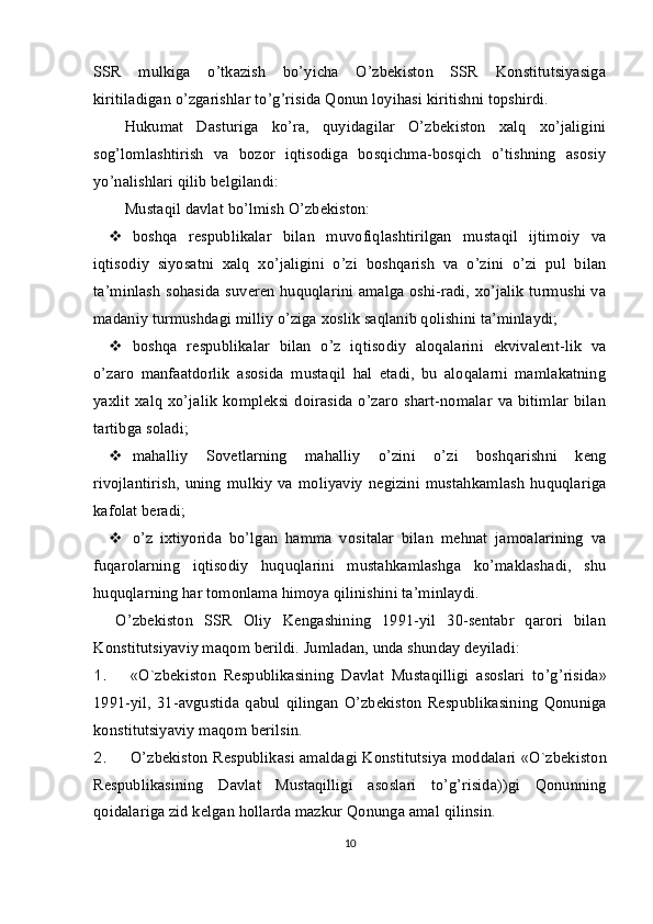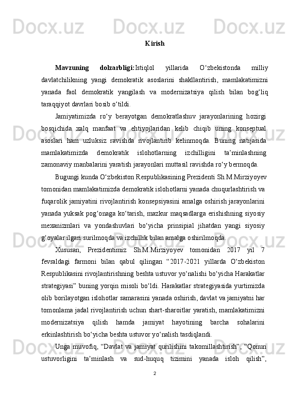Oʻzbekiston siyosiy tizimidagi oʻzgarishlar.