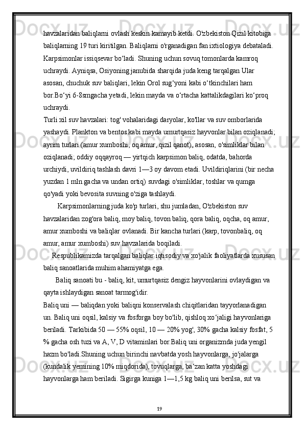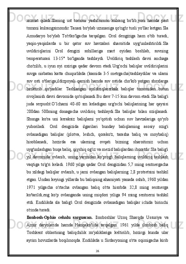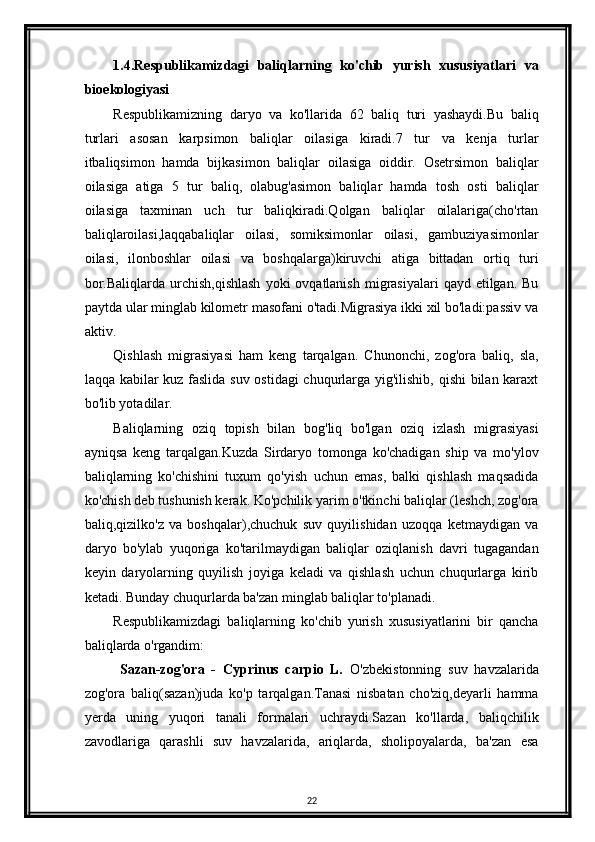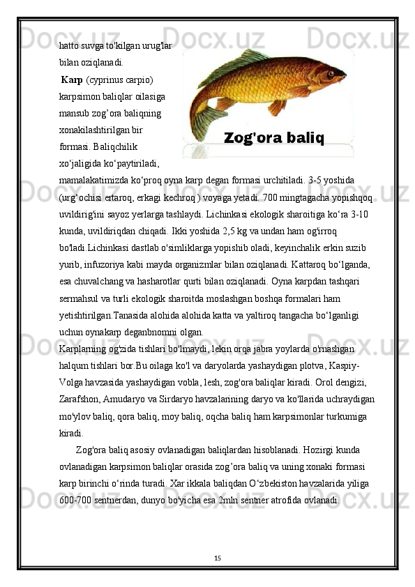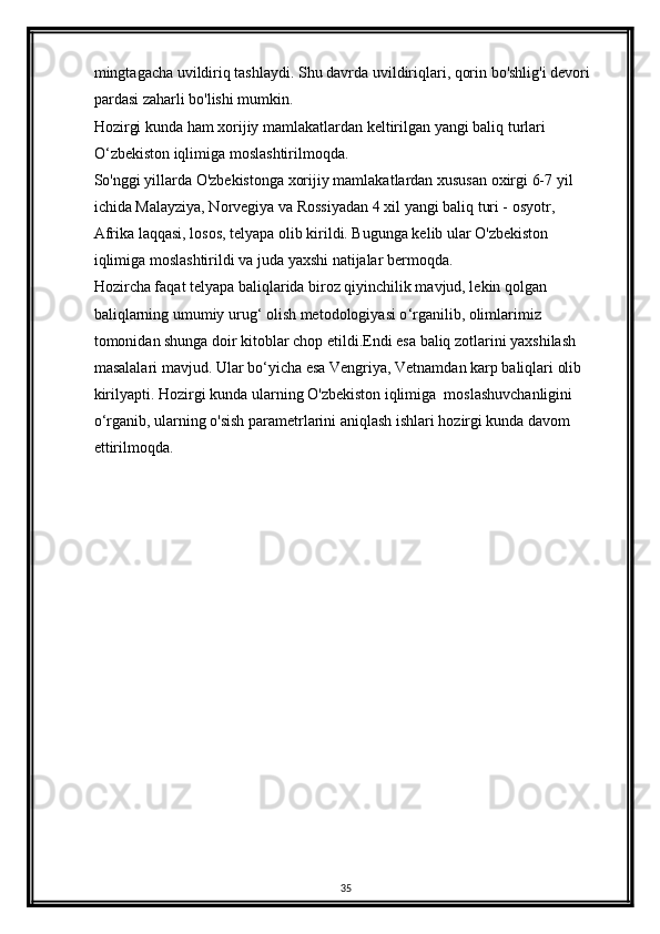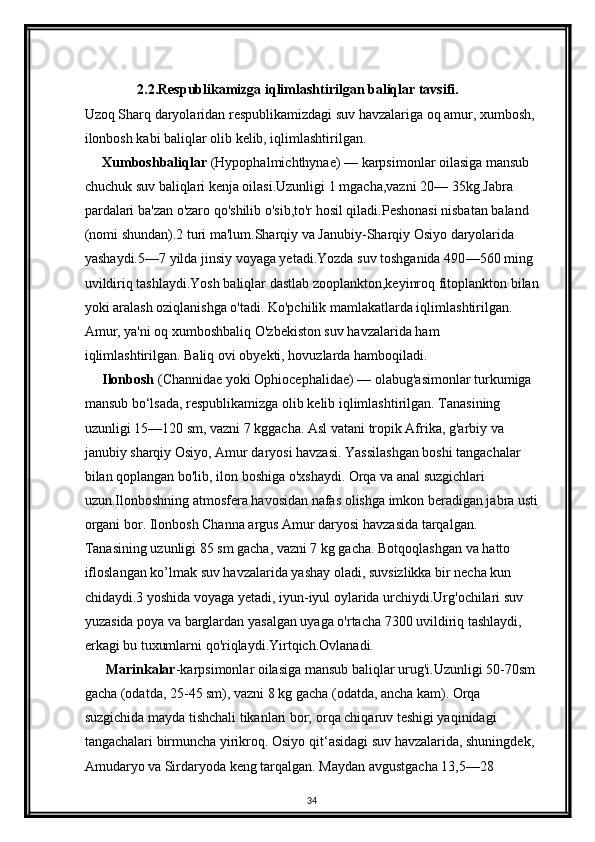 Oʻzbekiston suv havzalarida iqlimlashtirilgan baliqlarning turlari va iqtisodiy ahamiyati