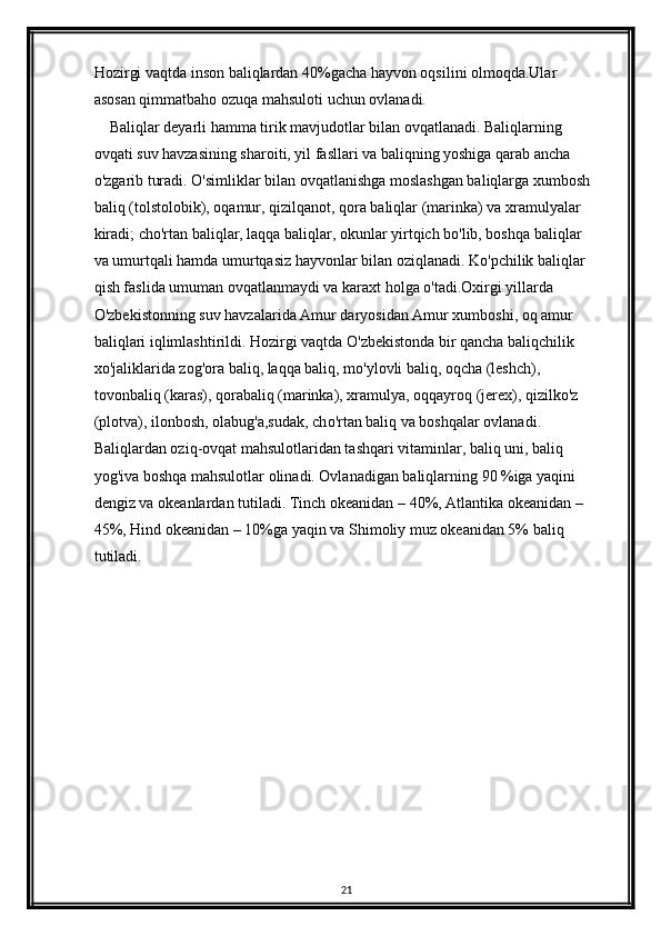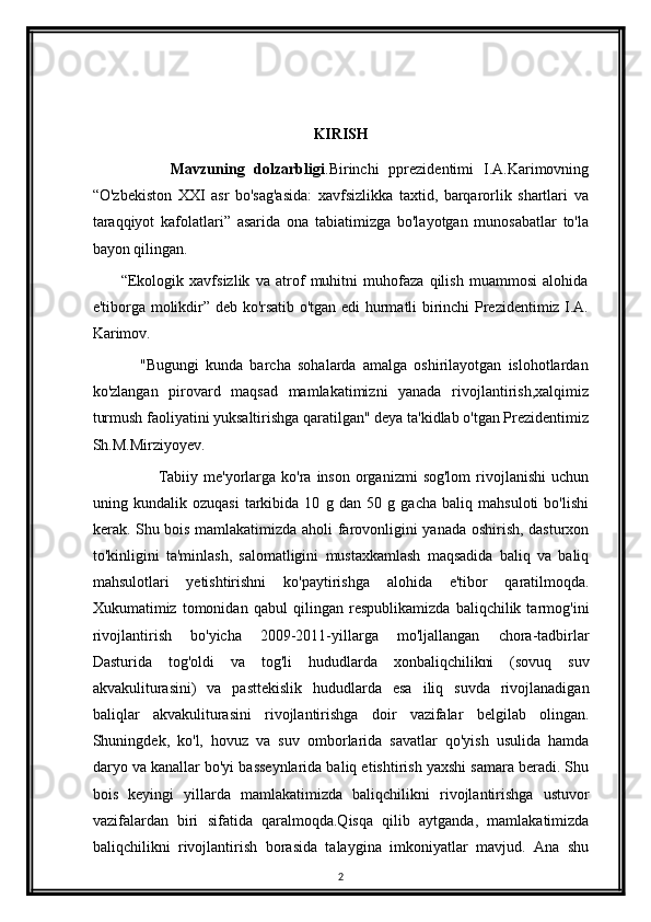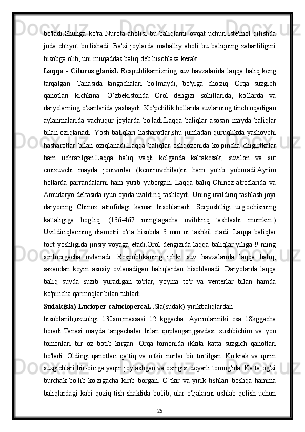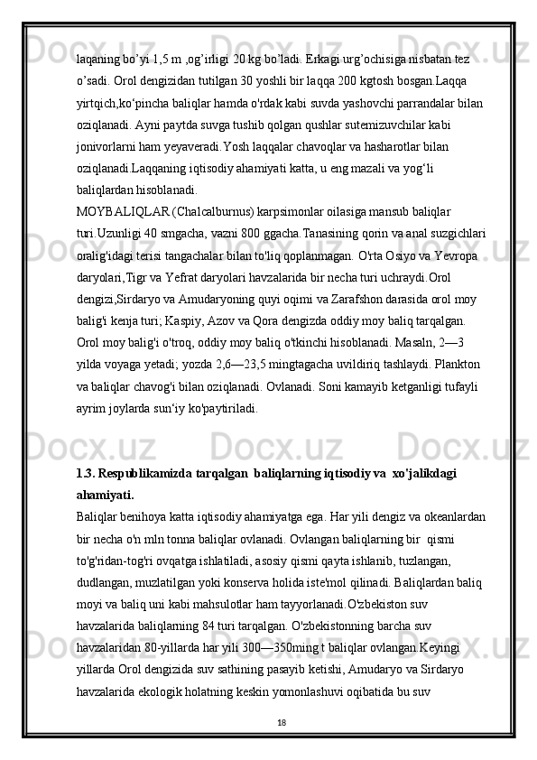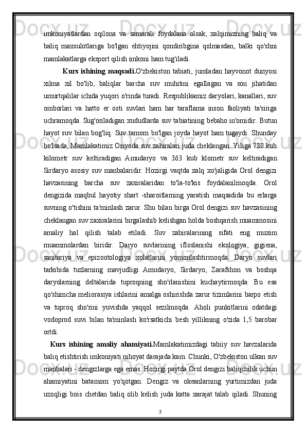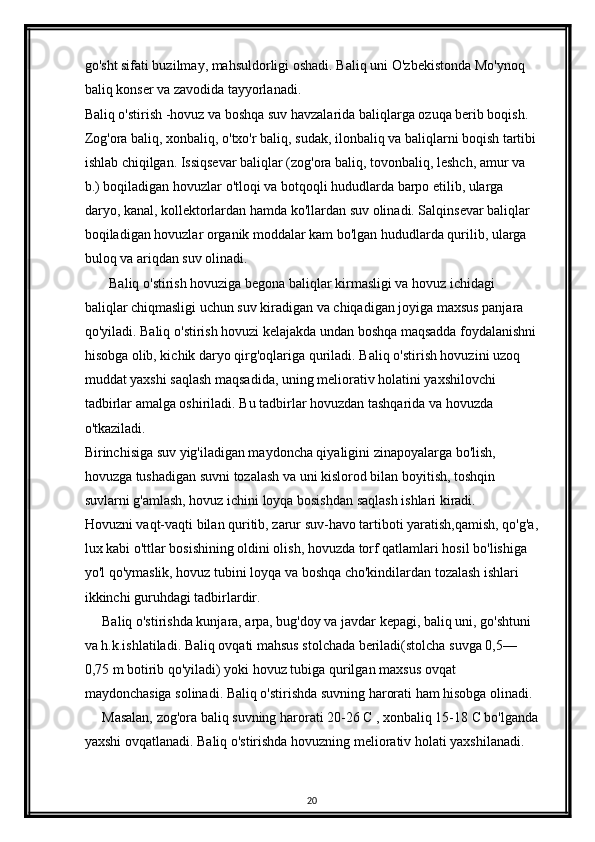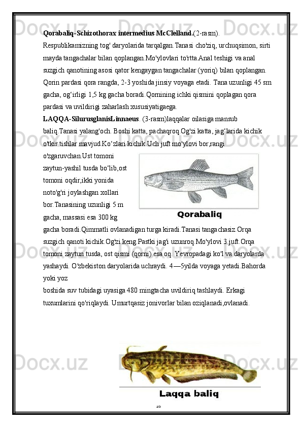 Oʻzbekiston suv havzalarida iqlimlashtirilgan baliqlarning turlari va iqtisodiy ahamiyati