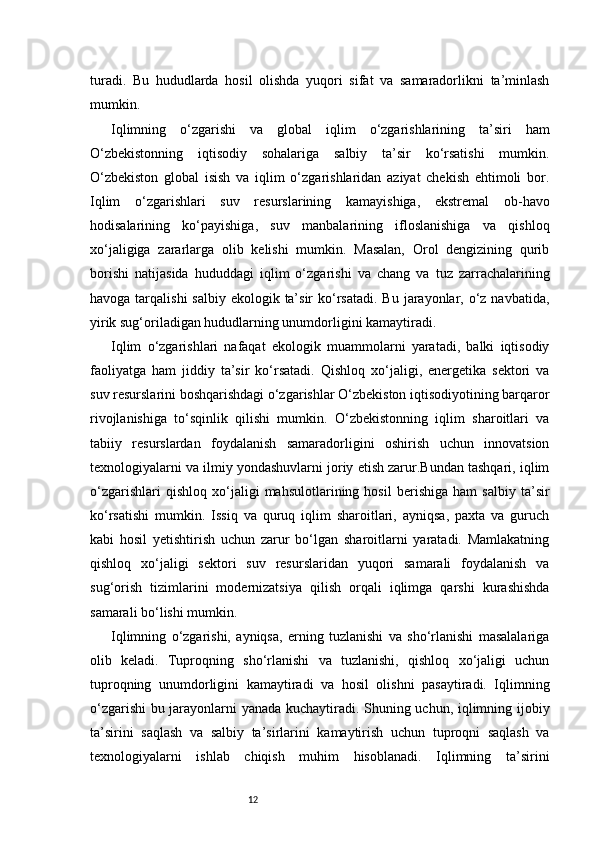 O‘zbekiston tabiiy sharoiti va resurslarining xo‘jalikdagi ahamiyati kurs ishi