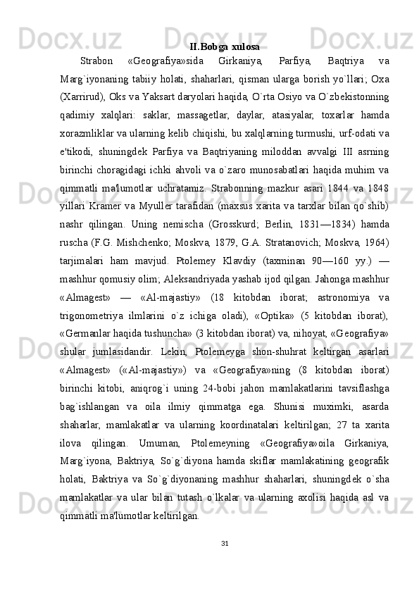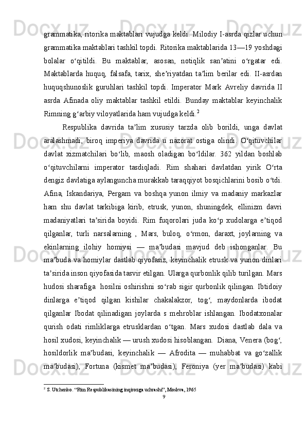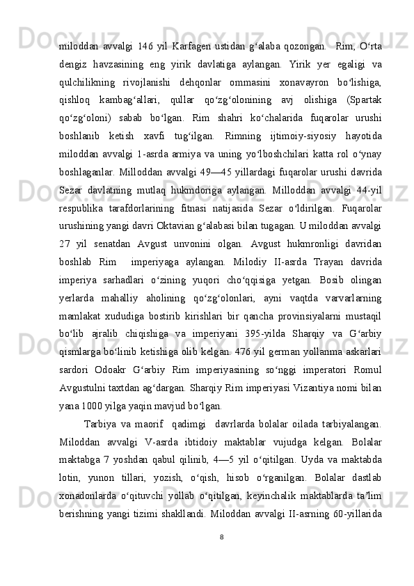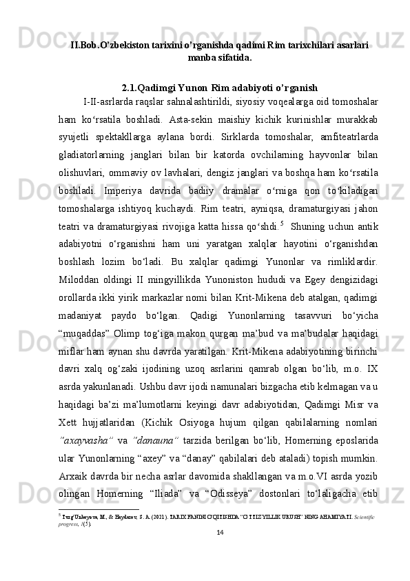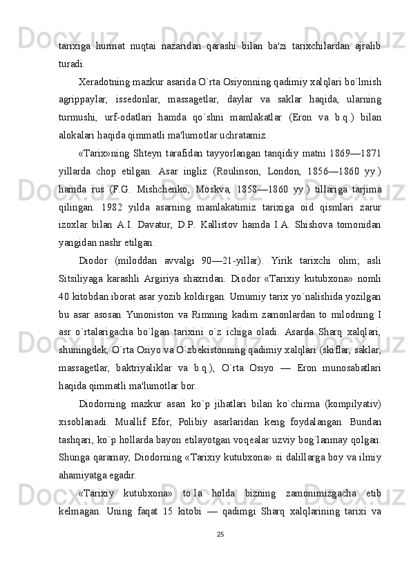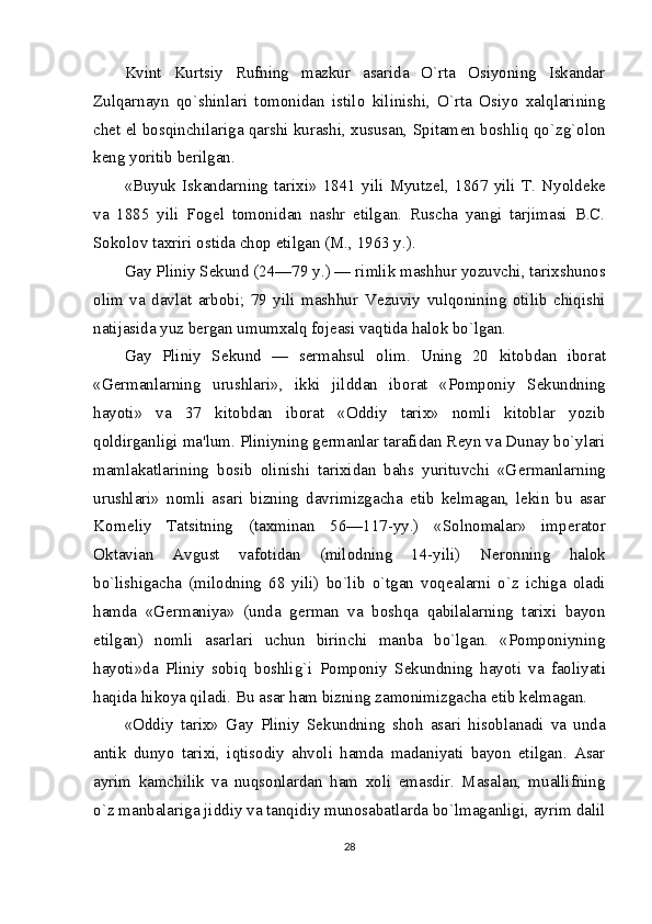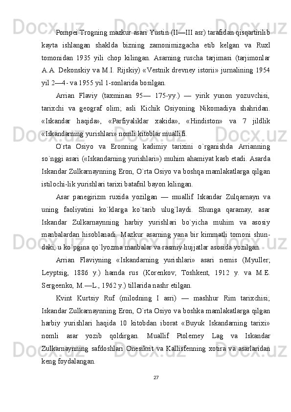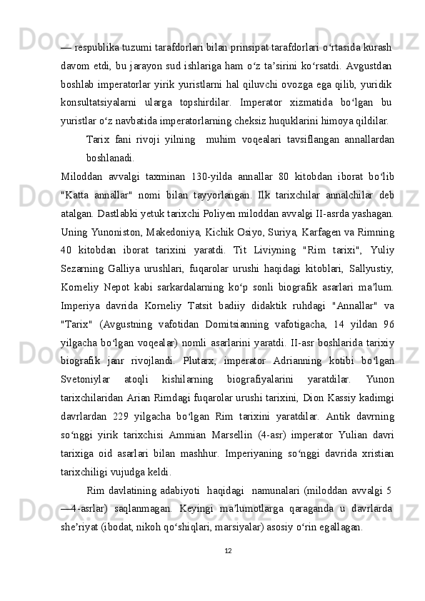 O’zbekiston tаriхini o’rganishda qadimi Rim tаriхchilari asarlari manba sifatida.