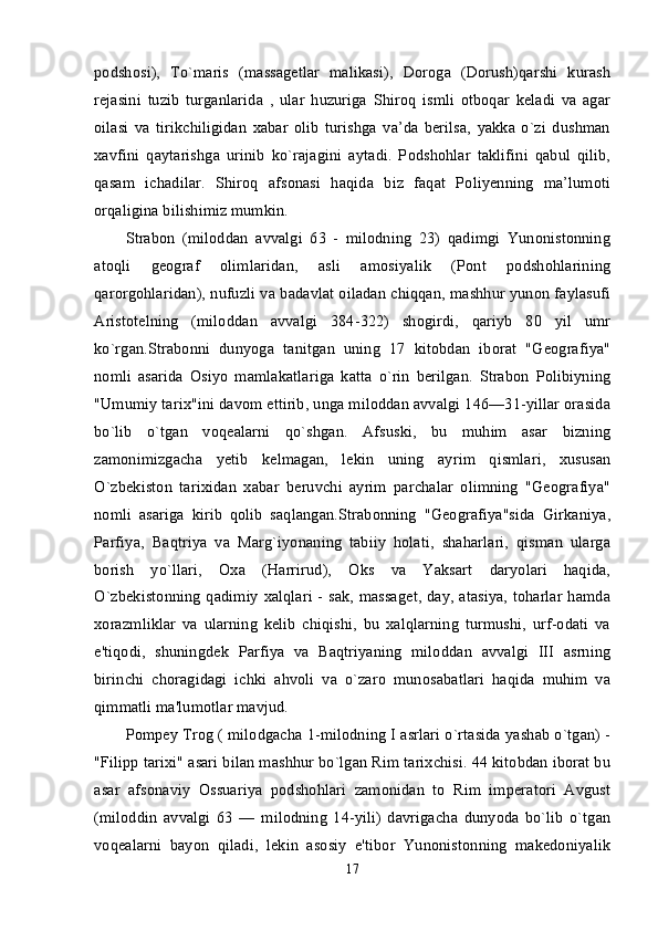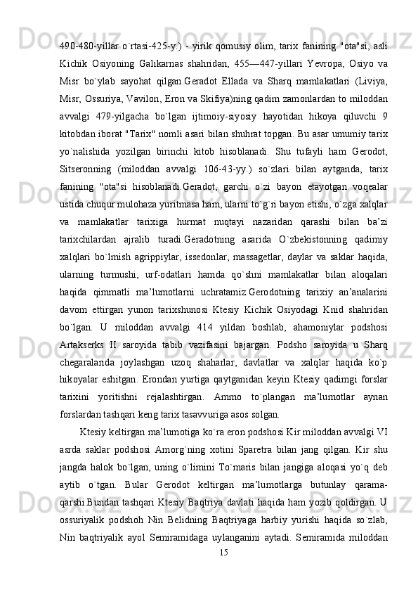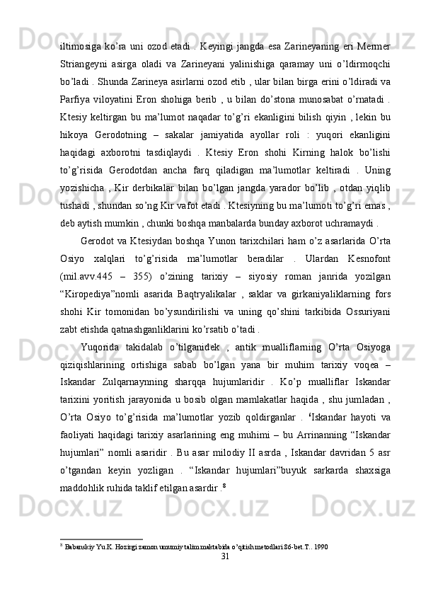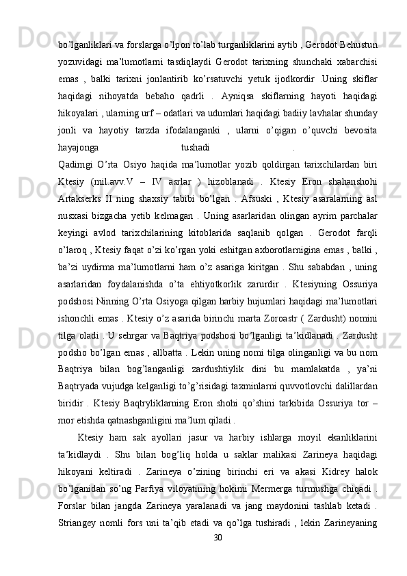 O’zbekiston tаriхini o’rganishda qadimi yonon tаriхchilari asarlari manba sifatida.