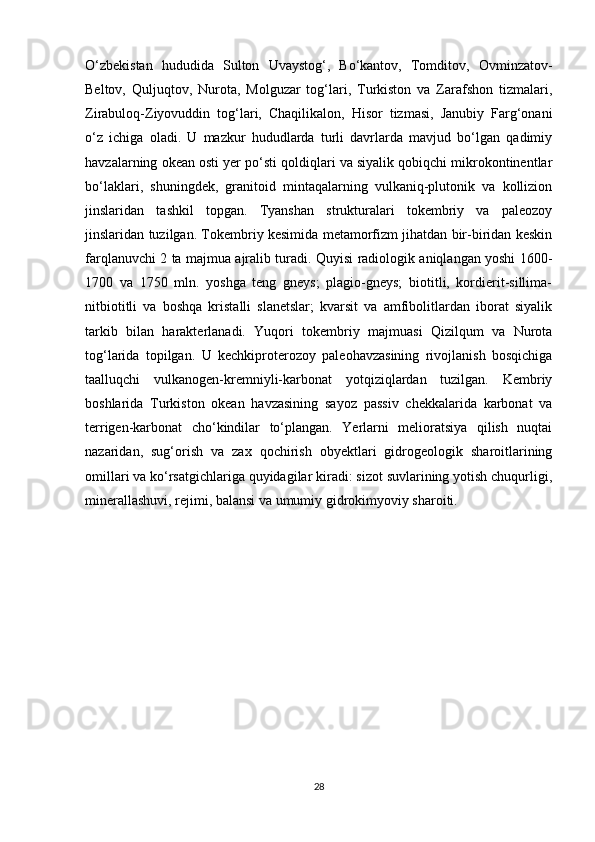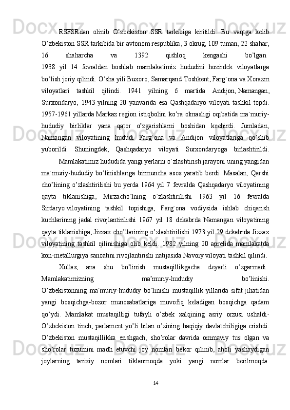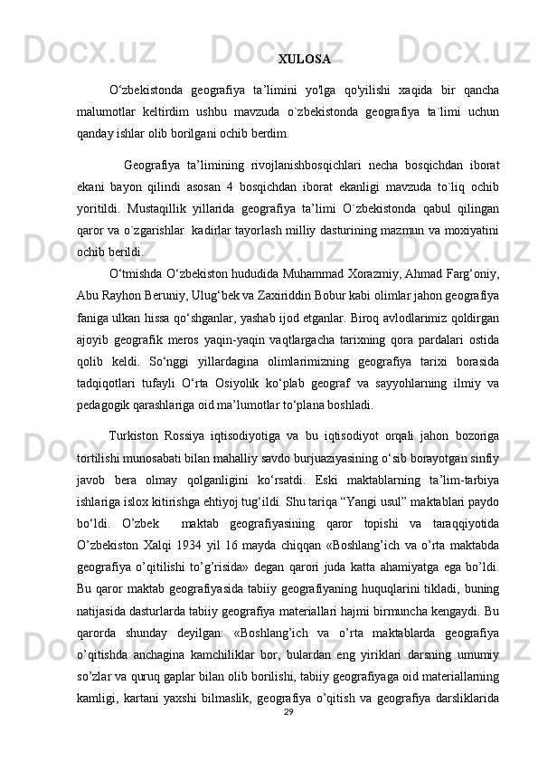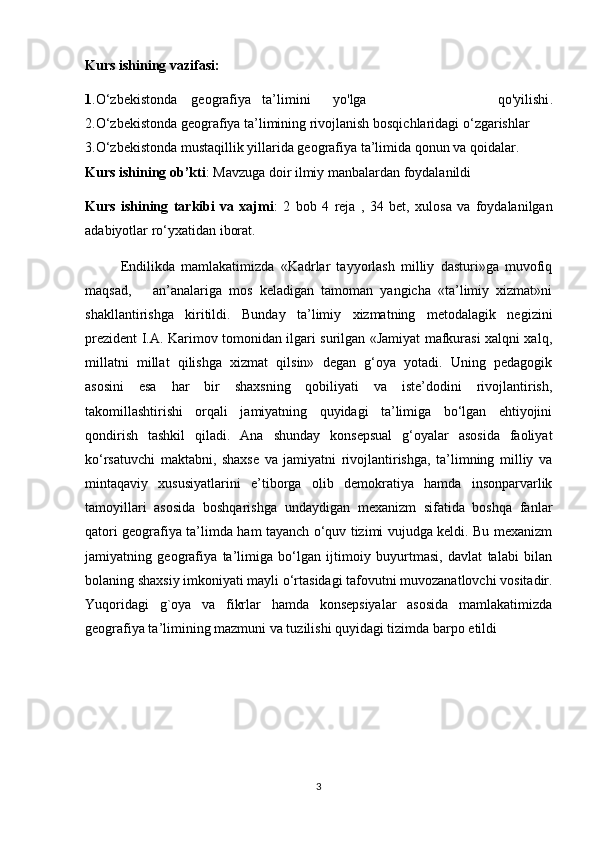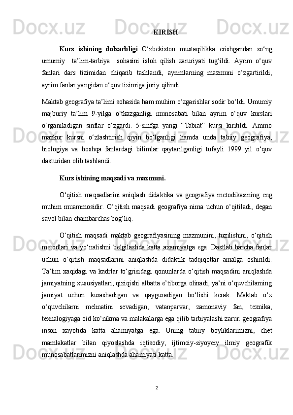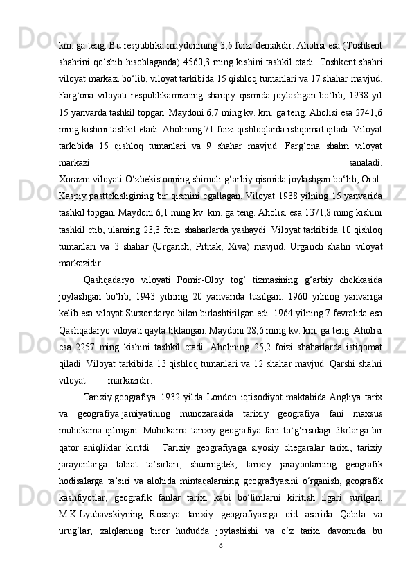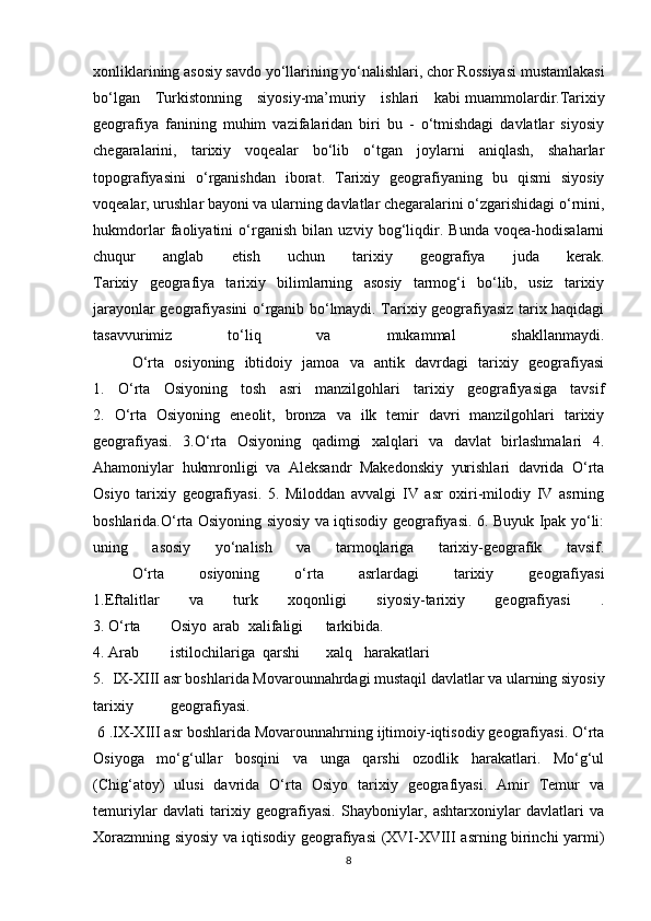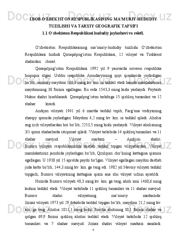 O’zbekiston tarixining geografik shakli, o’rni va tabiiy iqlim sharoiti
