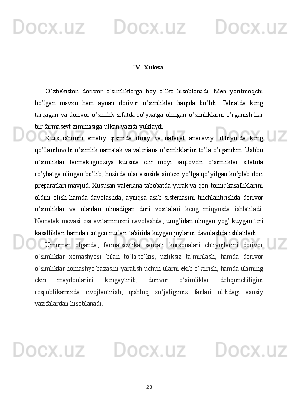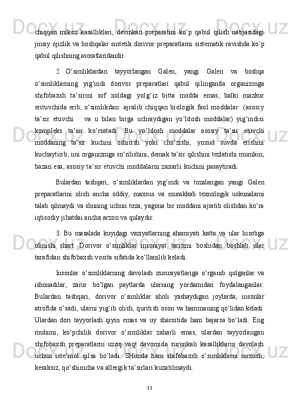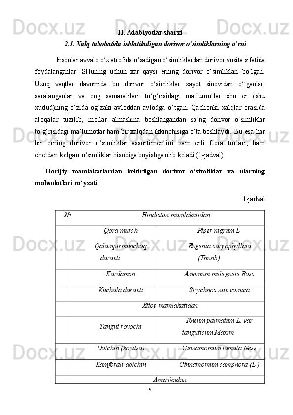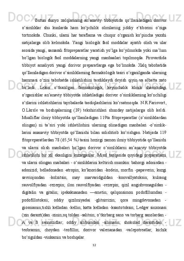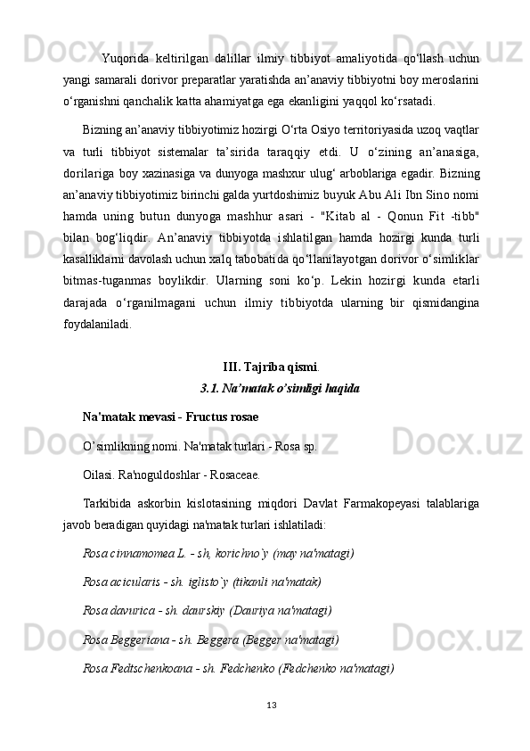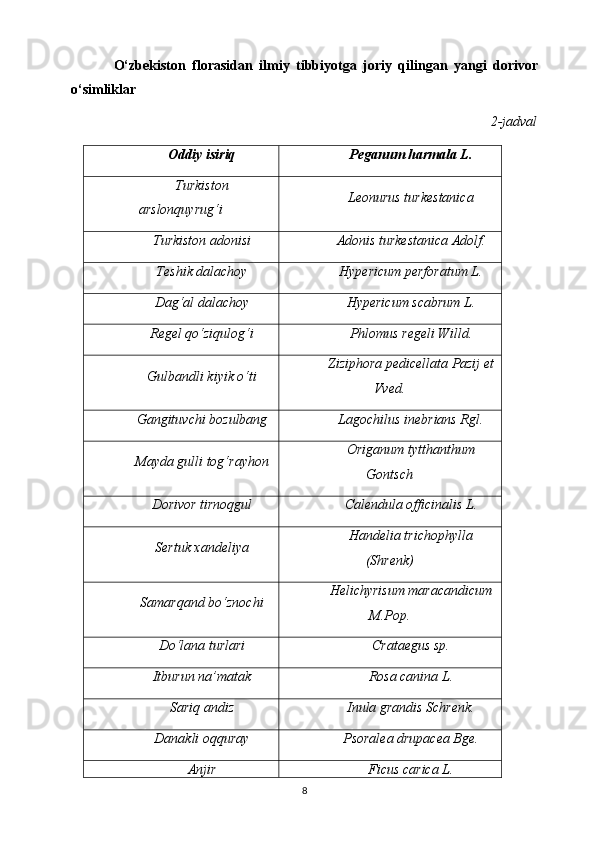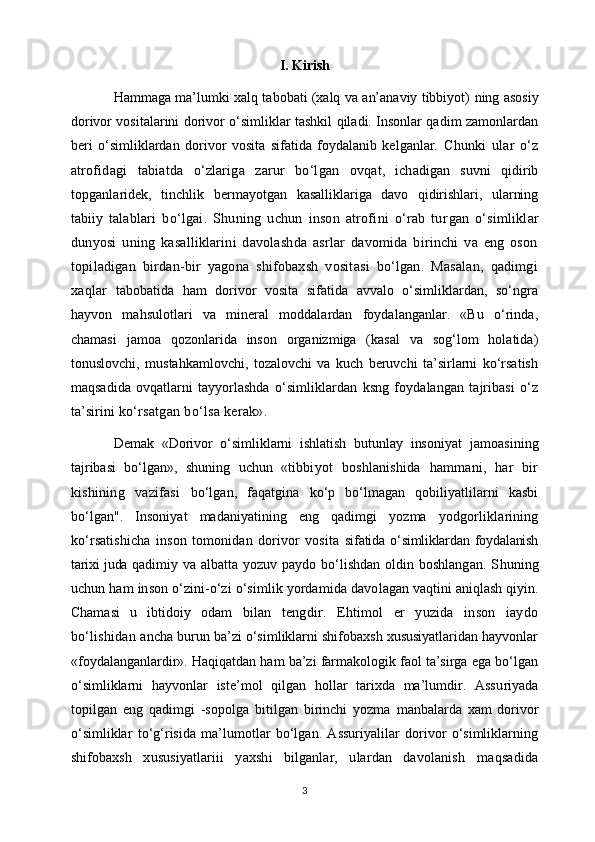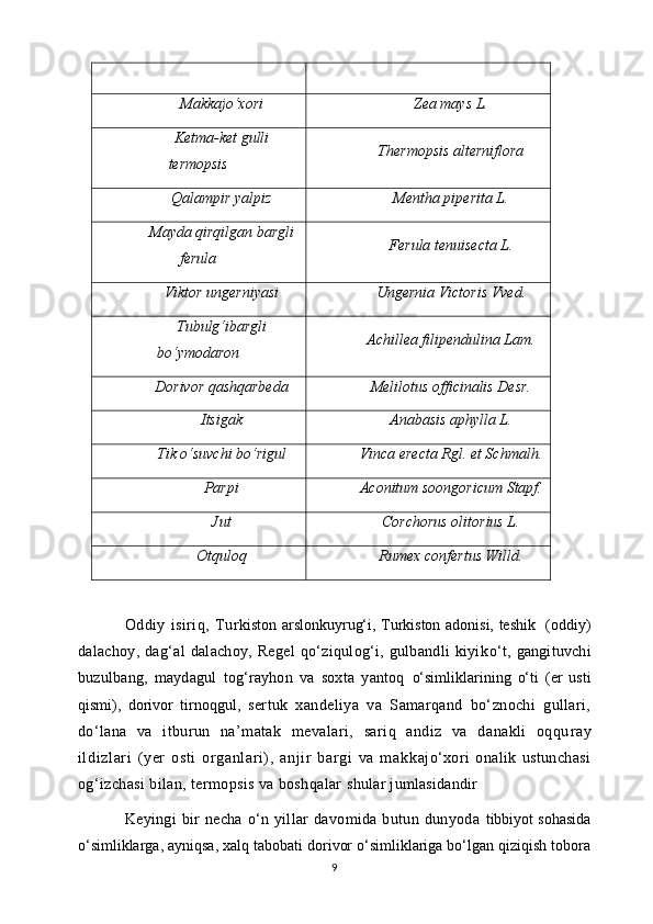 O’zbekiston xalq tabobatining dorivor o’simliklari va ularning ilmiy tibbiyotdagi ahamiyati
