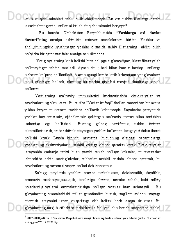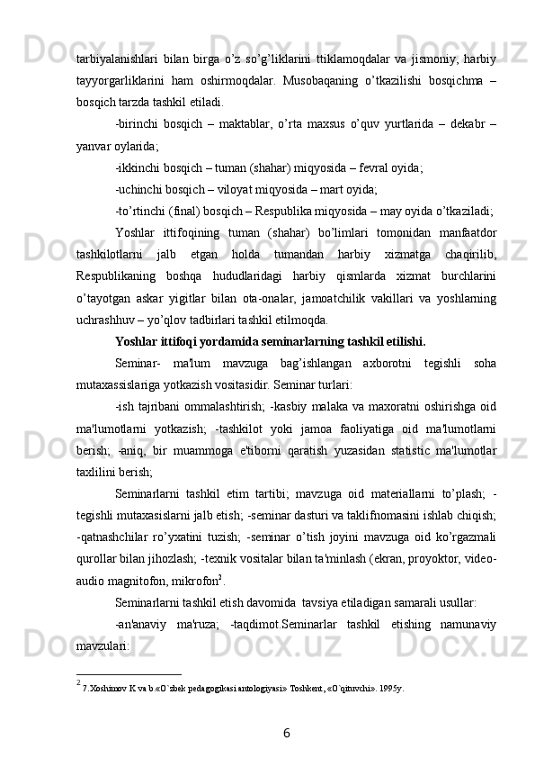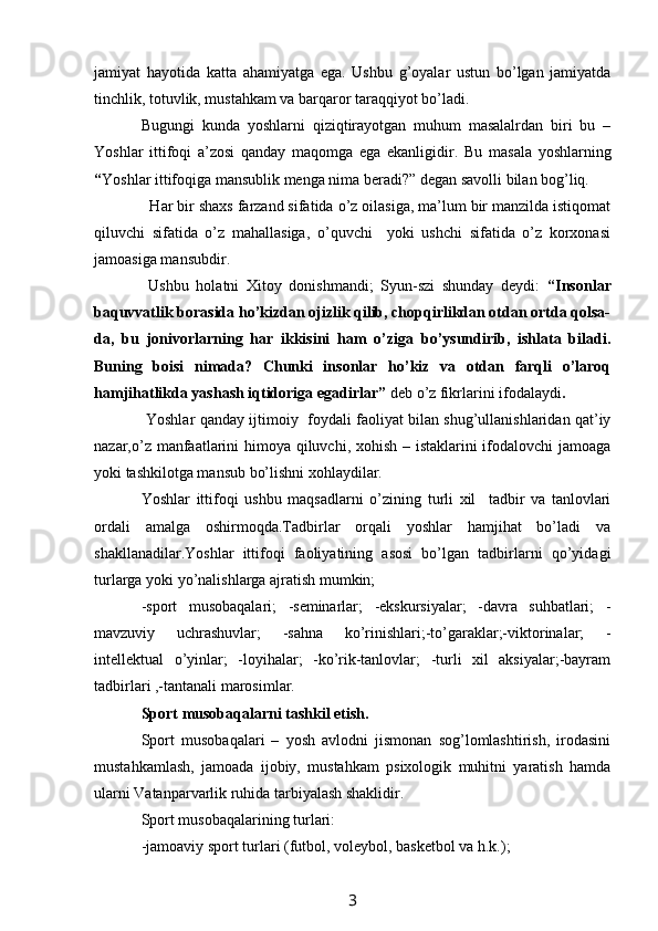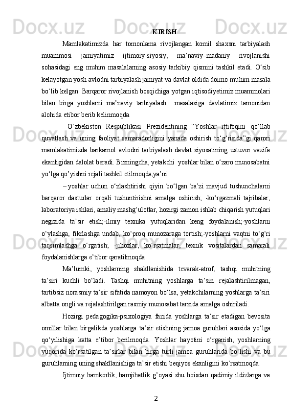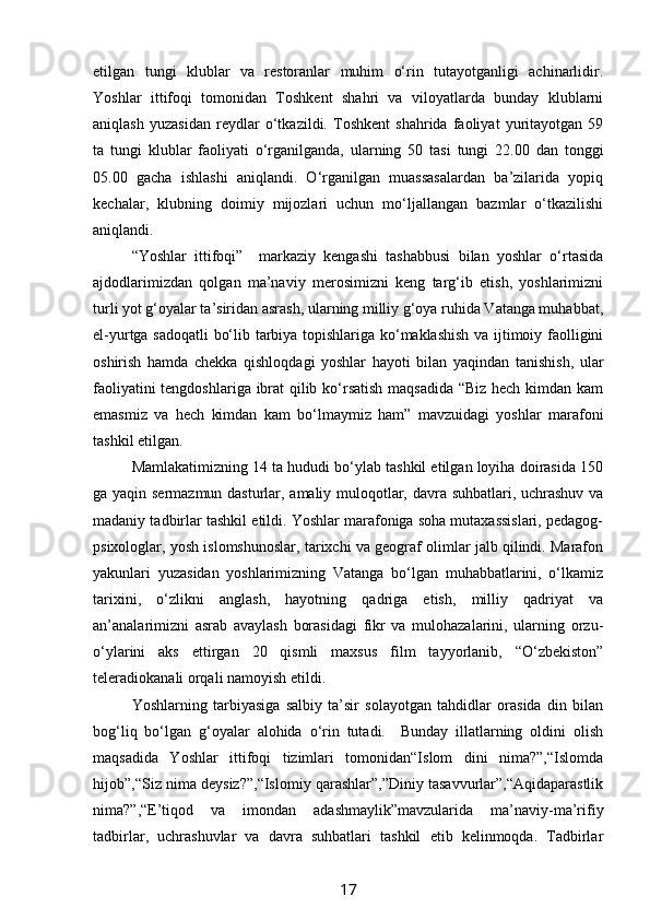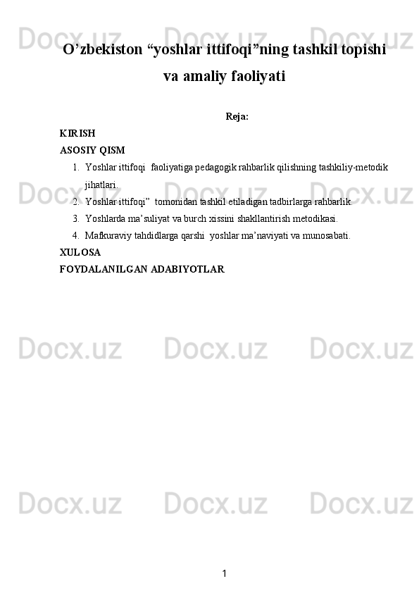 O’zbekiston “yoshlar ittifoqi”ning tashkil topishi va amaliy faoliyati