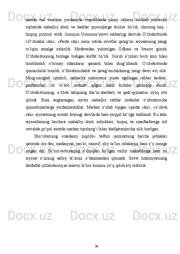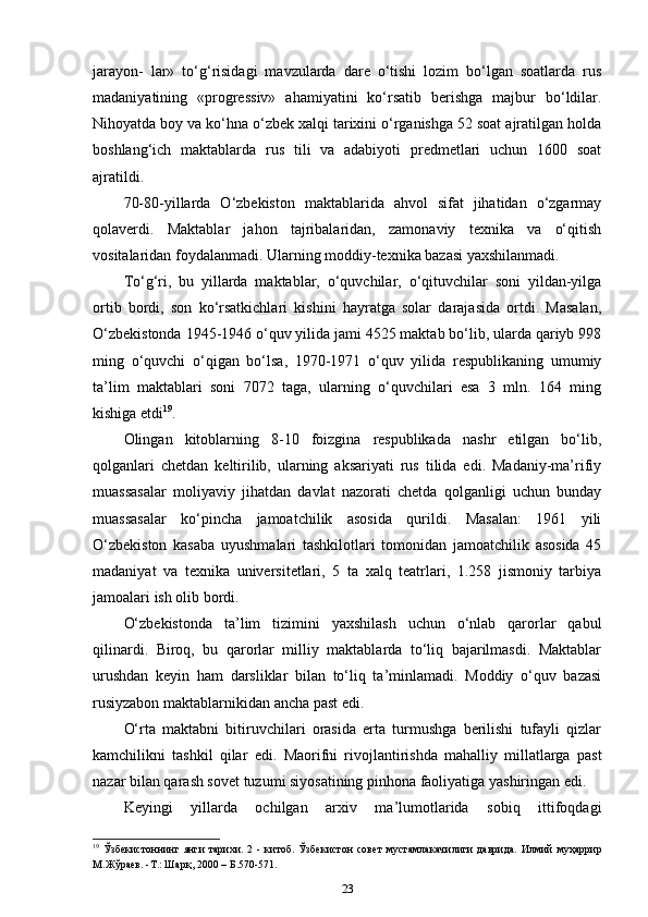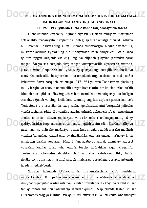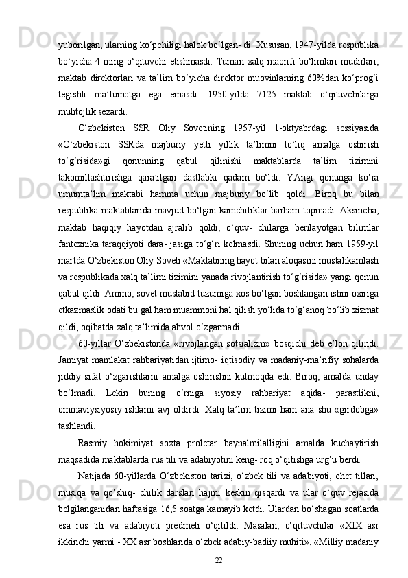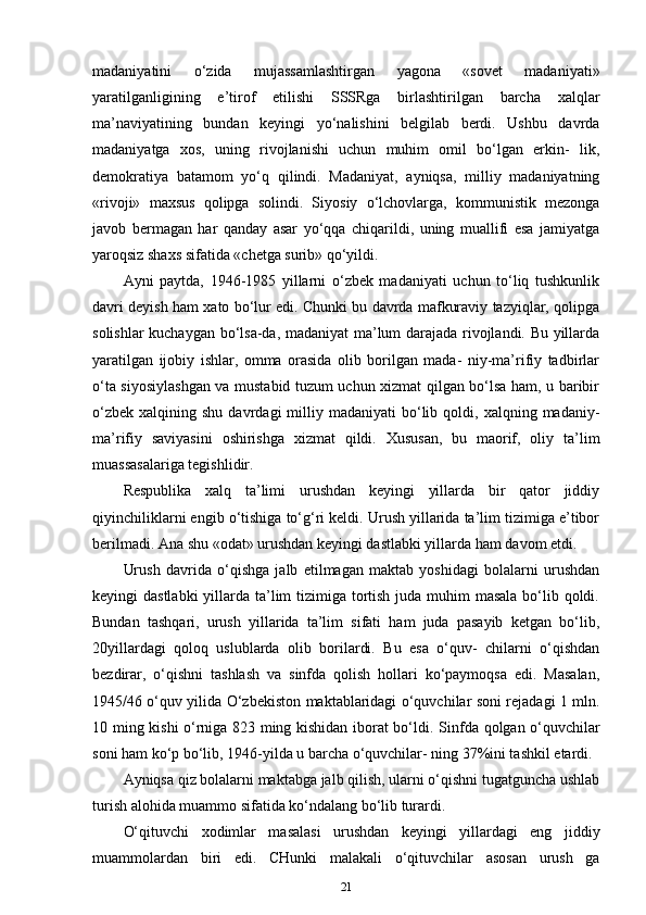 O‘zbekistonda amalga oshirilgan madaniy inqilob