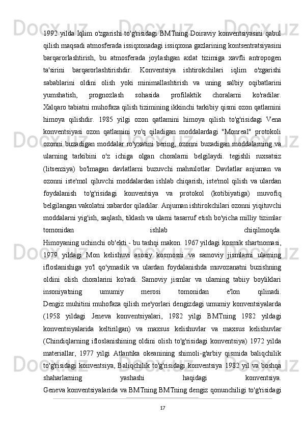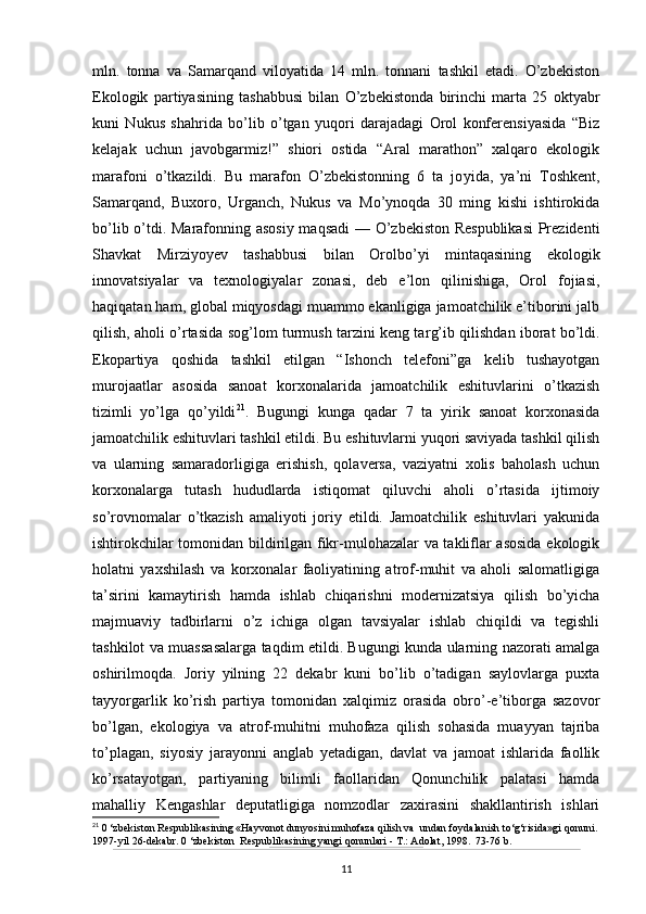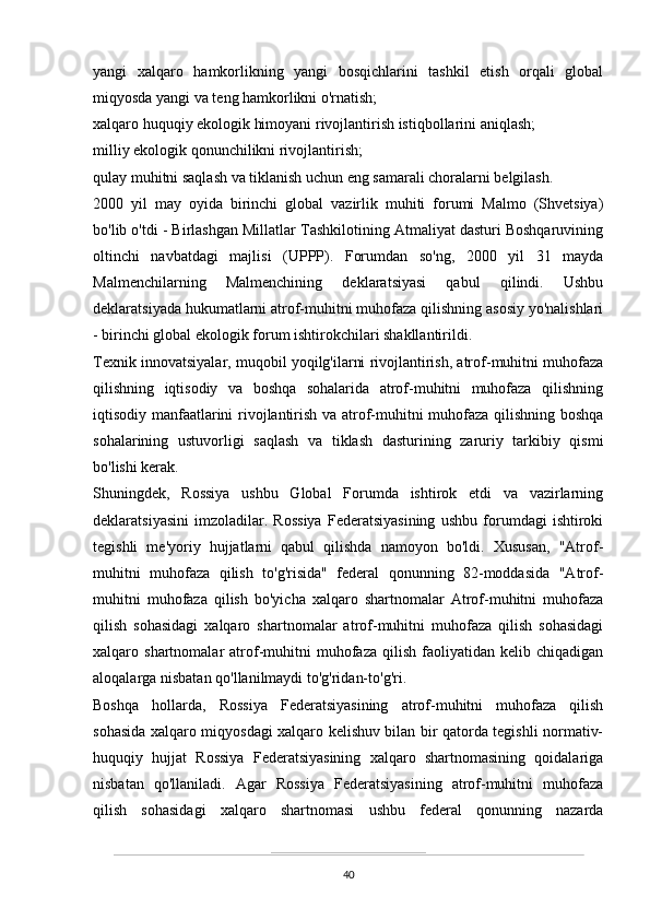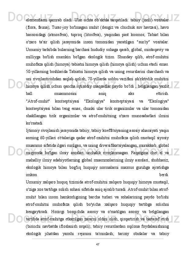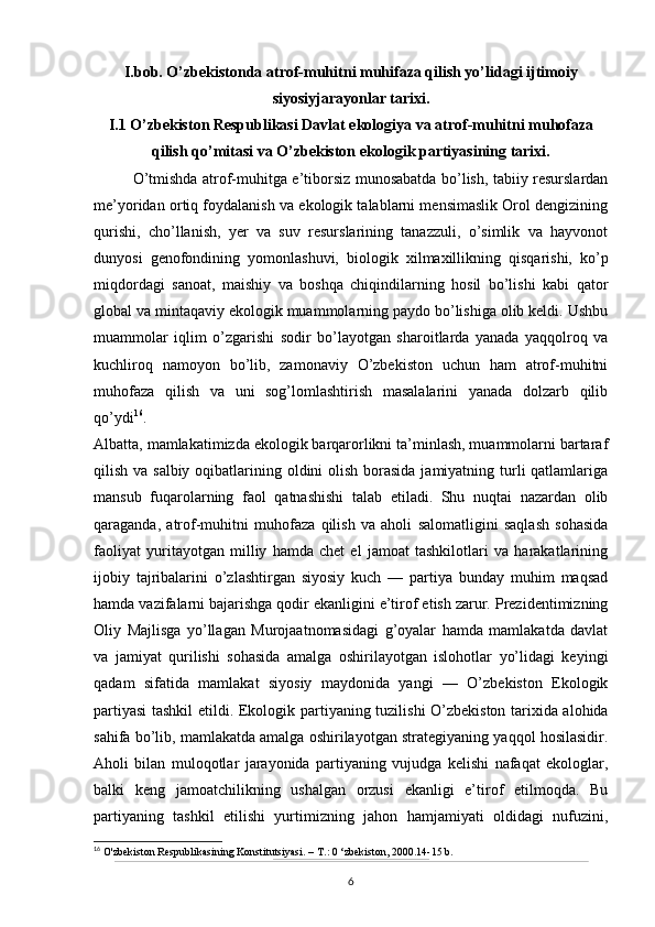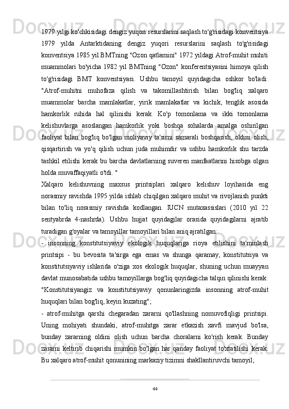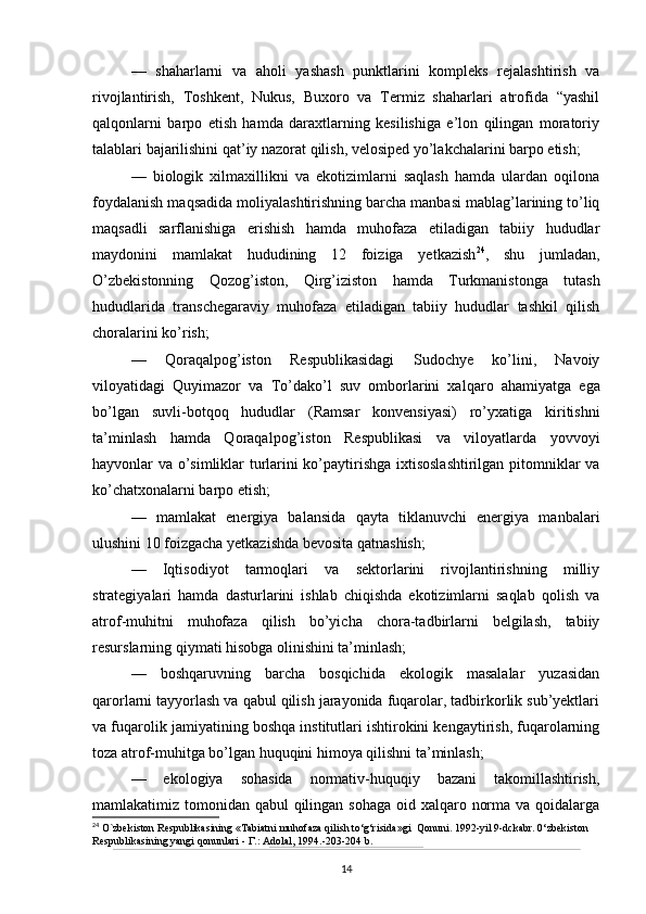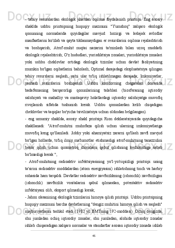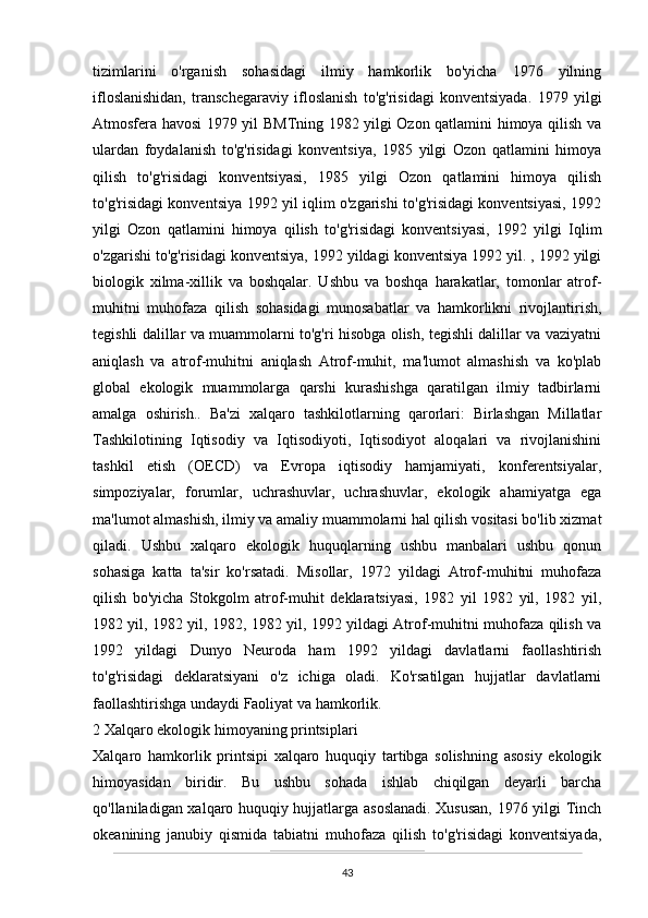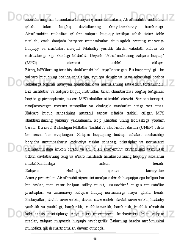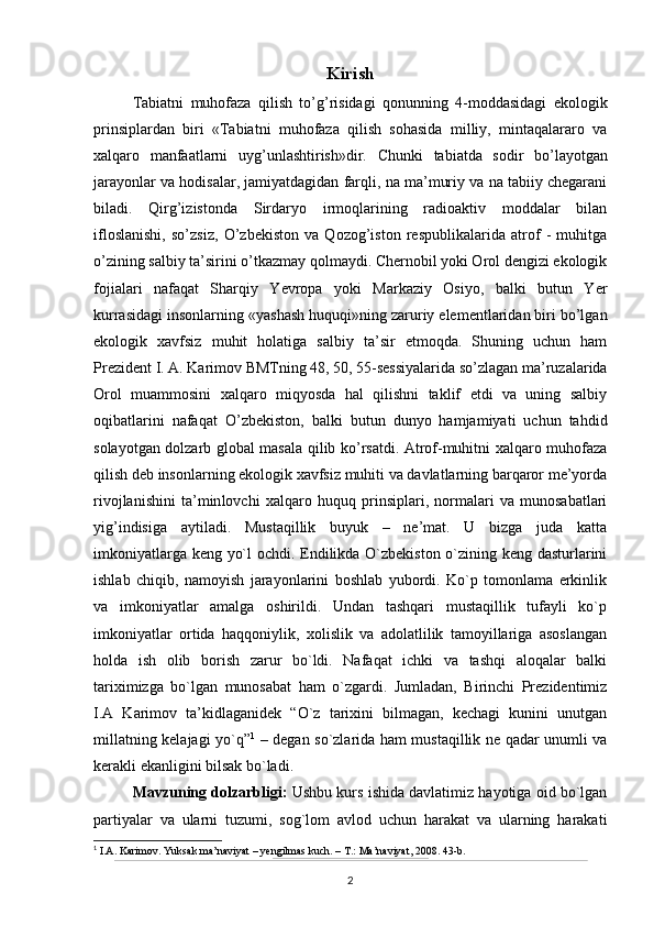 O’zbekistonda atrof-muhitni muhifaza qilish yo’lidagi huquqiy bazaning yaratilishi