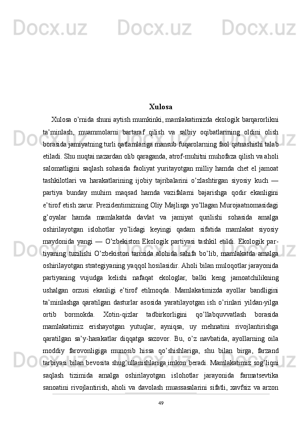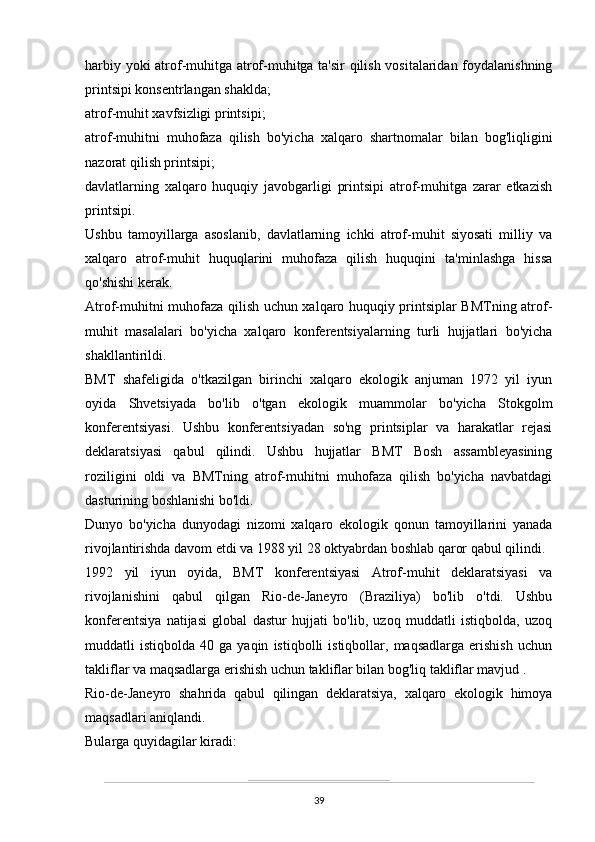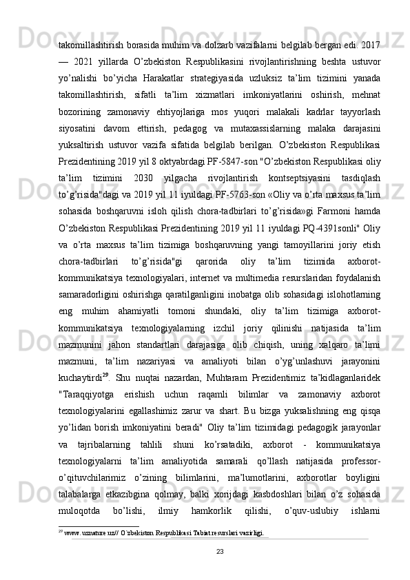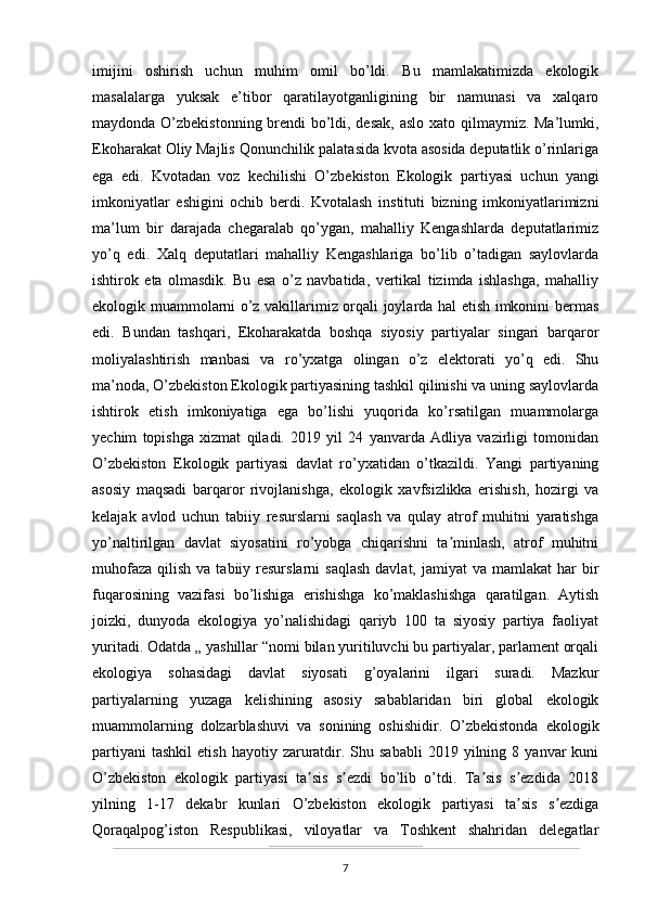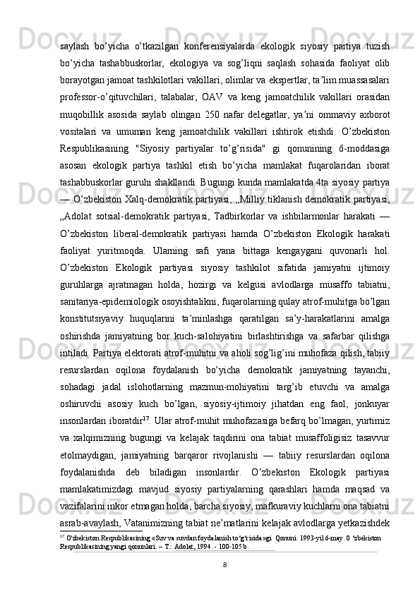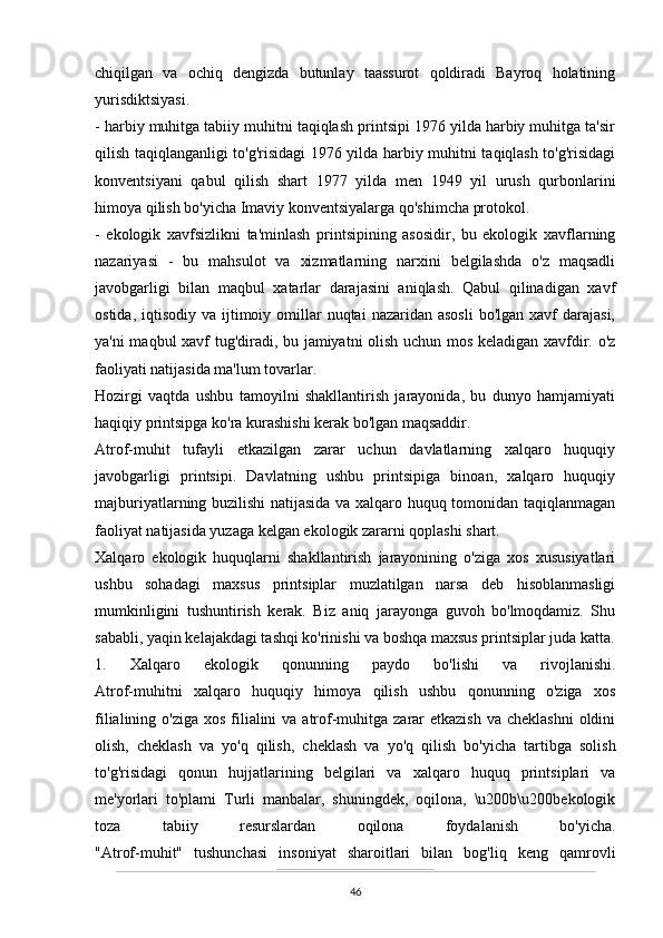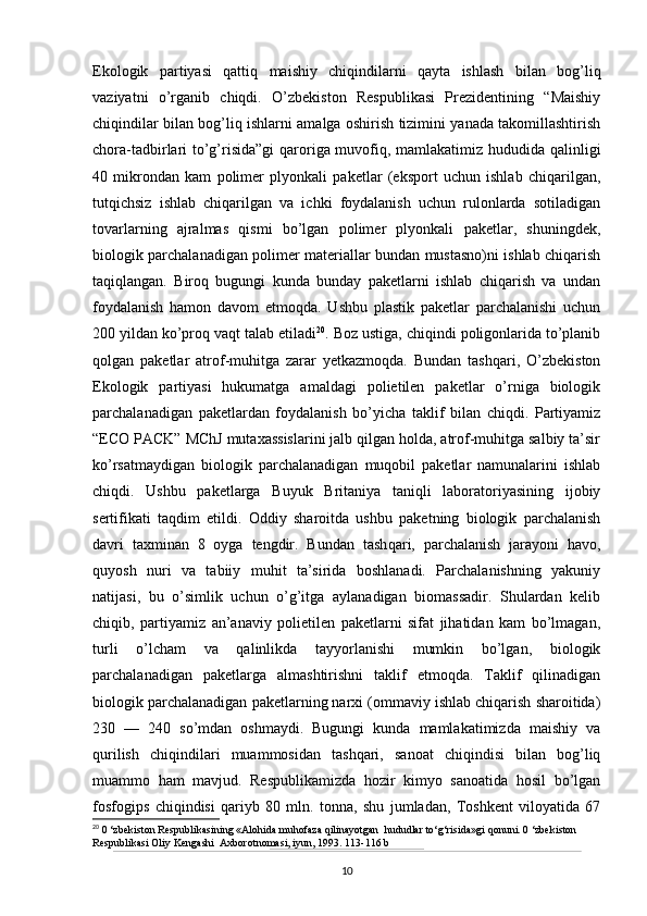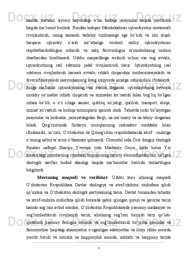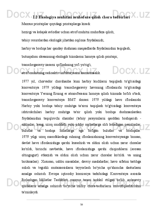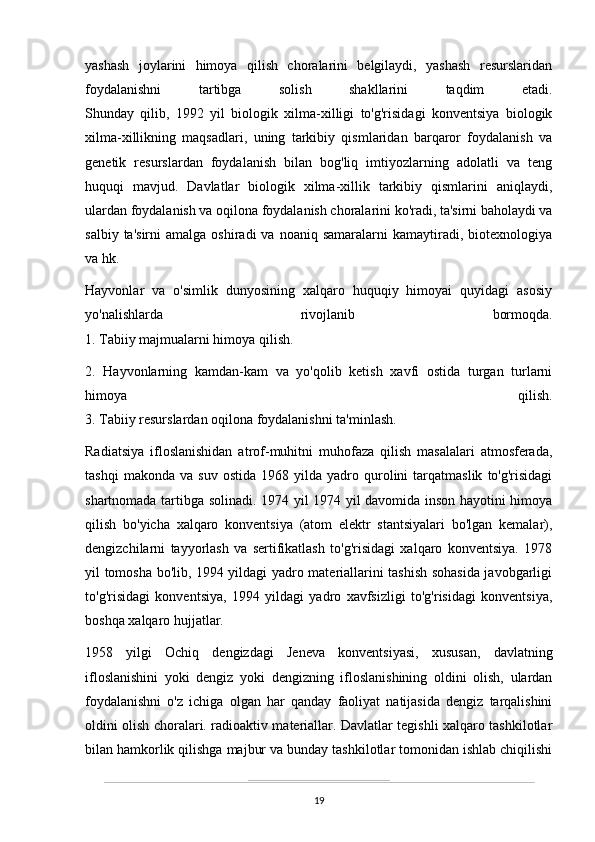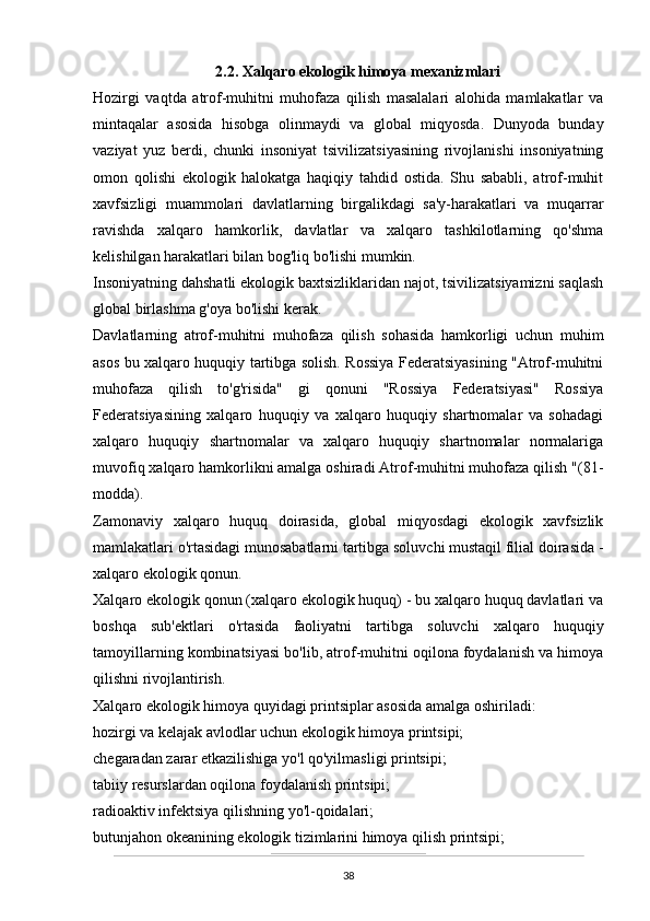 O’zbekistonda atrof-muhitni muhifaza qilish yo’lidagi huquqiy bazaning yaratilishi