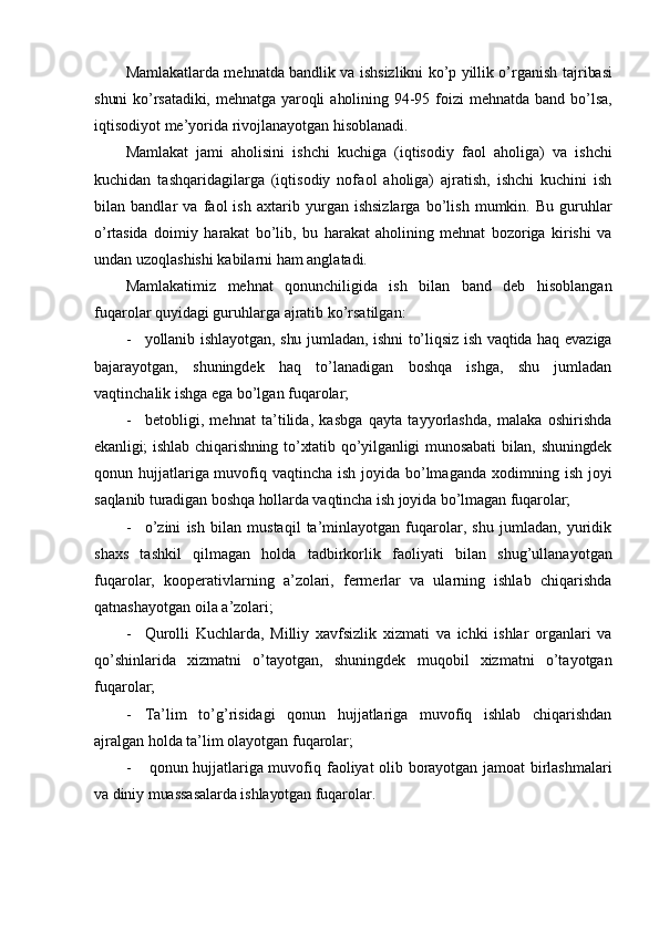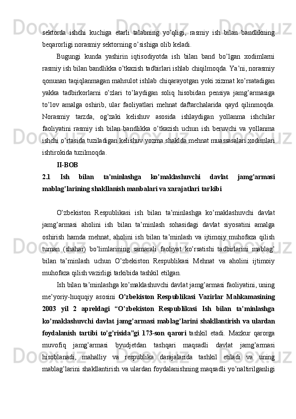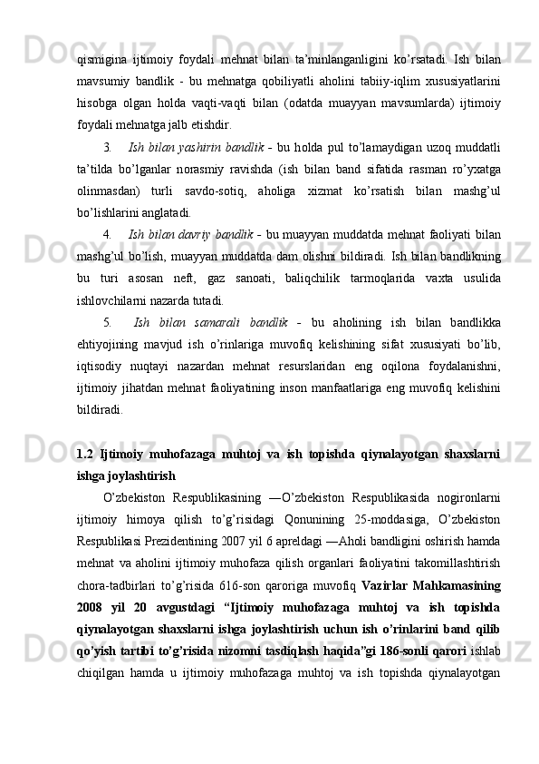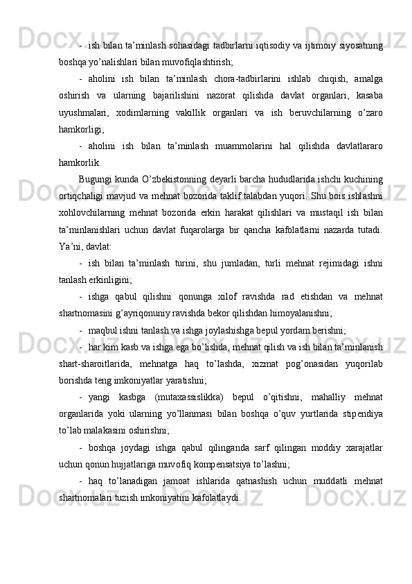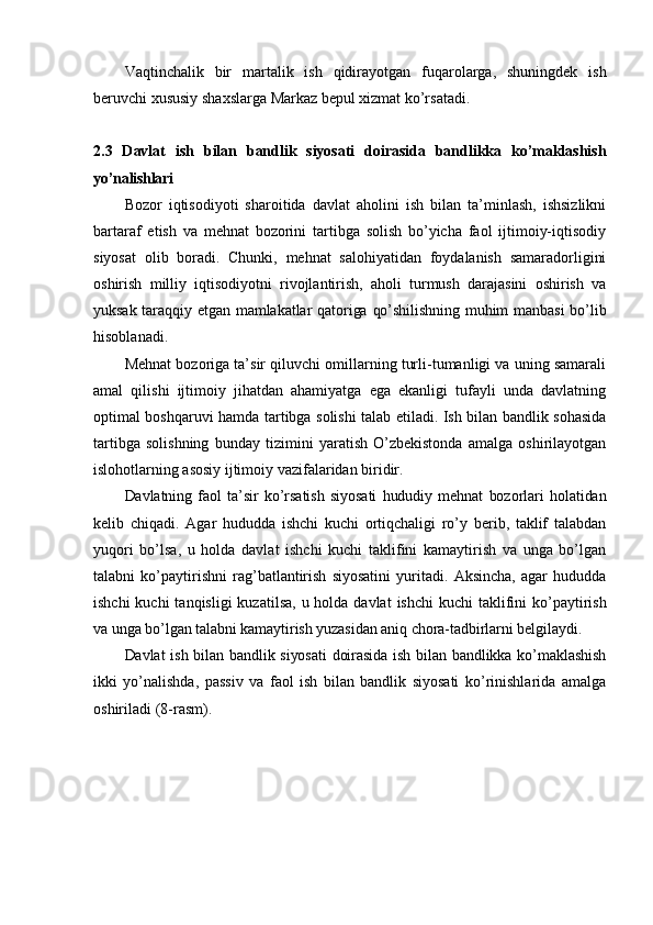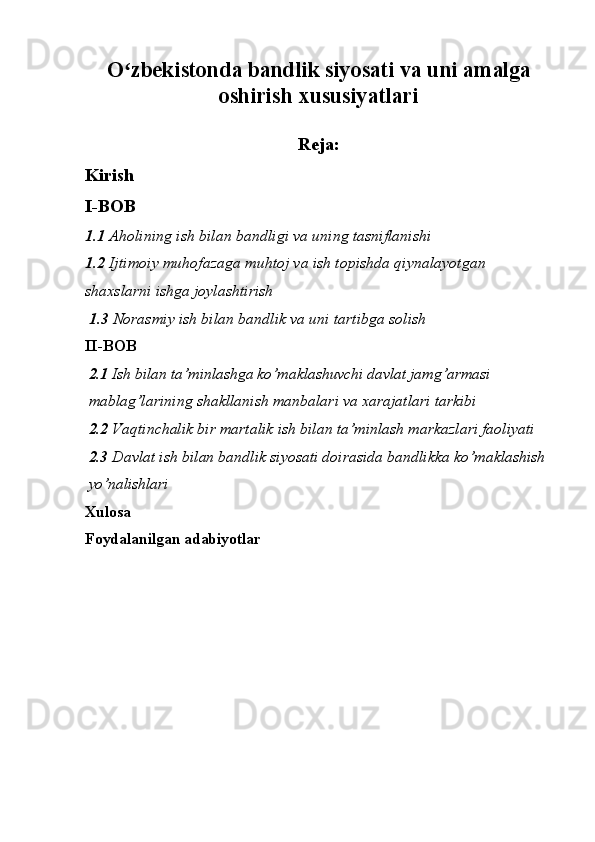 Oʻzbekistonda bandlik siyosati va uni amalga oshirish xususiyatlari